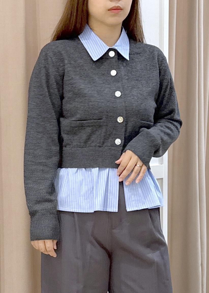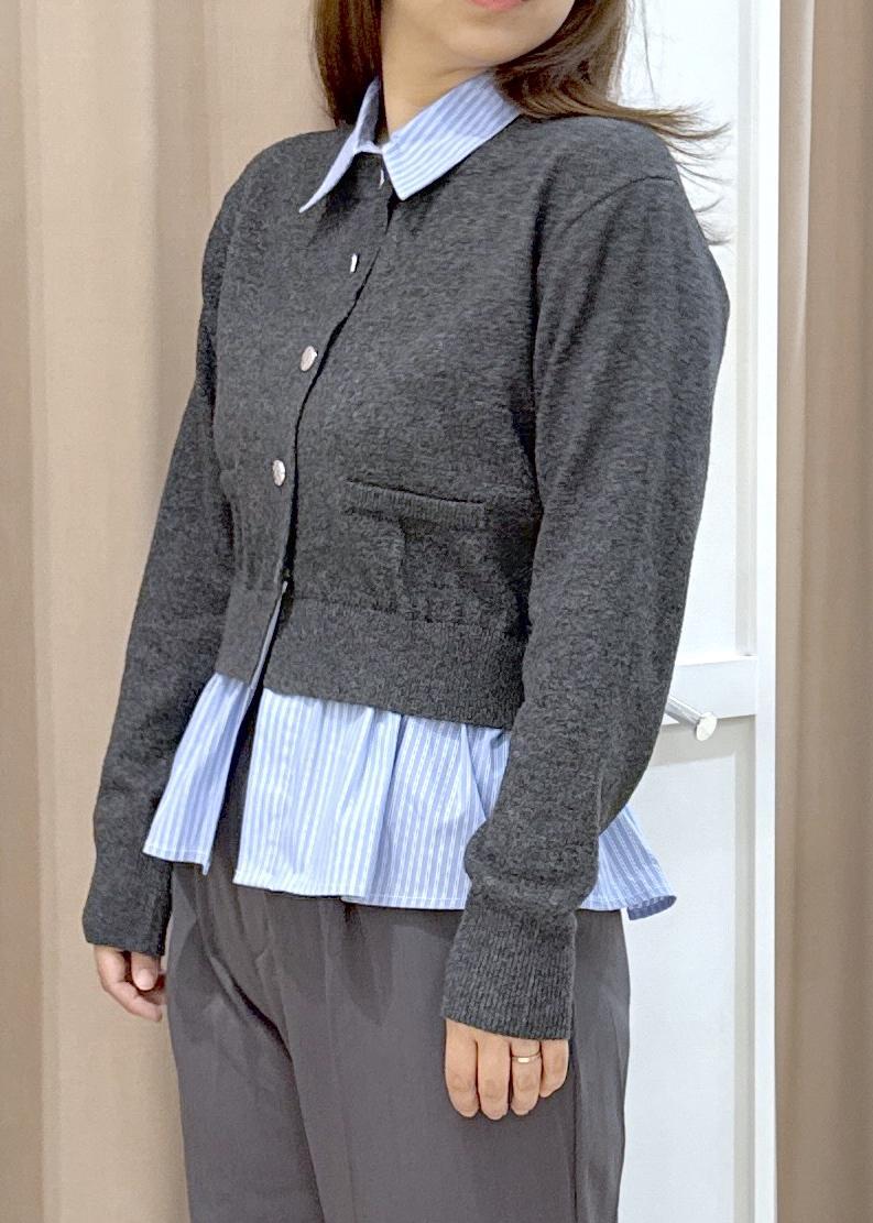 シャツレイヤード風メタルボタンカーディガン