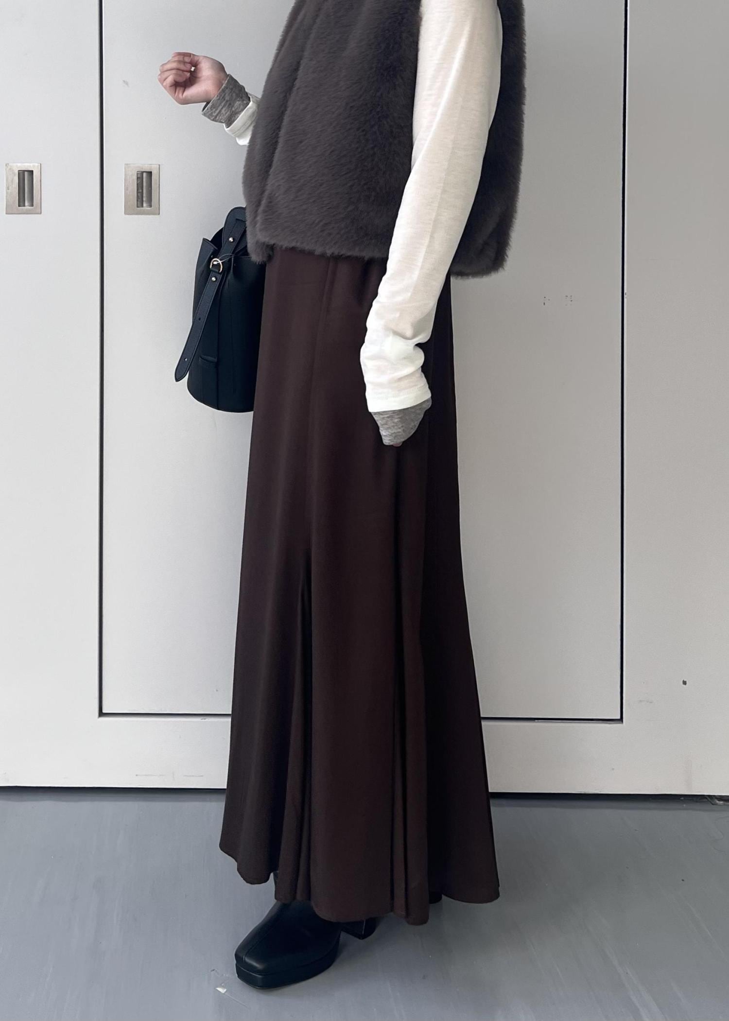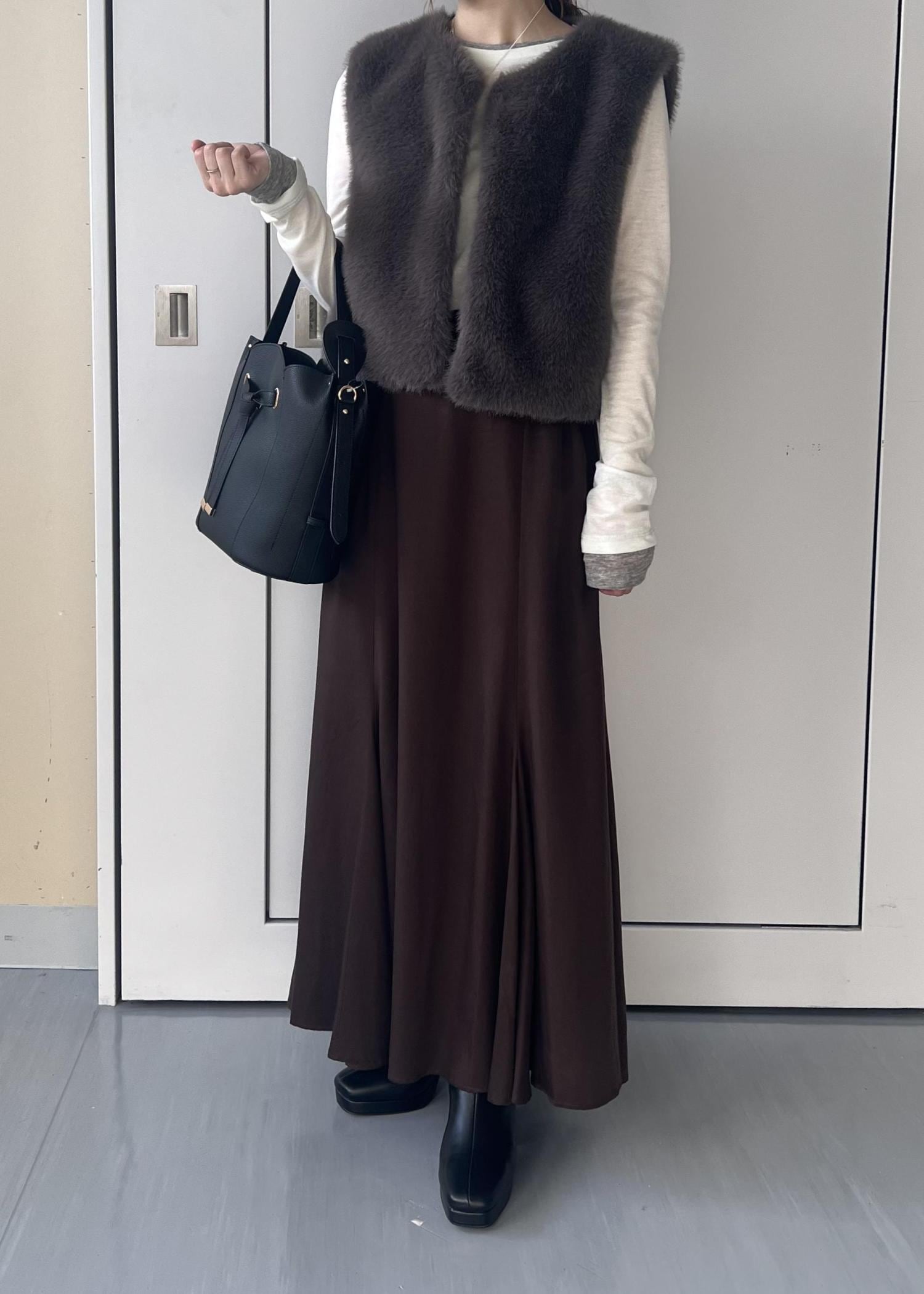 VISフィブリルサテン&レースアソートマーメイドスカートブラウン系 / F¥5,382レビュー152cmで着用して足首がしっかり隠れる丈感のマーメイドスカートです。厚底のブーツと合わせるとバランスよく、スタイルアップして見えるのが嬉しいポイントです。