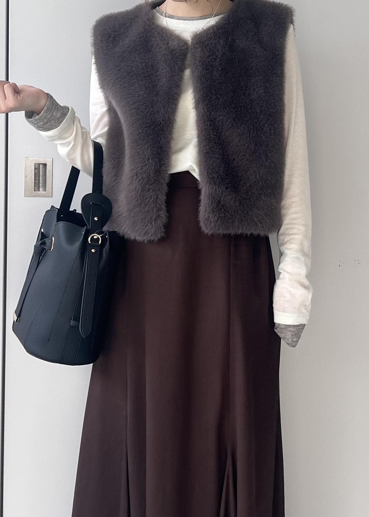 VISアソートファーショートベストグレー系 / F¥8,899レビュー毛並みがとてもなめらかで、ずっと触っていたくなるような肌触りのファーベストです。ボリュームが出すぎず、すっきりとしたシルエットなので、着膨れ感がなく上品な印象に。ショート丈なので152cmと低身長の方でもバランスよく着こなせます。軽い着心地も嬉しいポイントです。