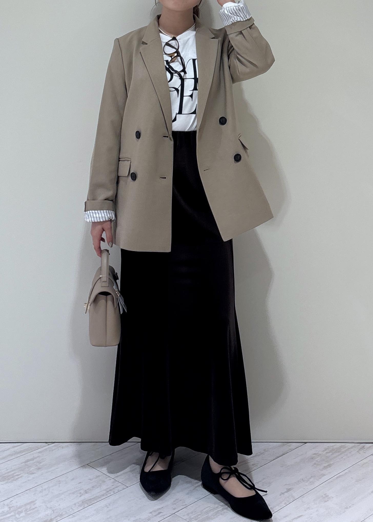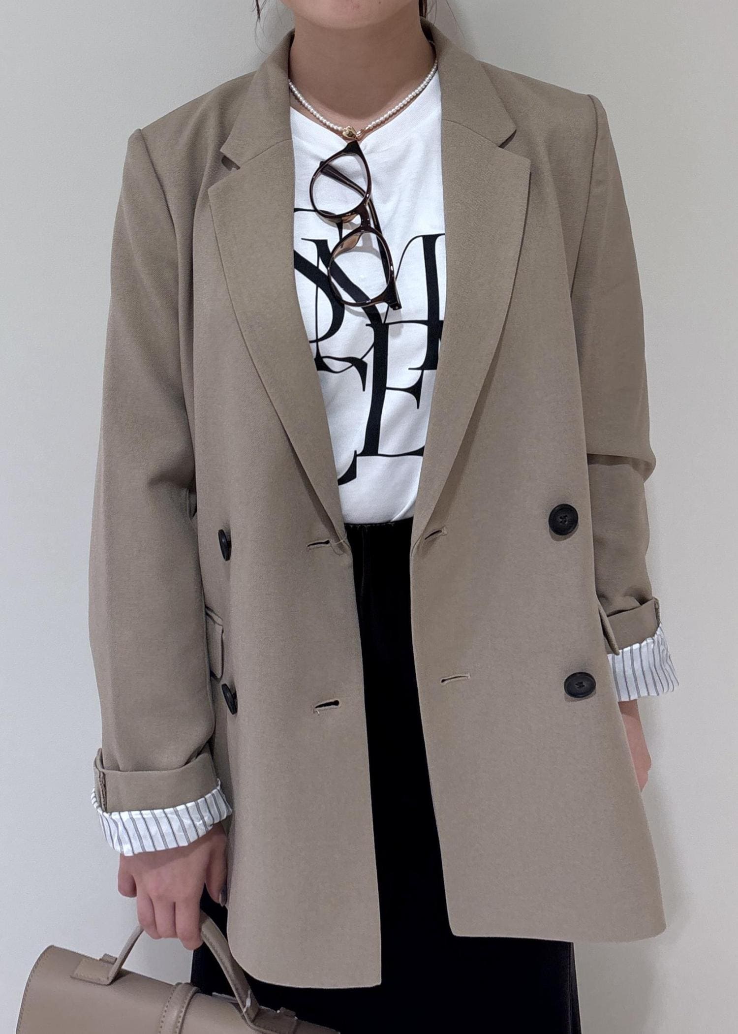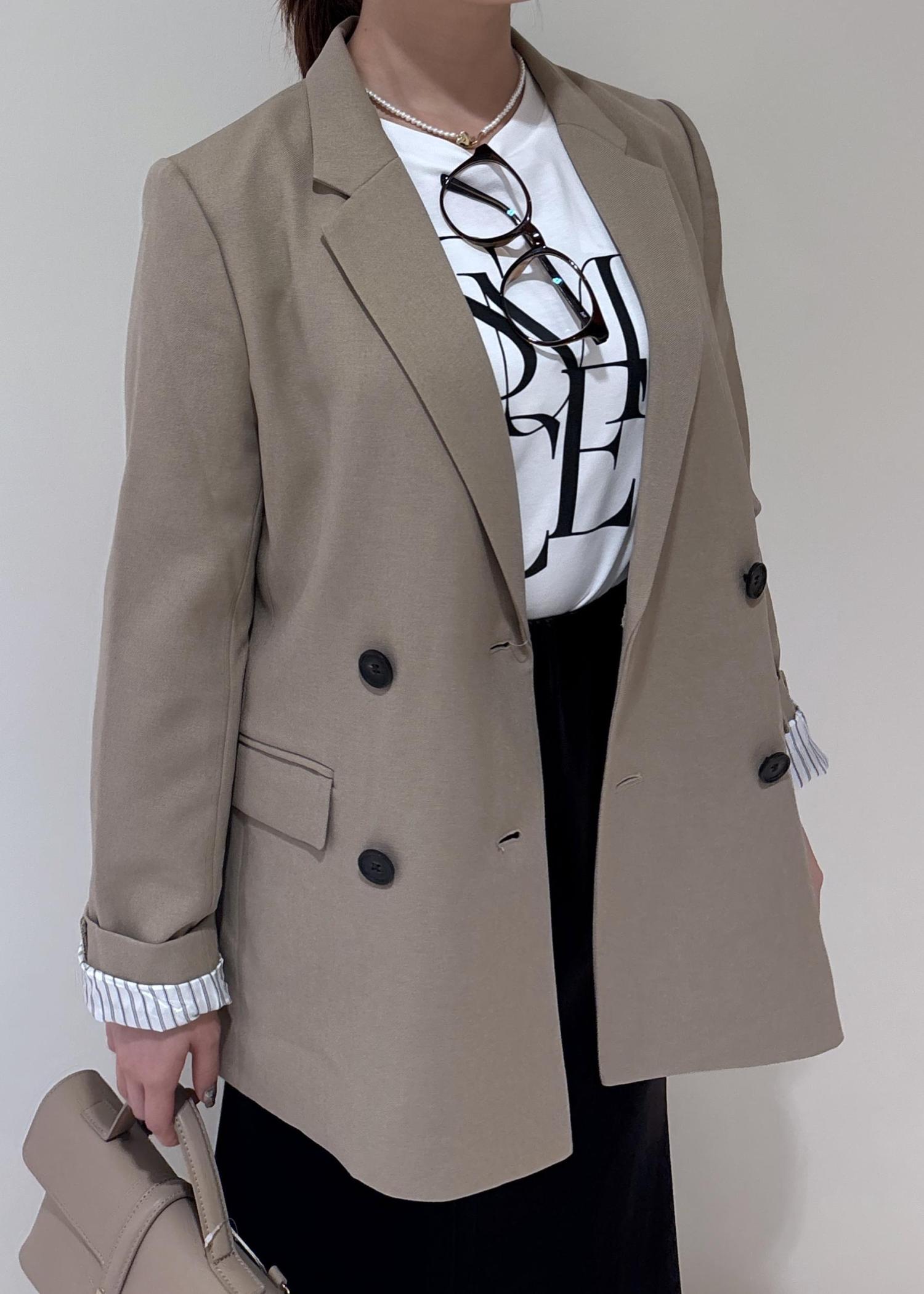 【美easy】ウーリッシュダブルブレストテーラードジャケット【セットアップ対応/洗える】