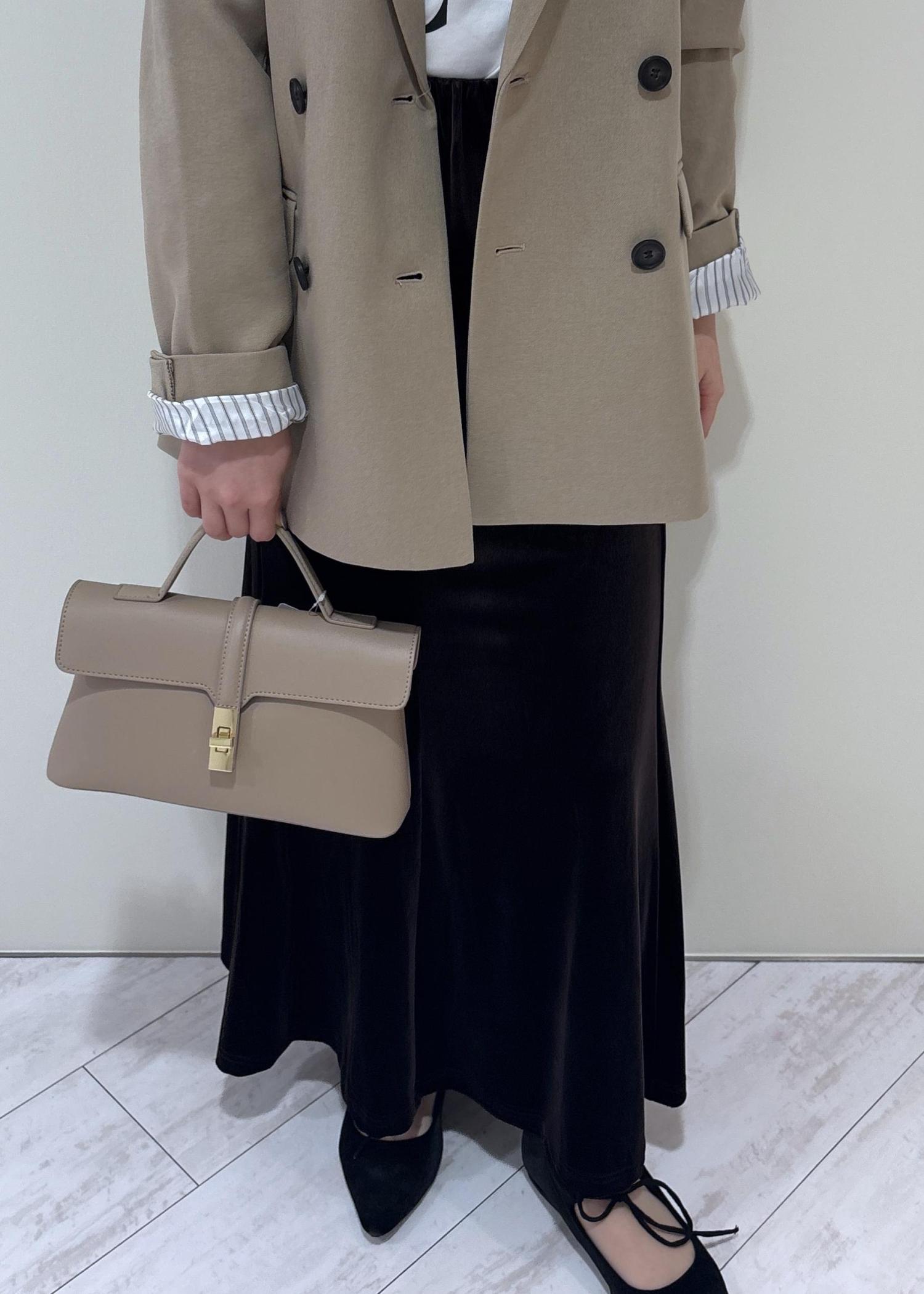 肩掛けスタイルにもできる為、ワンハンドルでも開け閉めしやすいバックです。