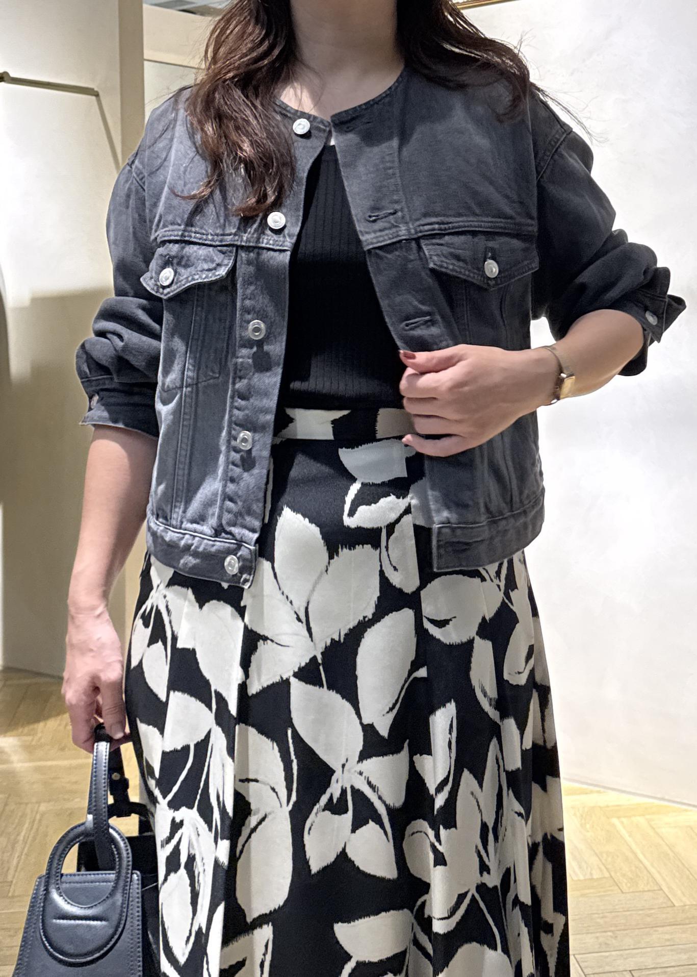 Gジャンはカジュアルになりやすいですがそこはロペらしくノーカラーのコンパクトなデザインと落ち着いたカラーチョイスで綺麗め、フェミニンな方でも着やすい仕様。