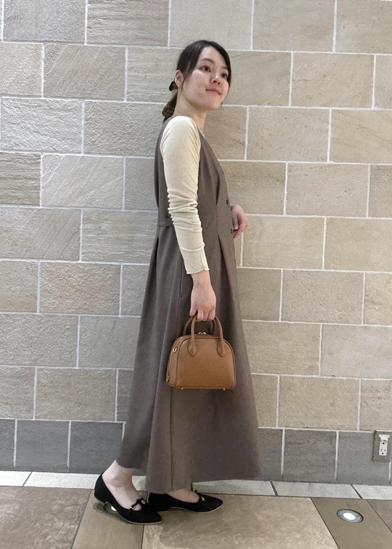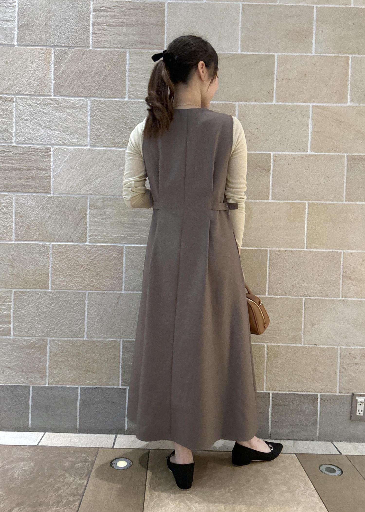 ROPÉ PICNIC【低身長・小柄さんサイズ】ウールライクウエストタックジャンパースカート/セットアップ対応ベージュ系 / F¥7,491レビュー丈はくるぶしにかかるくらい。