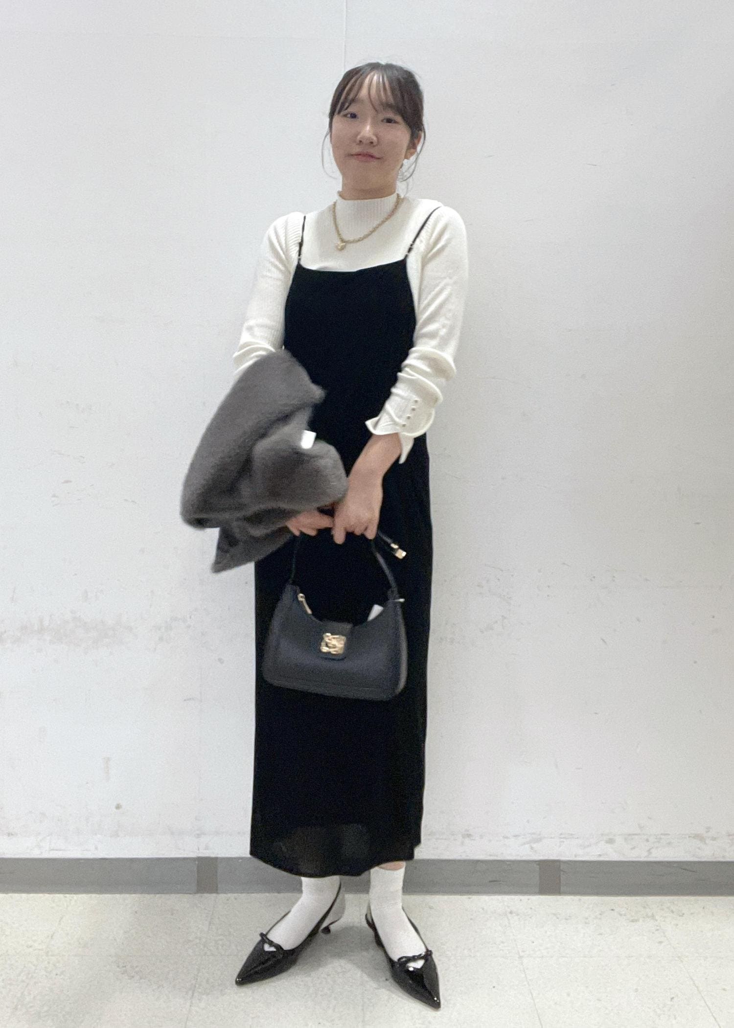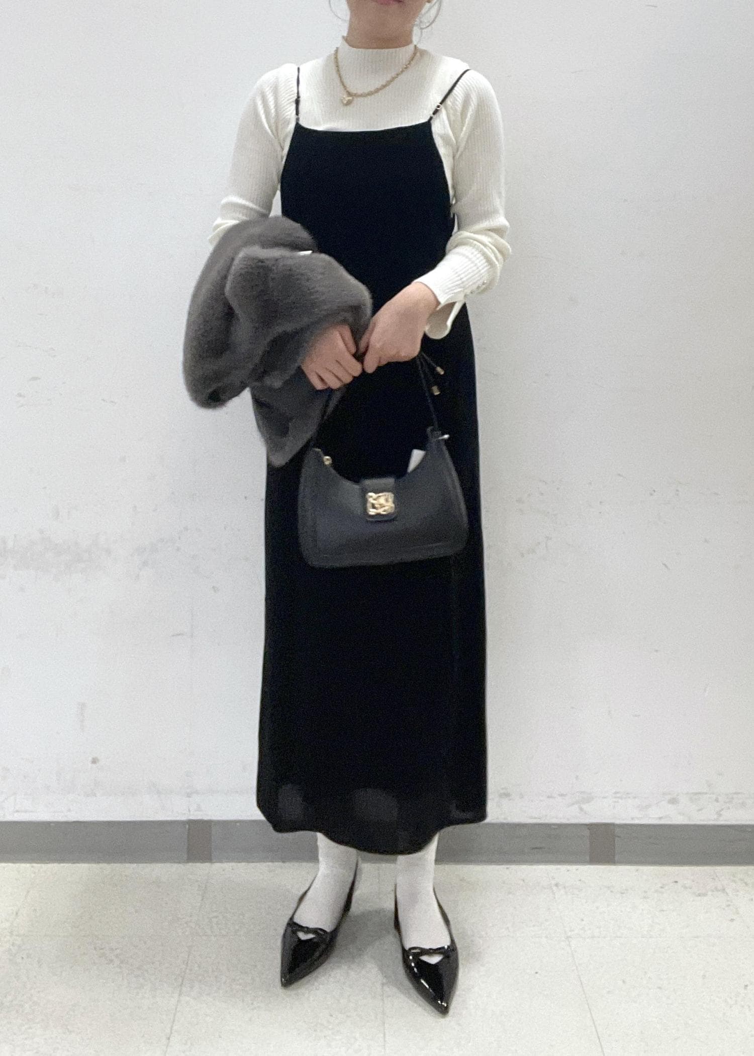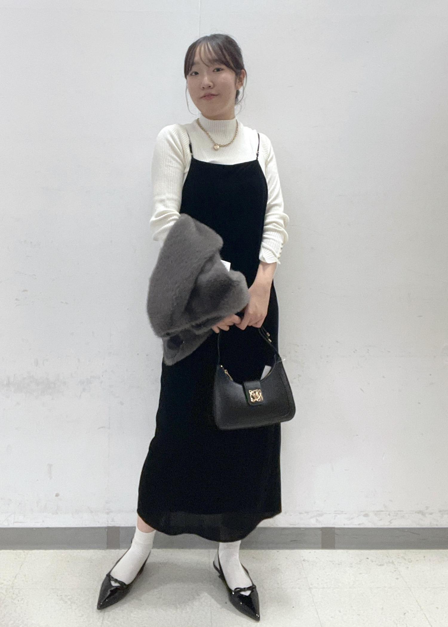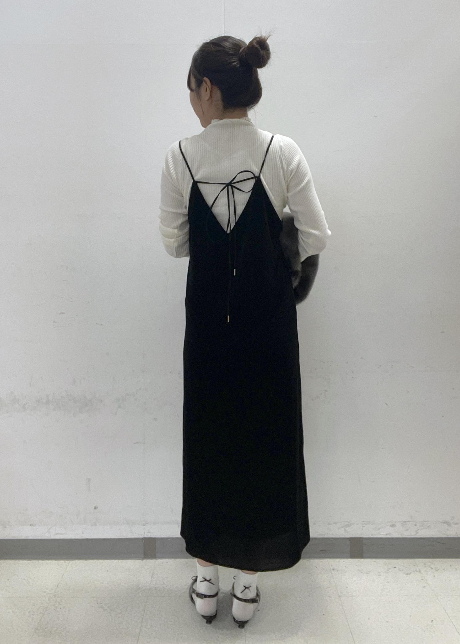 VIS刺繍アソートベロアキャミワンピース/2WAYブラック / F¥8,899レビュー167cmでフリーサイズ着用。