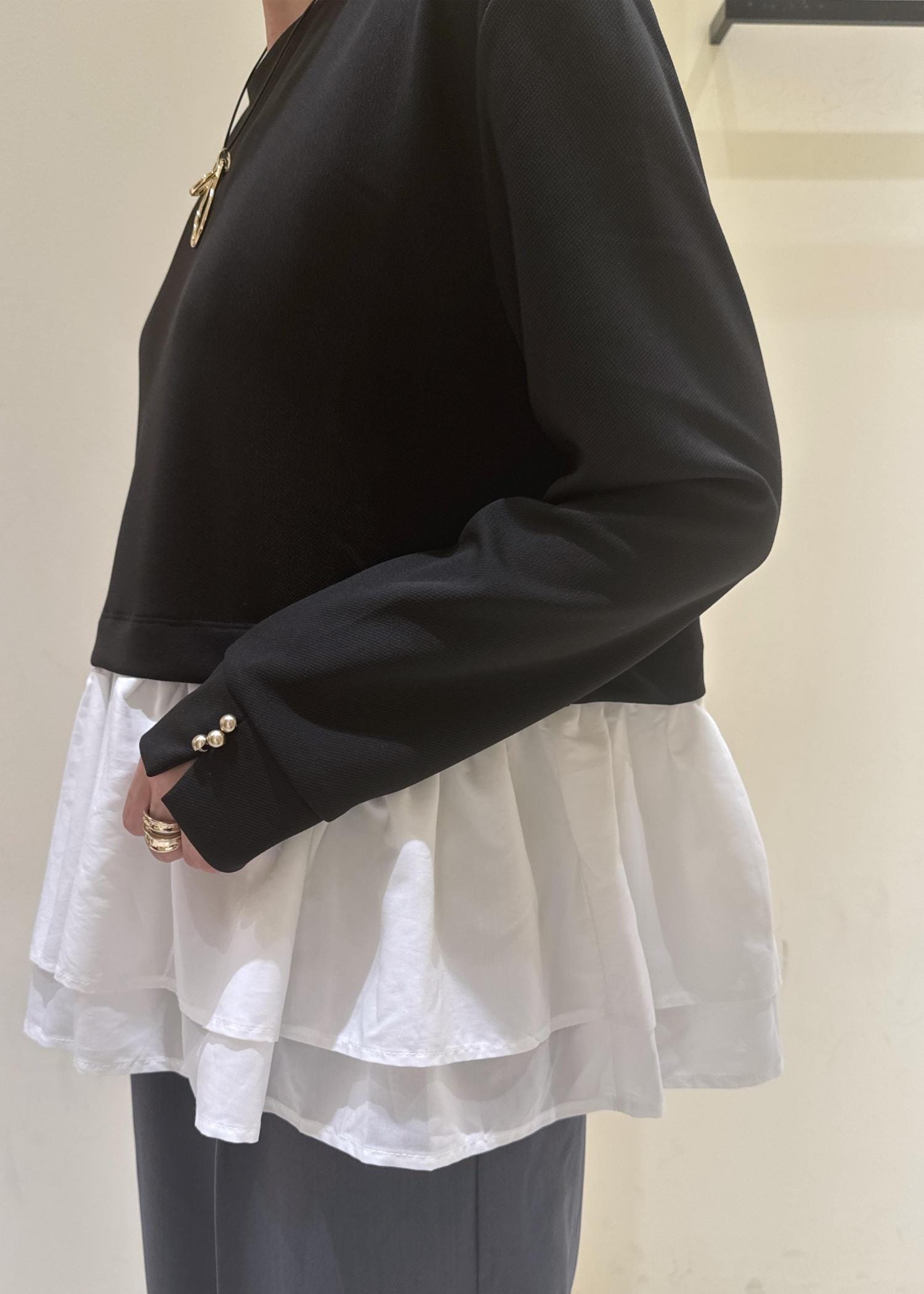 ROPÉ PICNIC布帛ドッキングペプラムギャザープルオーバーブラック / M¥4,499レビューレイヤード風のデザインがお洒落なトップス。