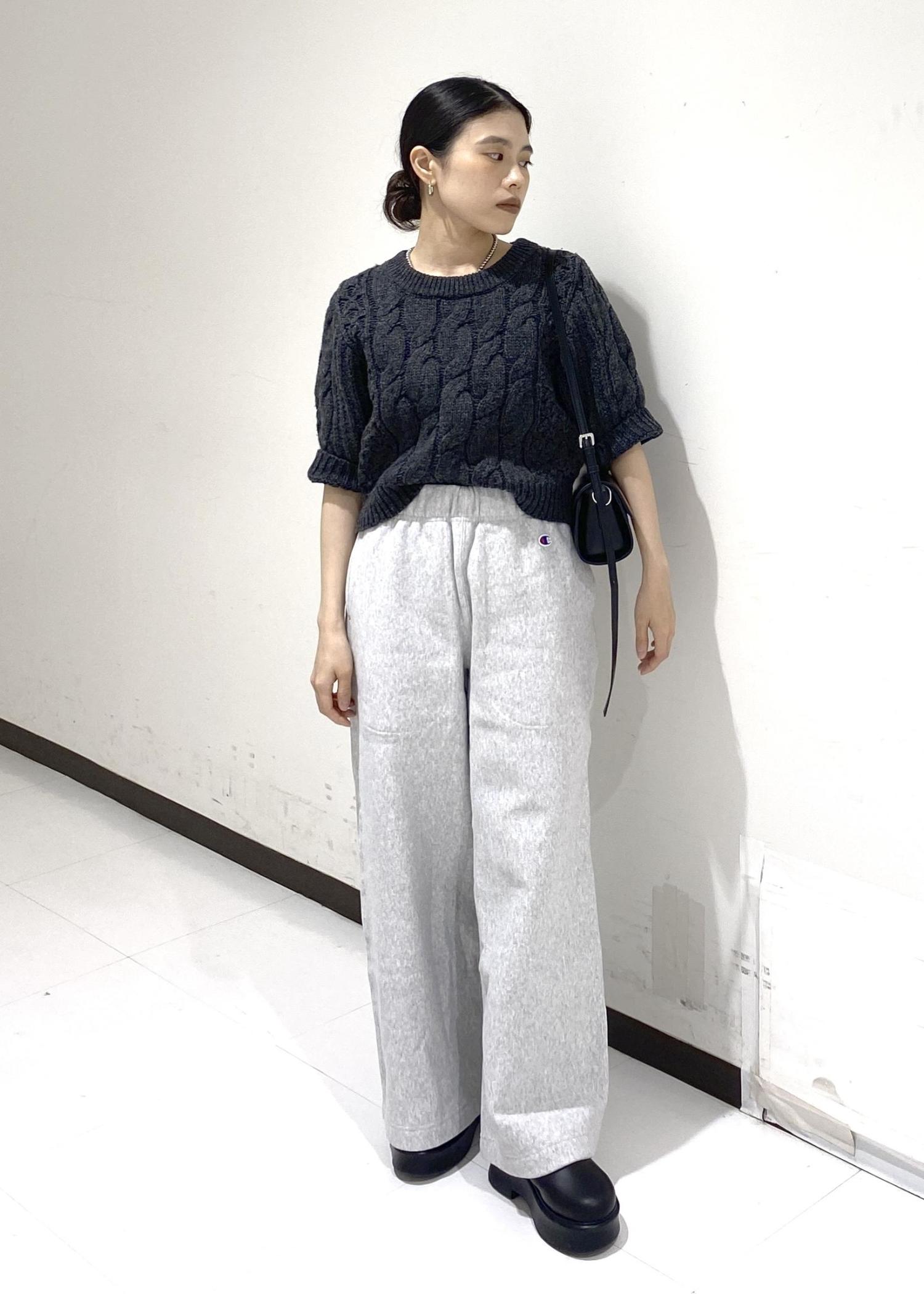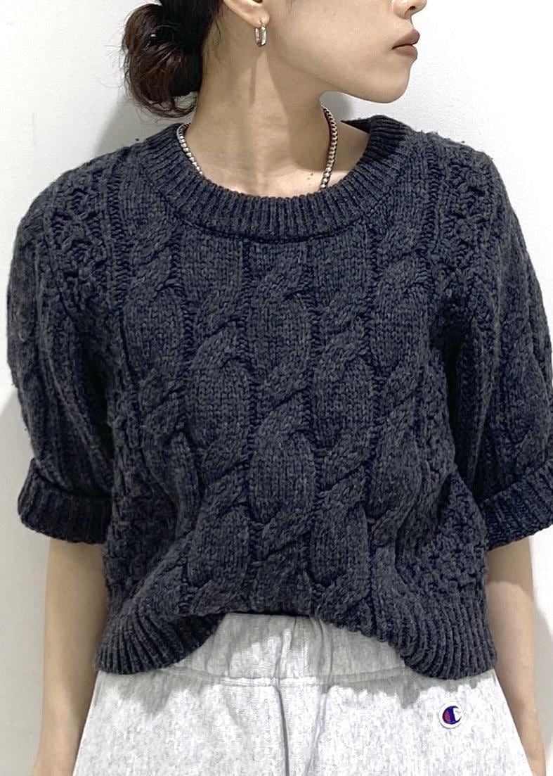 ADAM ET ROPÉ FEMME【サステナブル】ケーブルハーフスリーブニットチャコール / F¥22,000レビュー低身長の方には嬉しい着丈です。