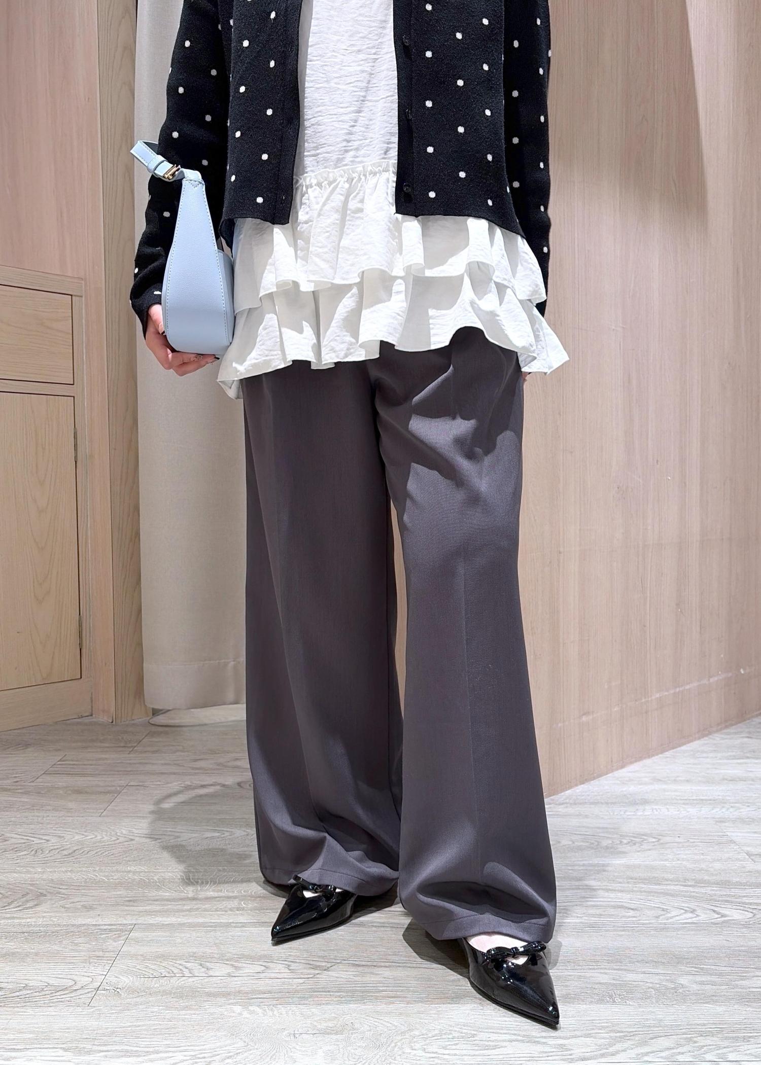 ボトムにはキレイめなワイドパンツを合わせて大人可愛いコーデにまとめました!
