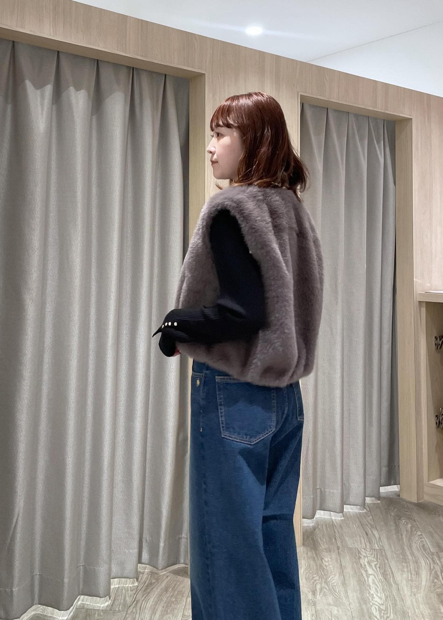 VISアソートファーショートベストグレー系 / F¥8,899レビュー一気にトレンド感の出るファーベスト♡程よいボリューム感、骨ストのわたしも上半身の厚みを気にせず着れました!コンパクトな丈感なのでボトムは選ばず合わせやすいです◎綺麗め〜カジュアルまで色んなシーンで着用できます!