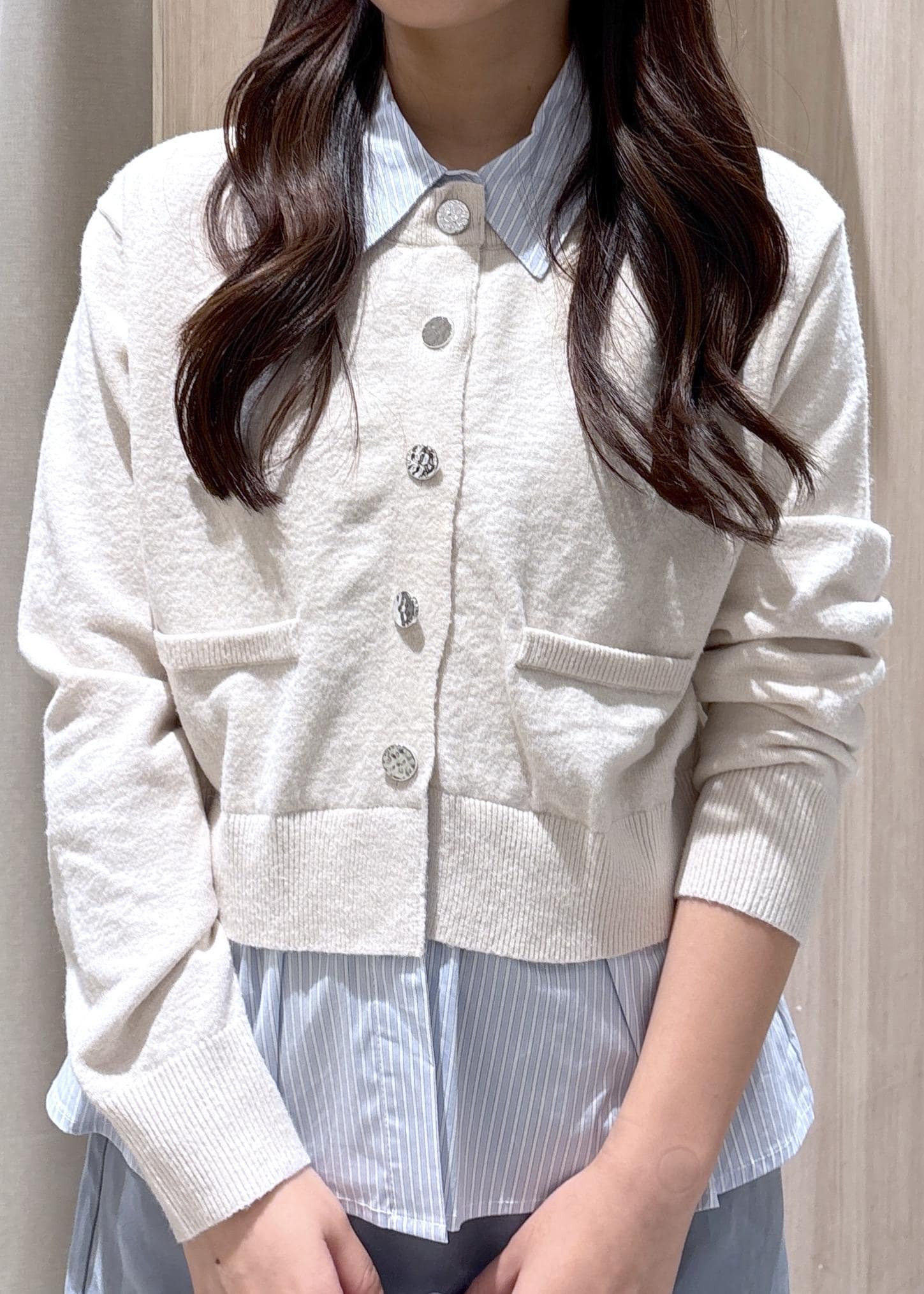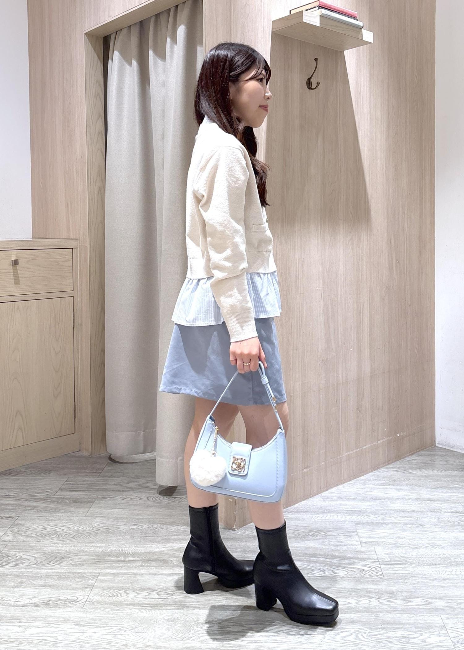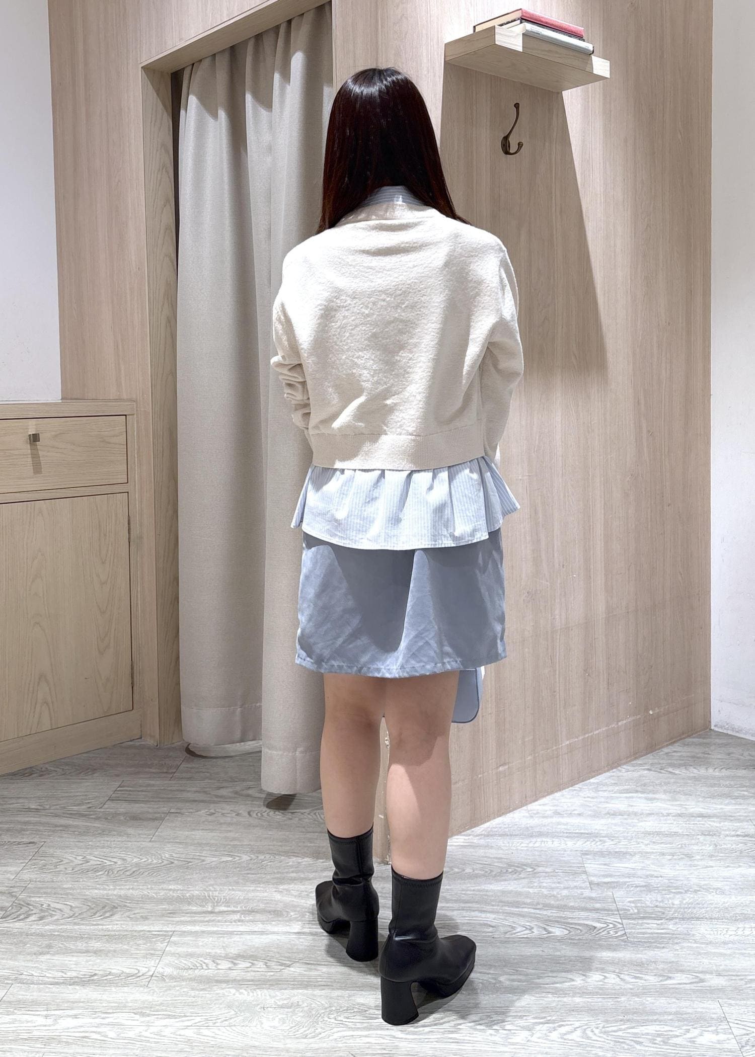 店頭でも大人気のレイヤード風カーディガンとミニスカートのコーデです!