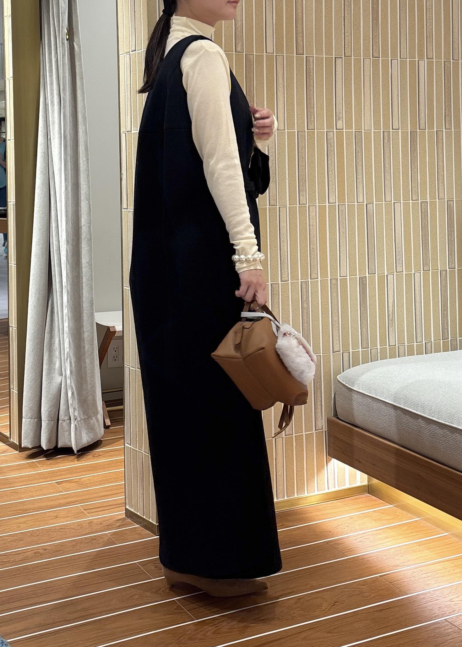 ROPÉ SELECT【一部店舗限定】【REALM(レルム)】U NECK OVER DRESS|ドレスブラック / 38¥52,800レビューハリ感と立体的なふくらみがあり、ウエストベルトを締めることですっきりと着用することができました。