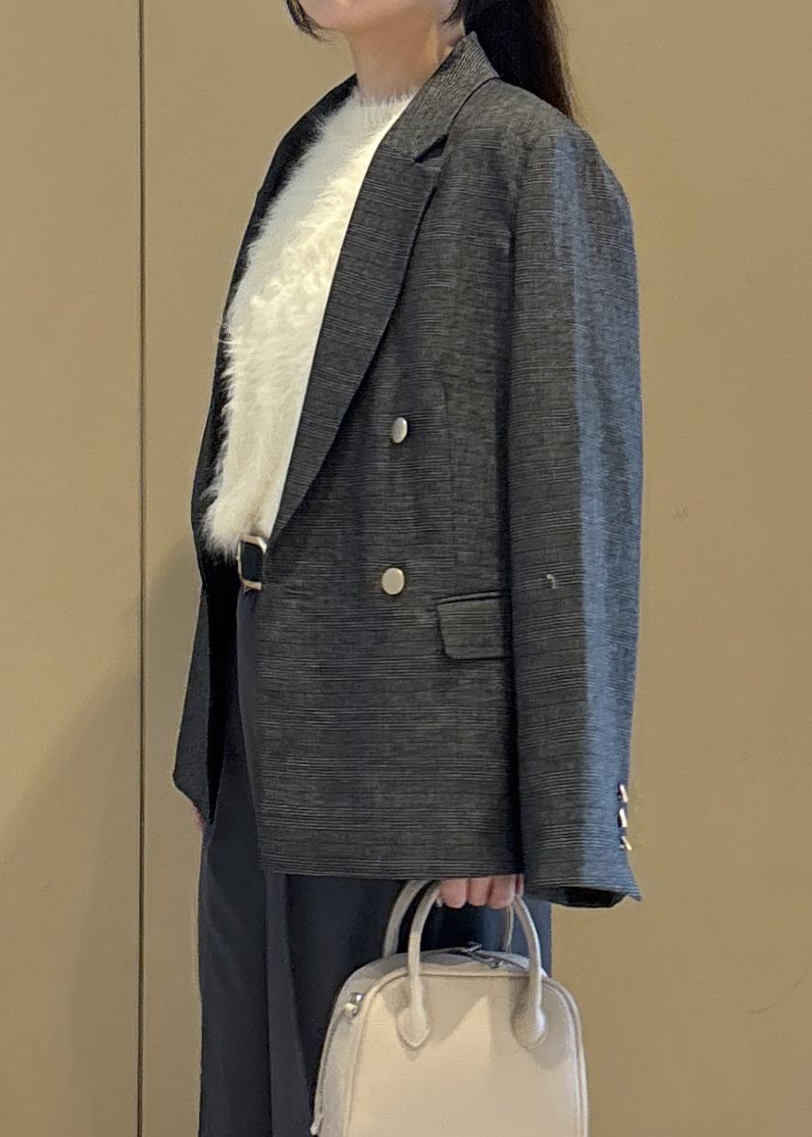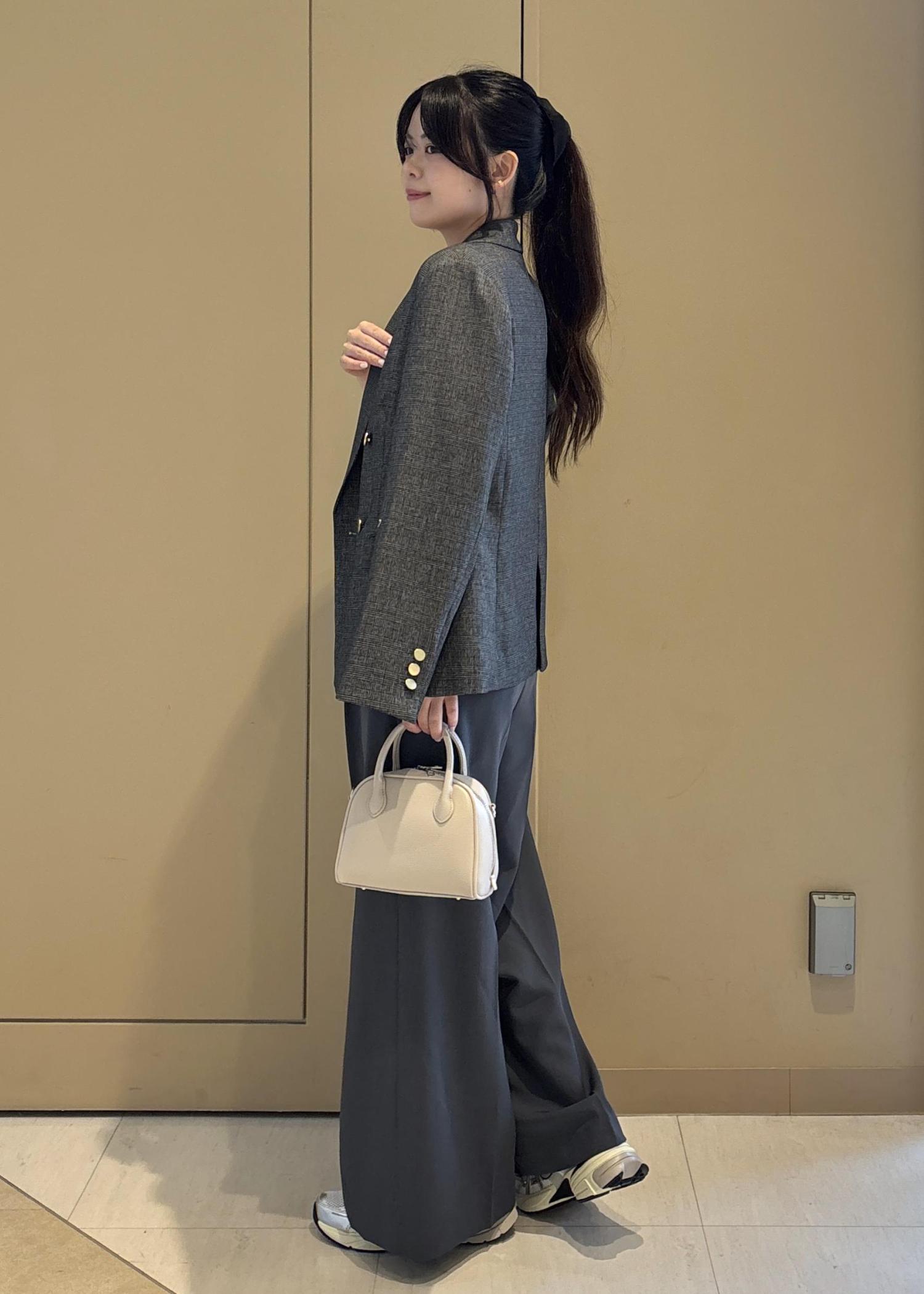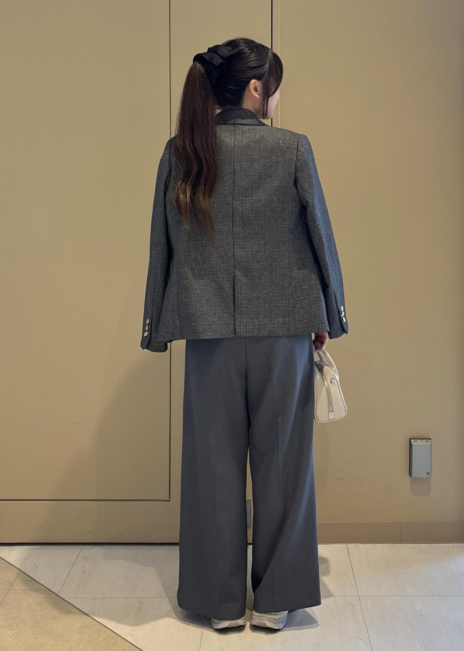 シャギーニット+ワイドパンツのリラックス感のあるスタイルにジャケットを羽織って大人カジュアルな雰囲気にまとめました。足元はスニーカーで抜け感をプラス。