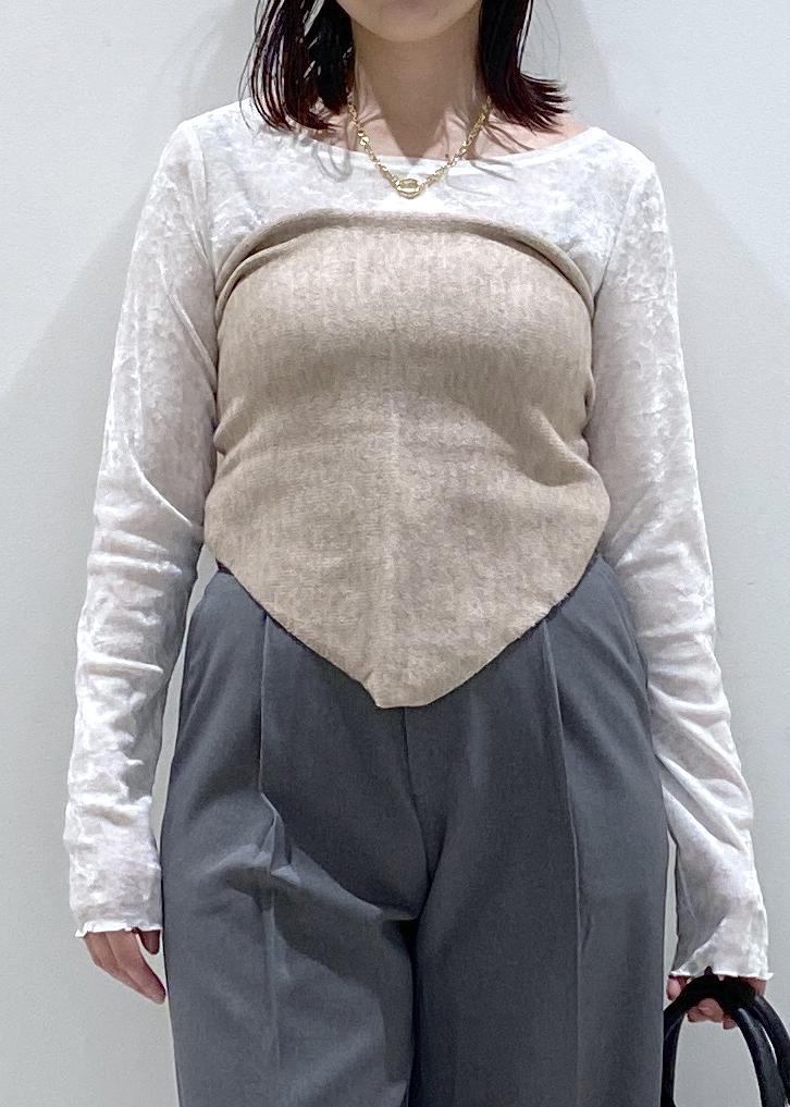 VISシアーベロアロングスリーブTシャツオフホワイト / F¥4,389レビューベロア素材なのですが、シアー感があるので