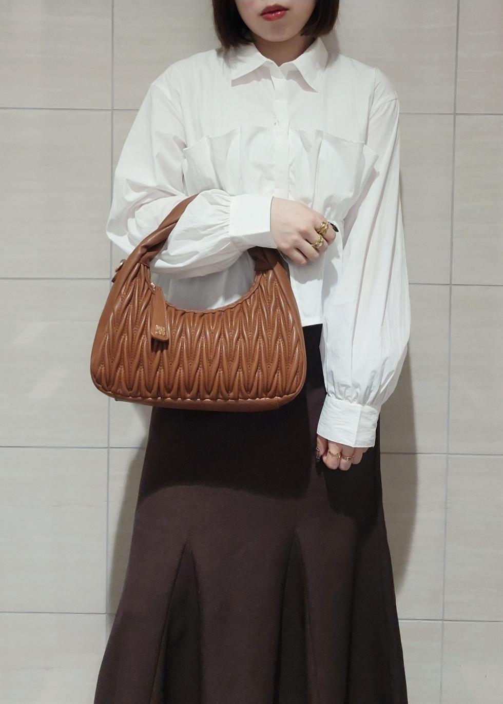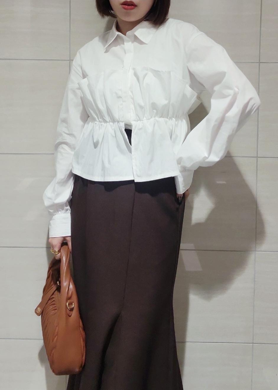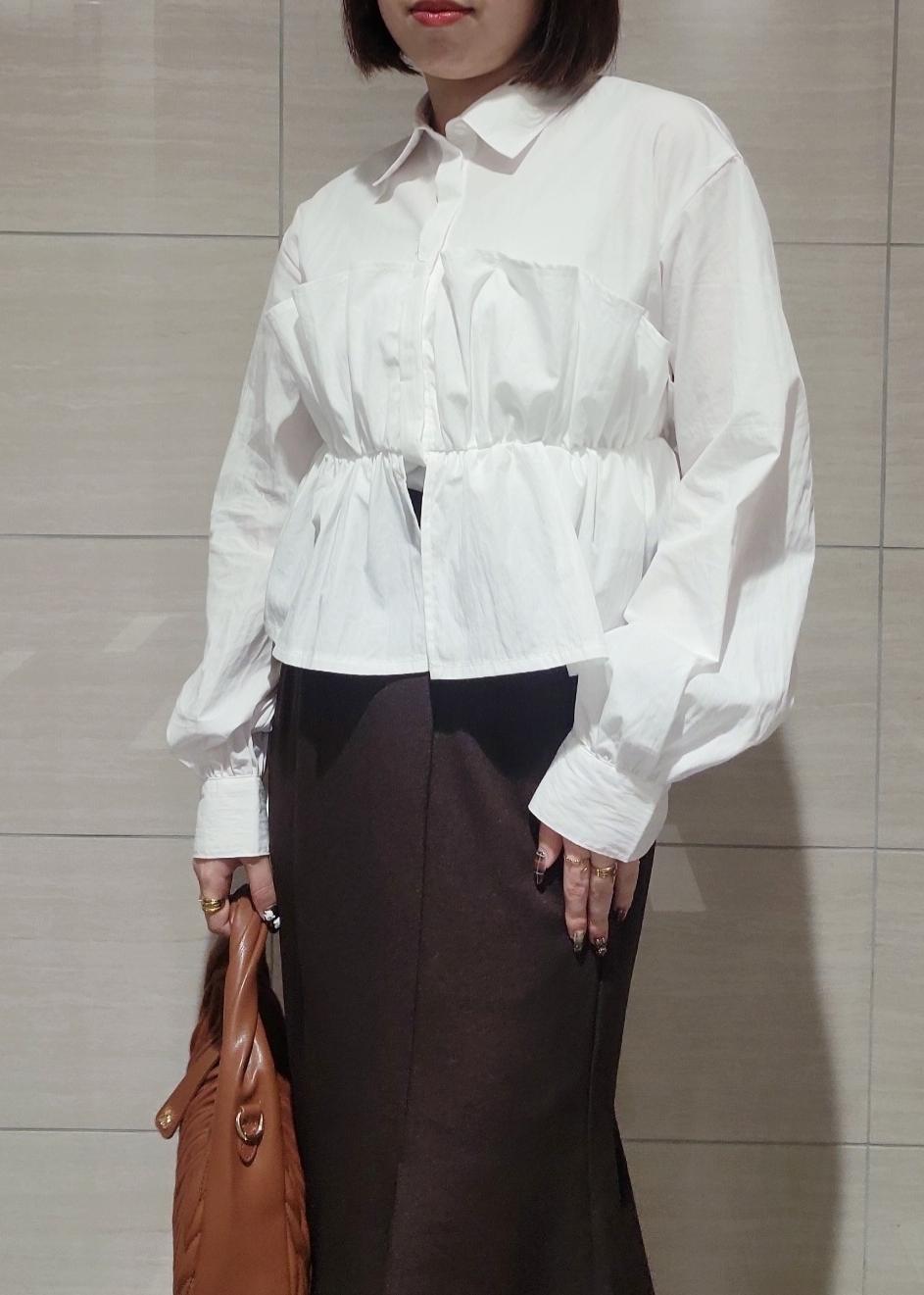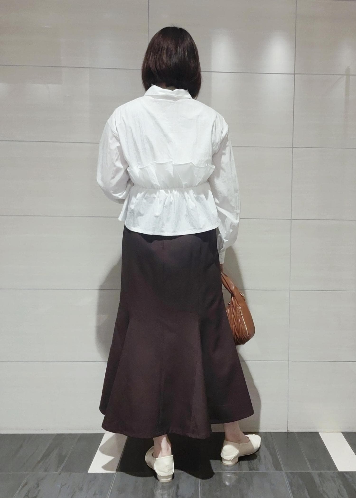 デザイン性のあるブラウスにマーメイドスカートを合わせてシンプル見えしないきれいめコーデにしました!
