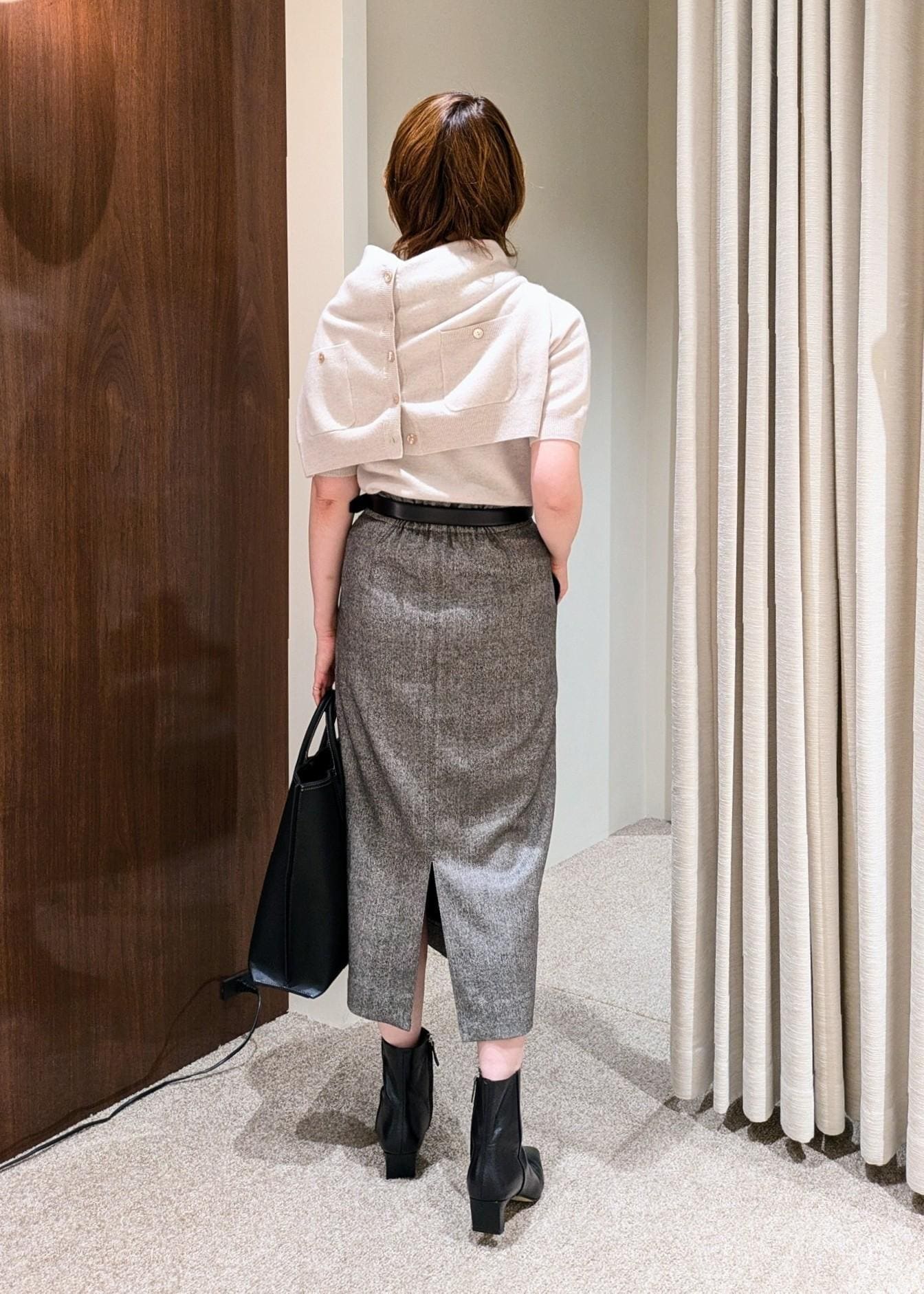 裏地付きのウール混素材で、バックに深めなスリットが入り、タイトシルエットながらもとても動きやすいです♪
