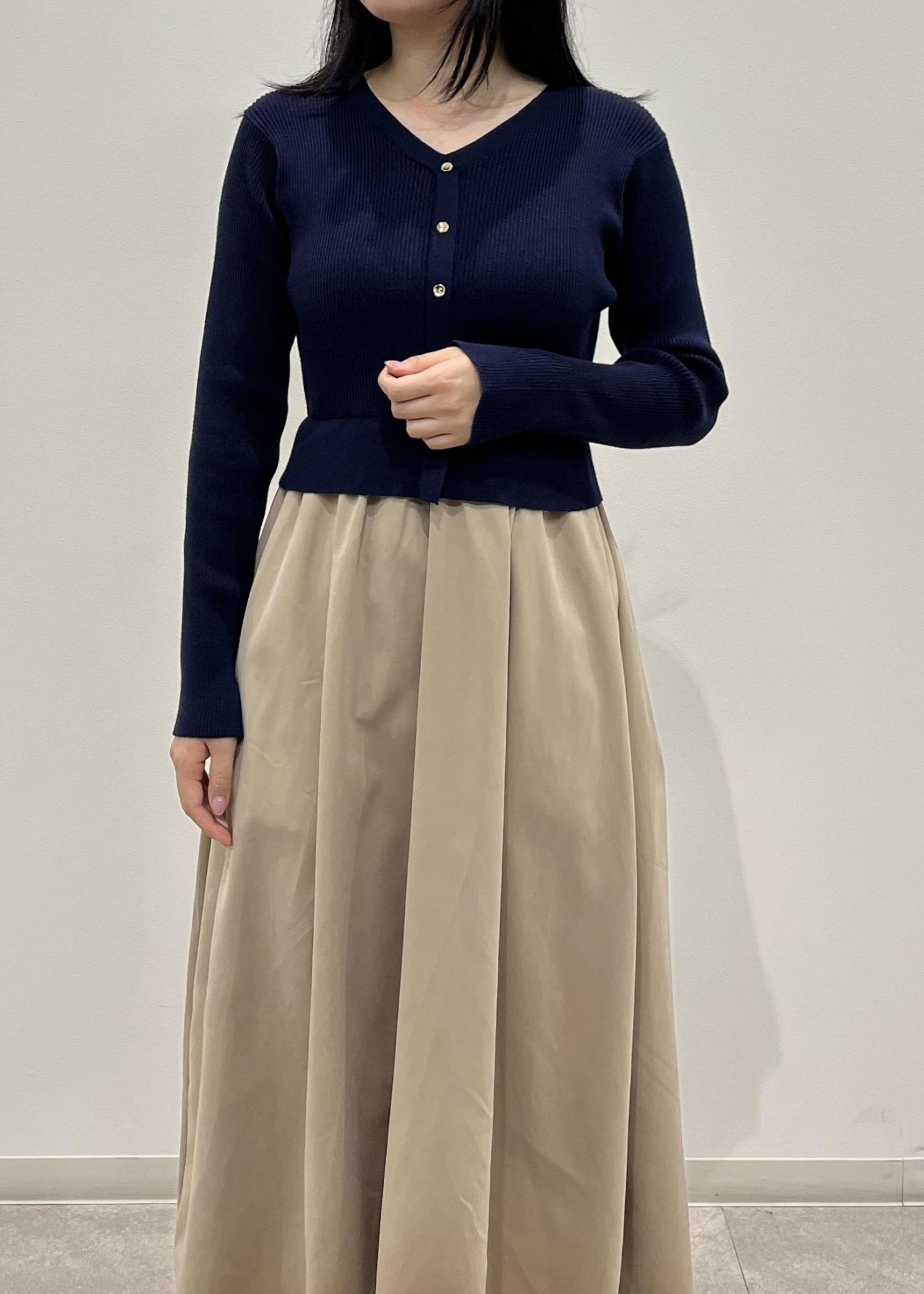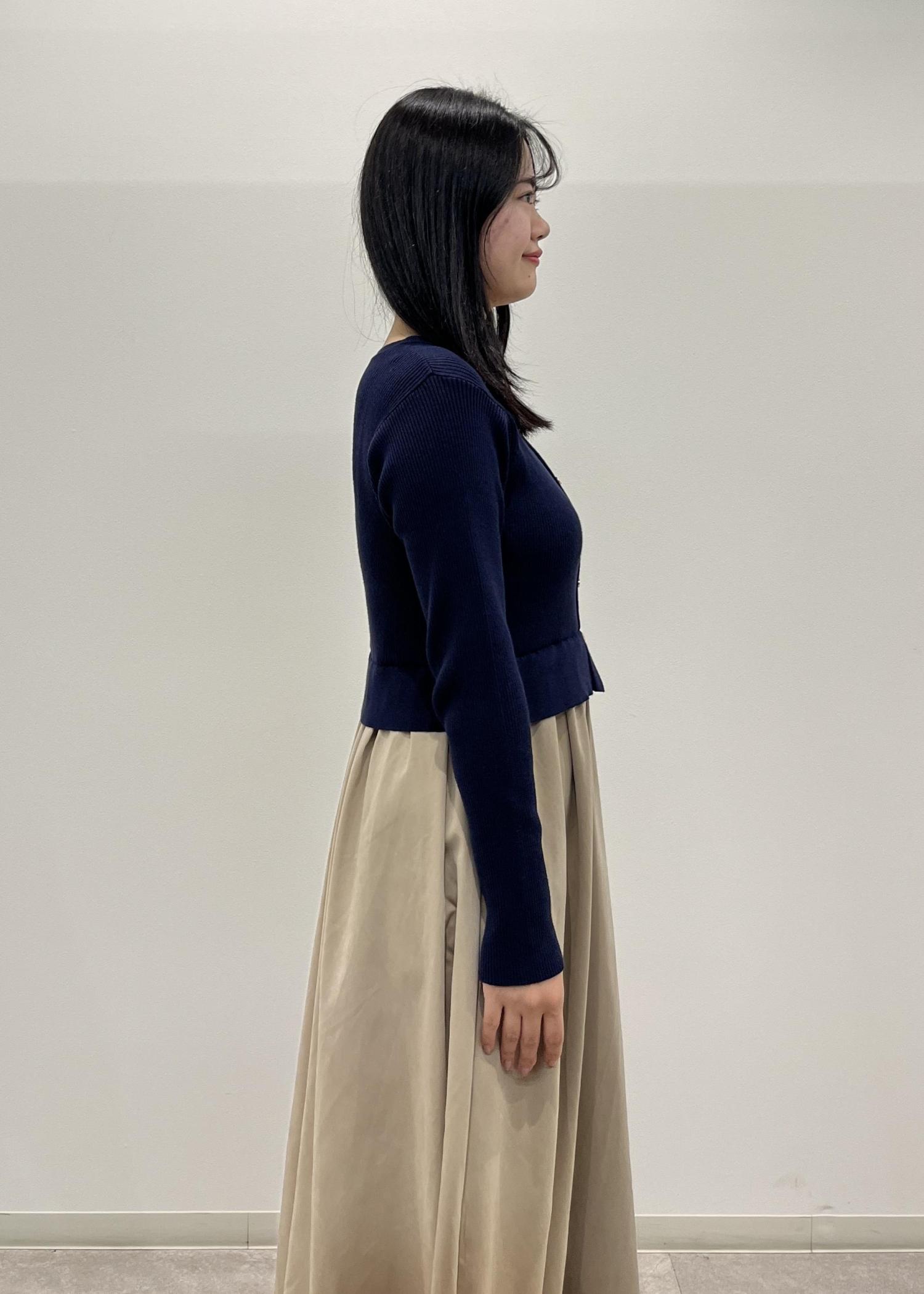 ROPÉ PICNIC【新色追加】メタル釦ドッキングワンピースネイビー / M¥7,491レビューVネックで上半身がジャストサイズのシルエットなので骨格ストレートさんはスッキリ見えます。