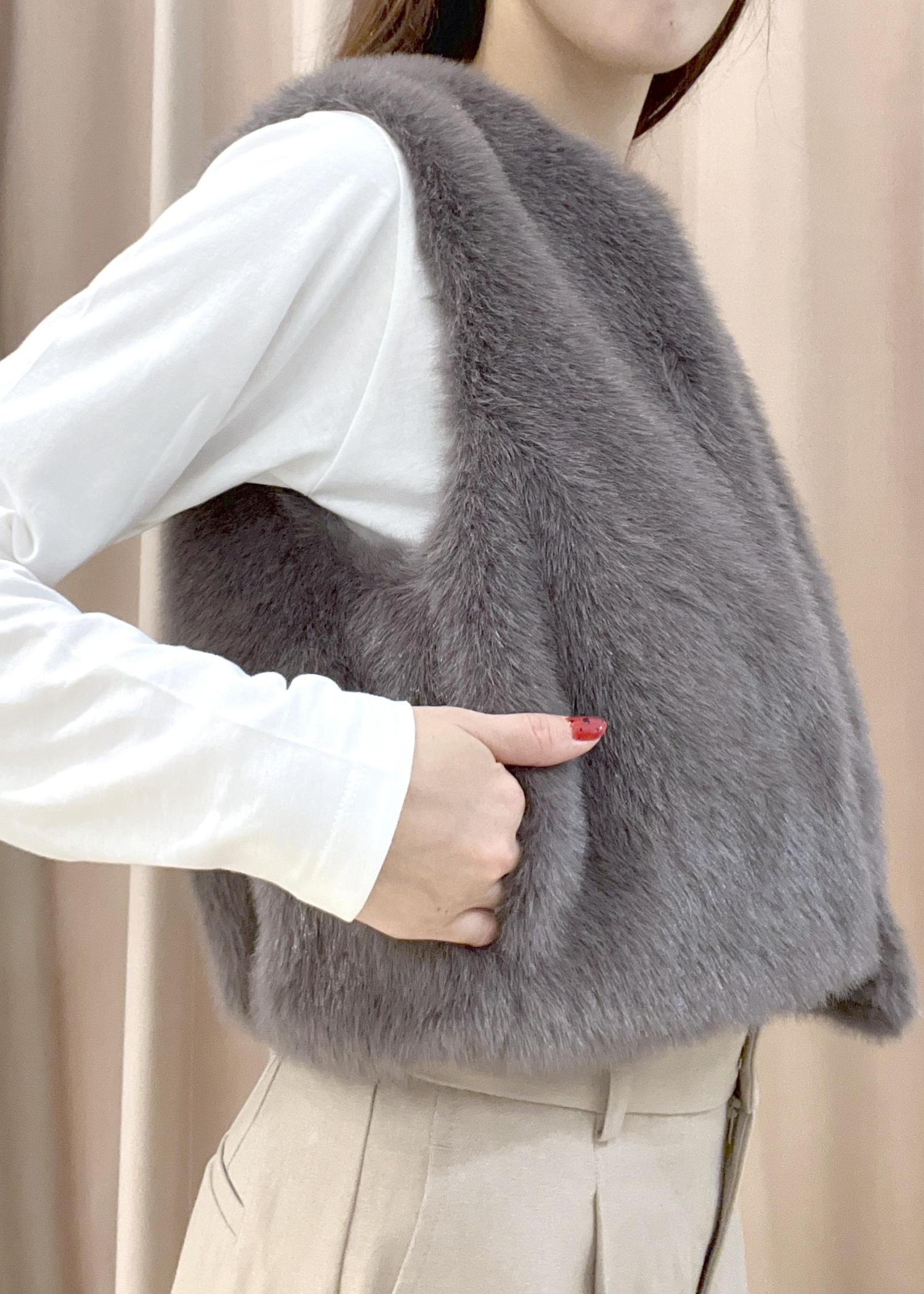 VISアソートファーショートベストグレー系 / F¥8,899レビュー取り入れるだけでオシャレ度UP!