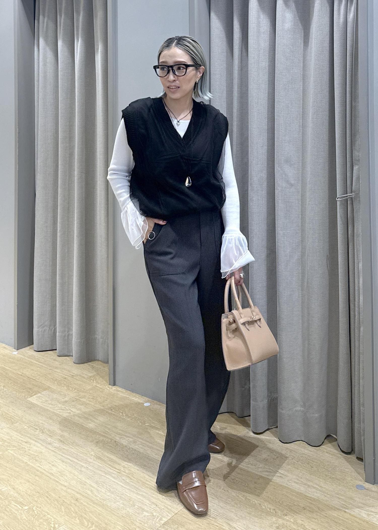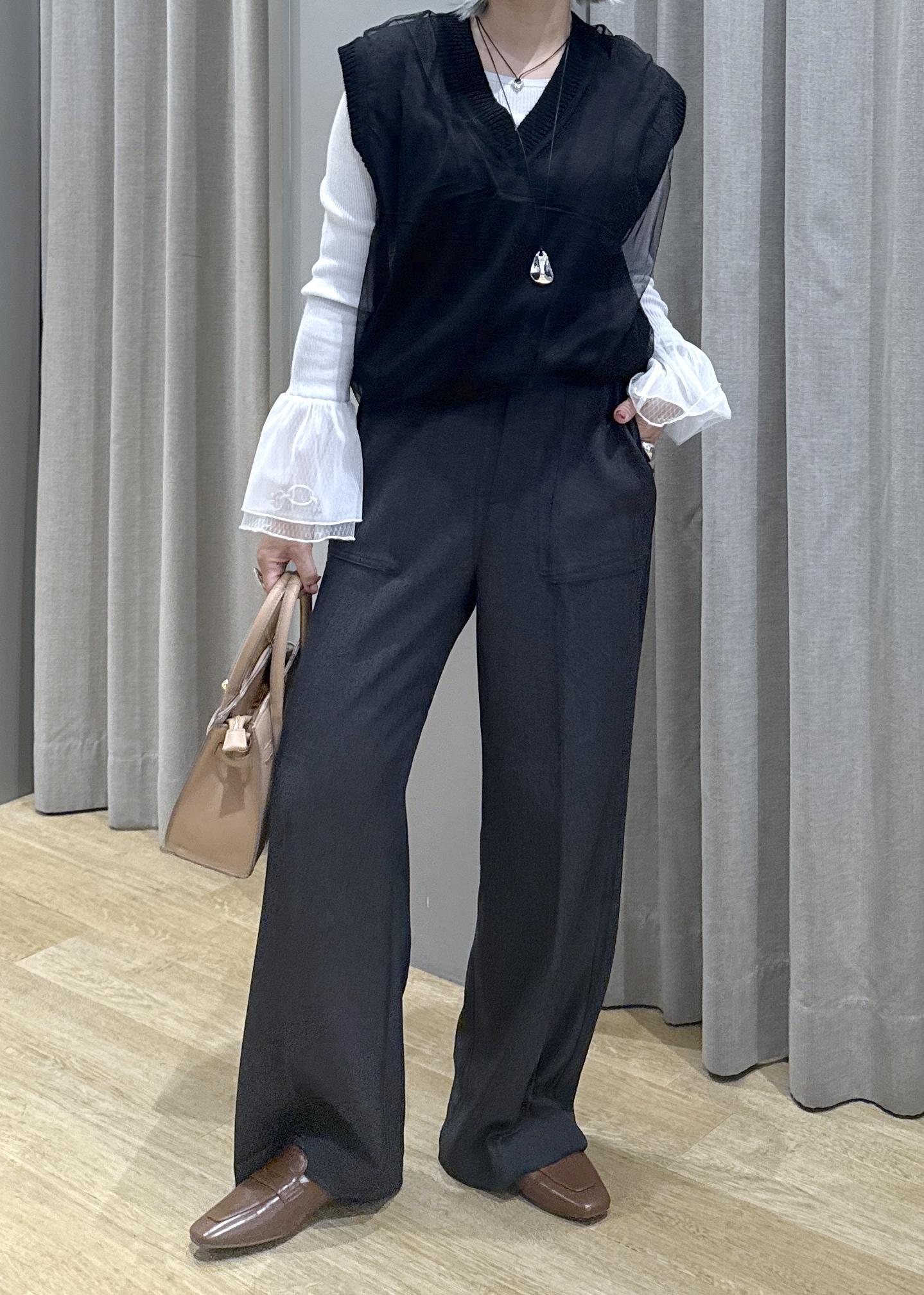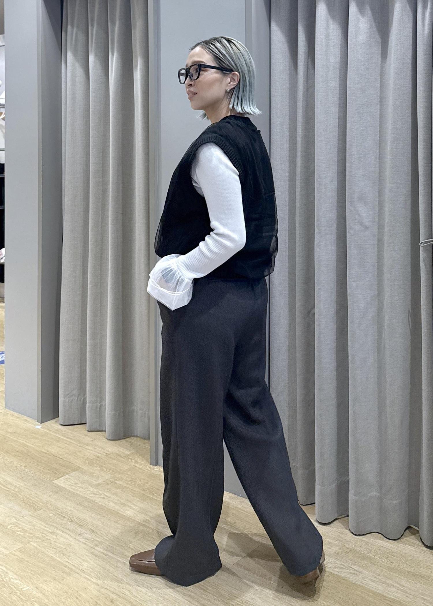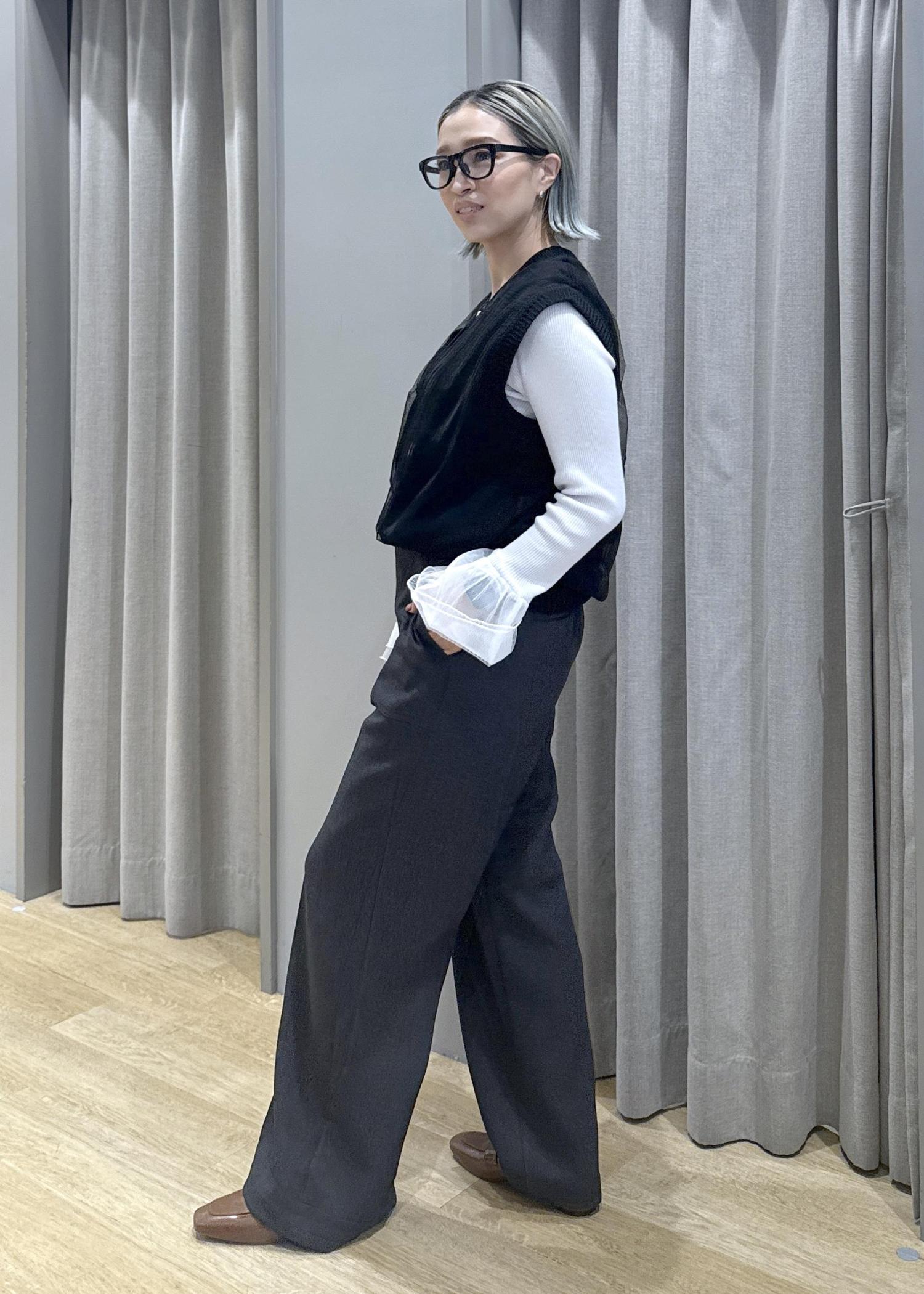 オフィスカジュアルにも使えるキレイめの生地で、普段使いもできる汎用性の高いアイテムになっています。 -