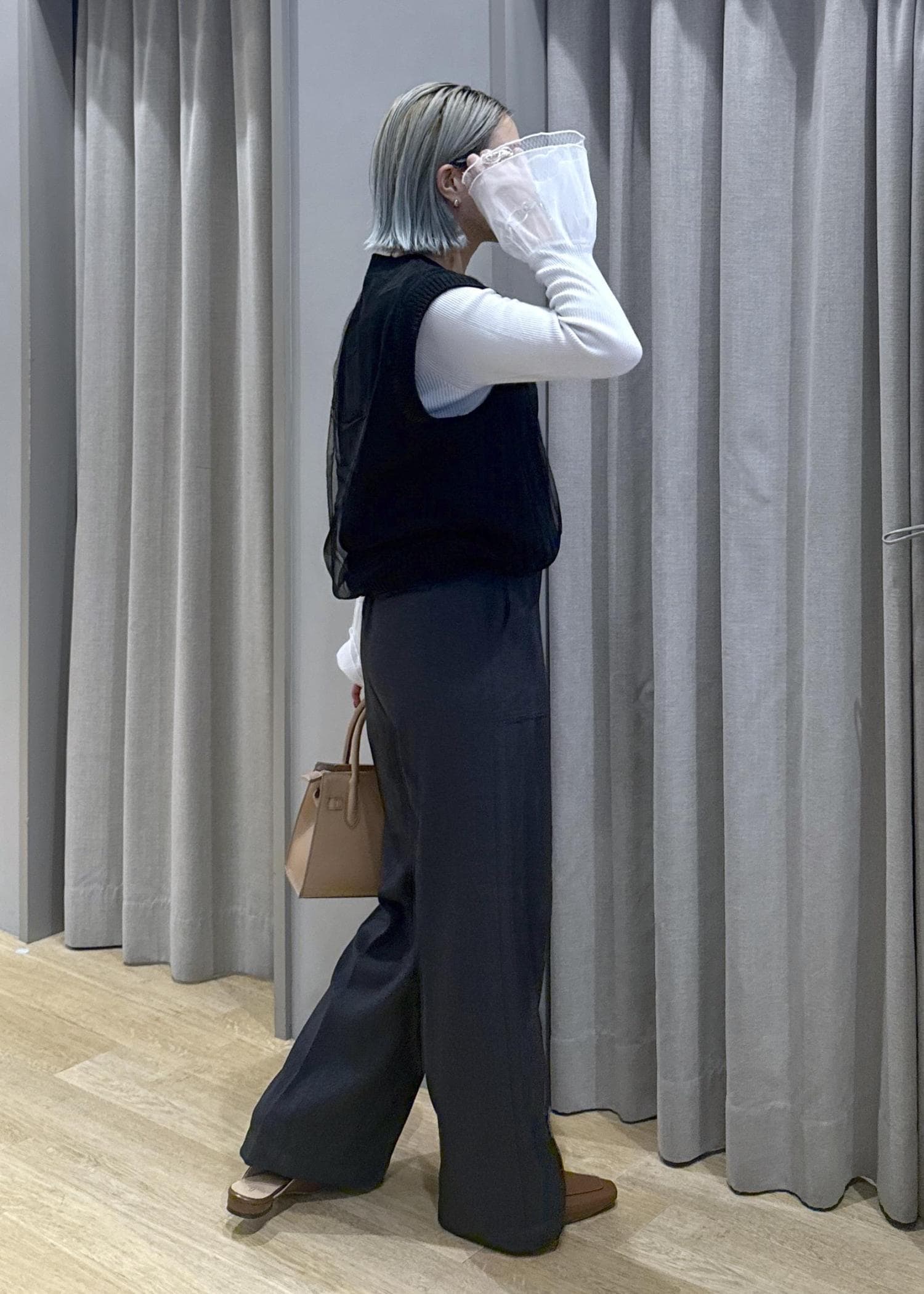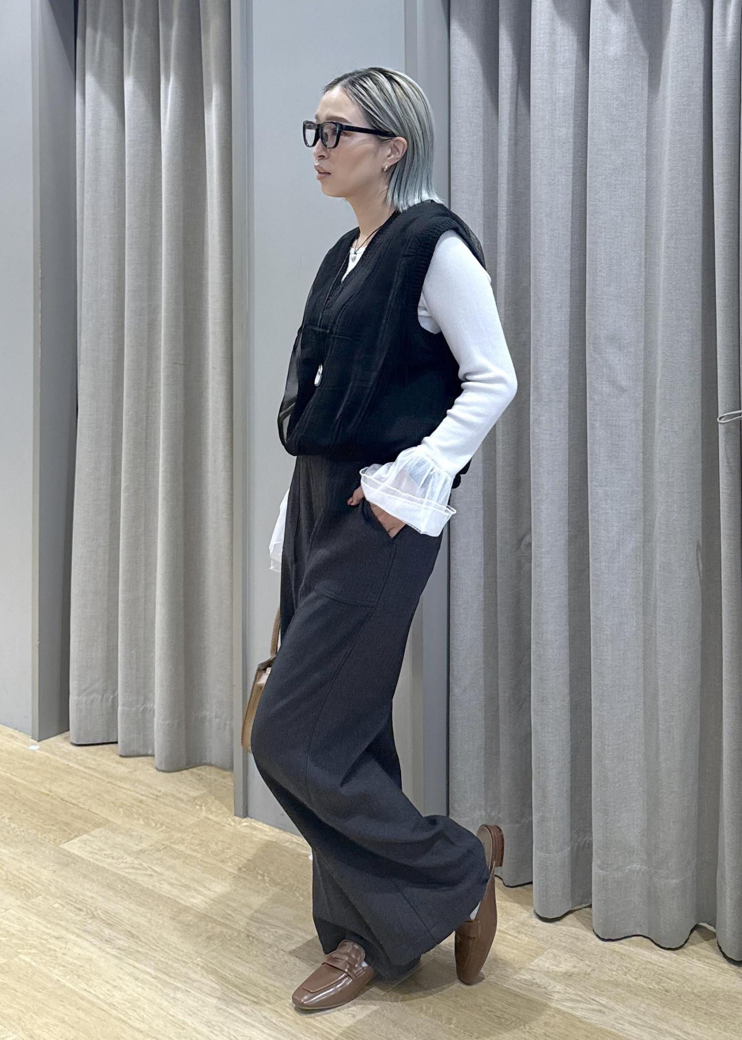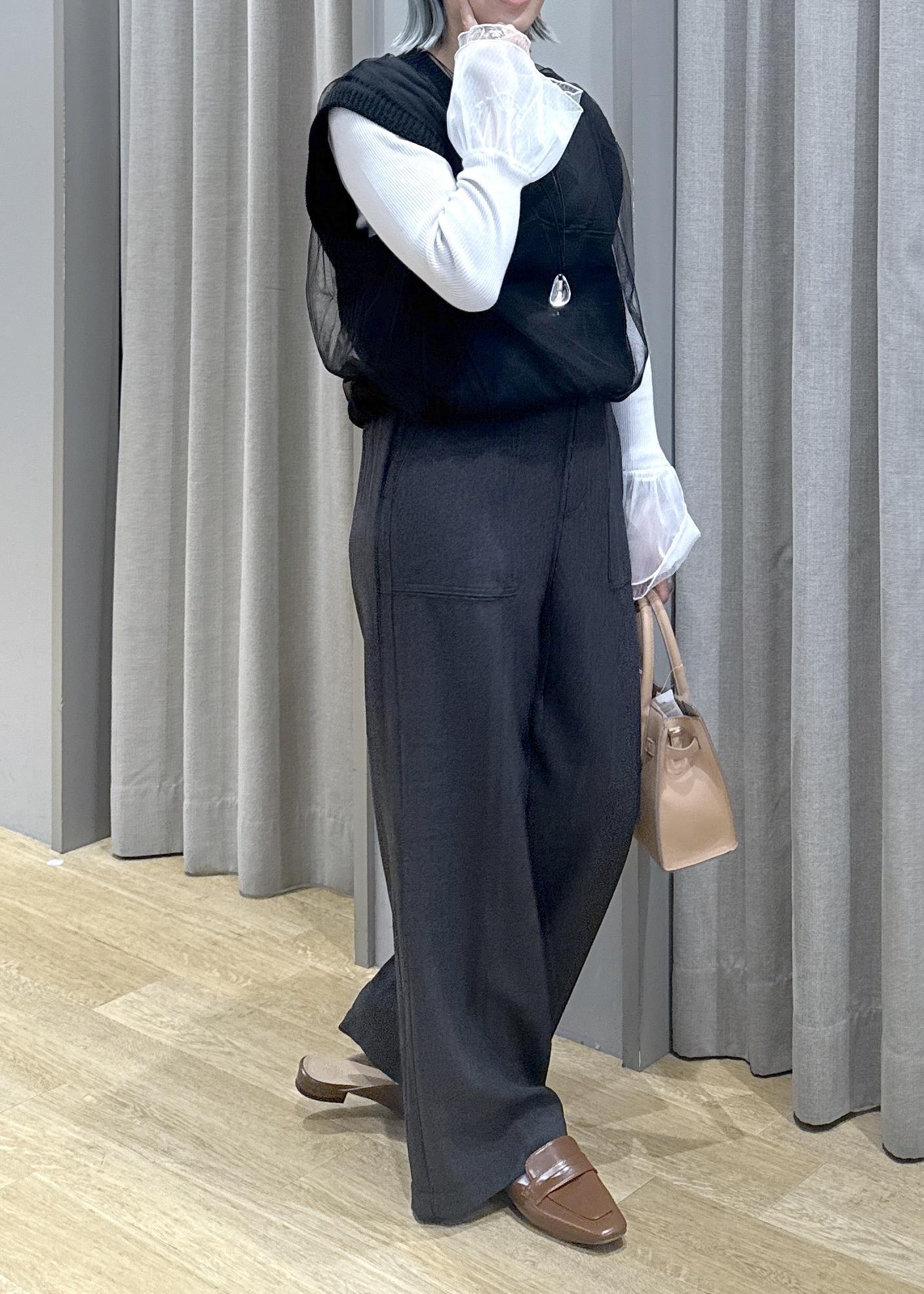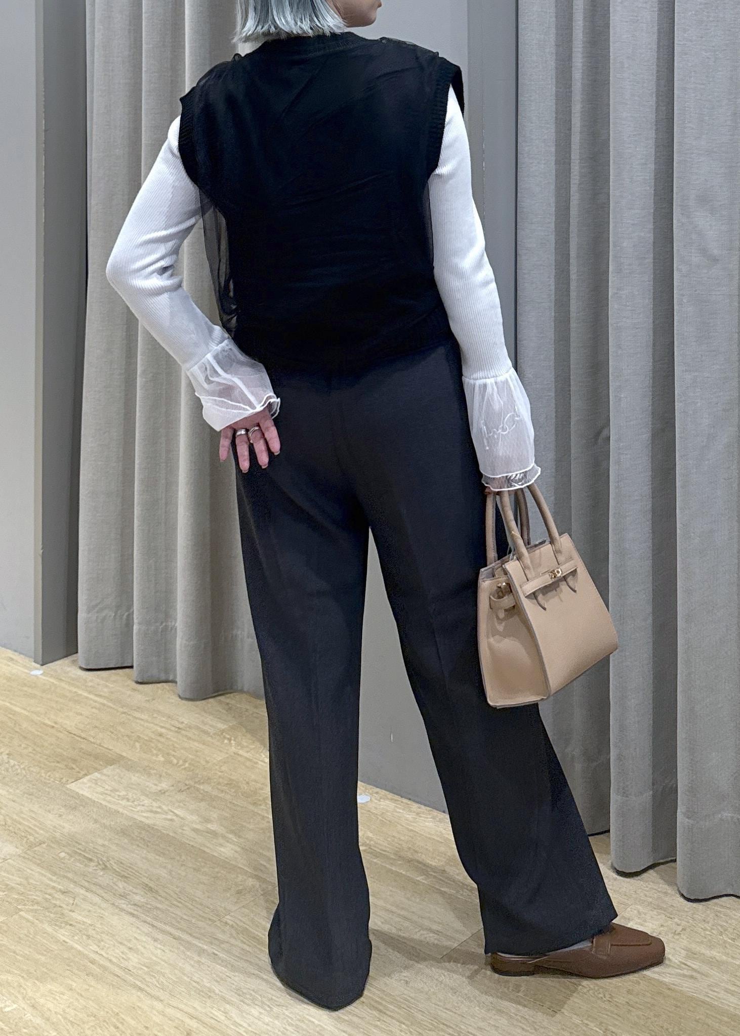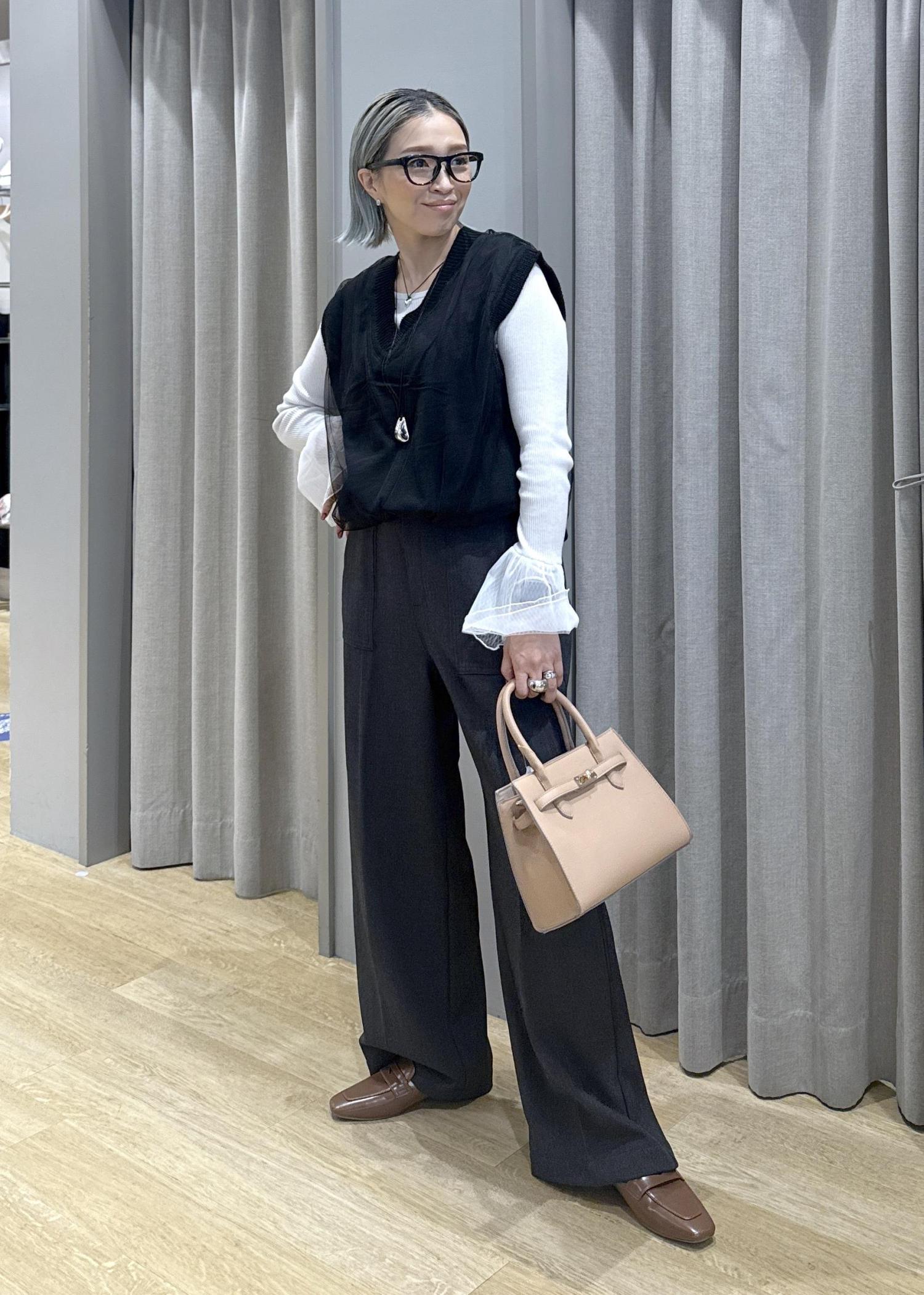 オフィスカジュアルにも使えるキレイめの生地で、普段使いもできる汎用性の高いアイテムになっています。 -