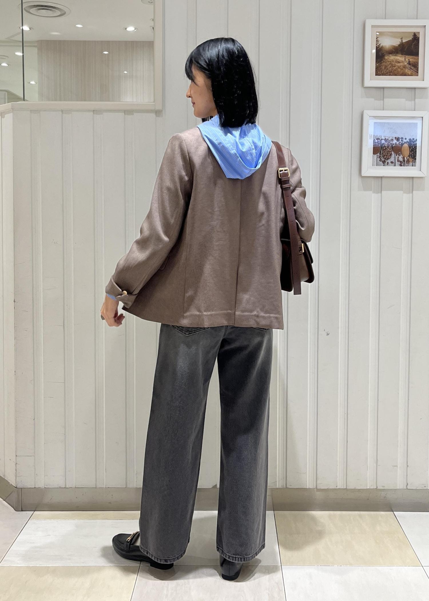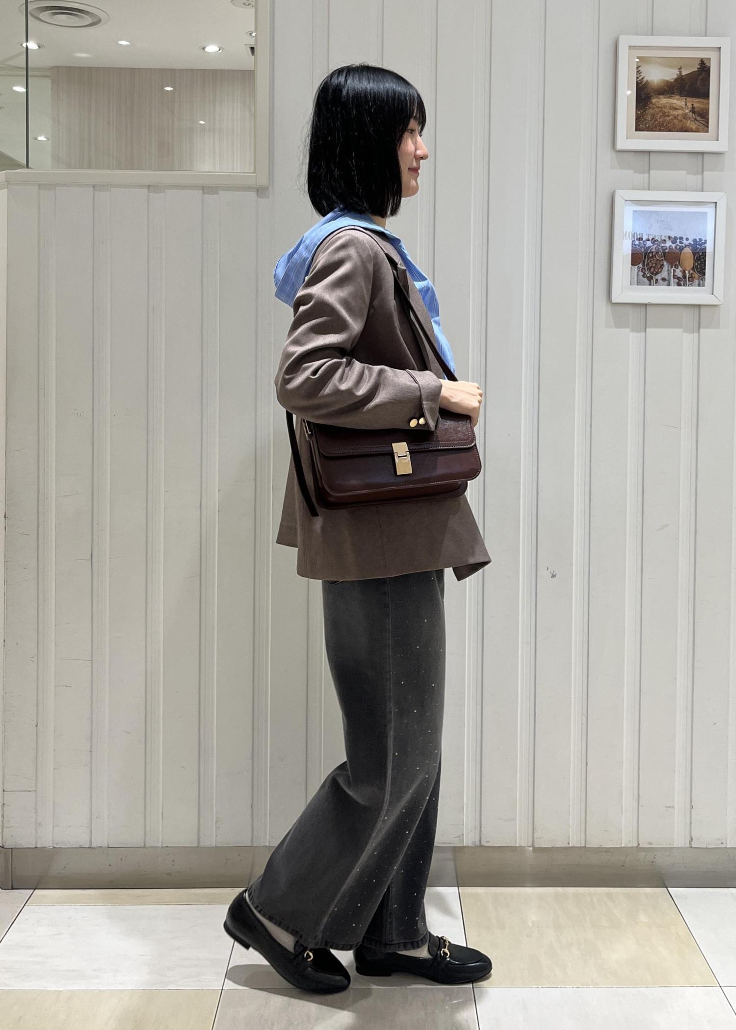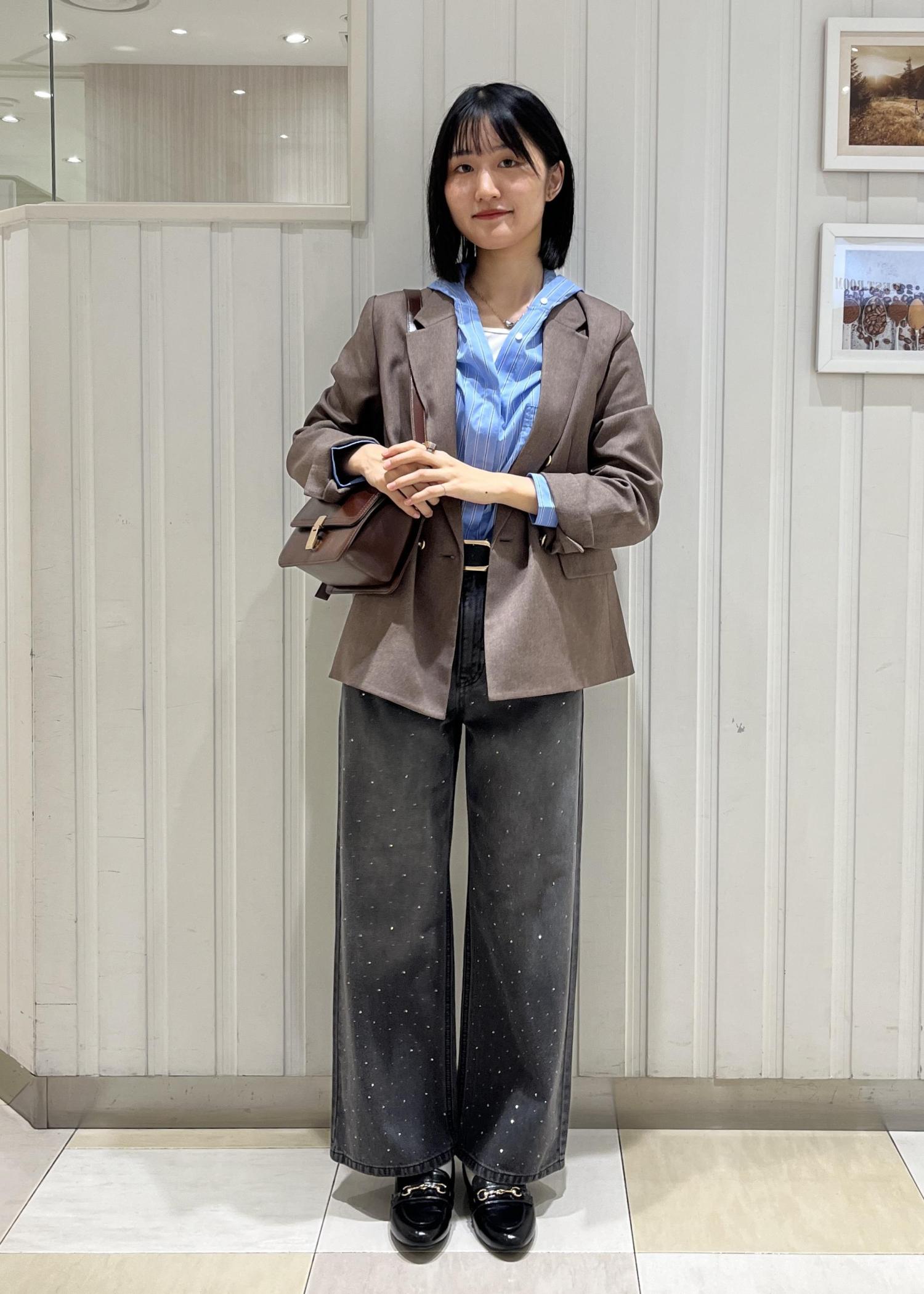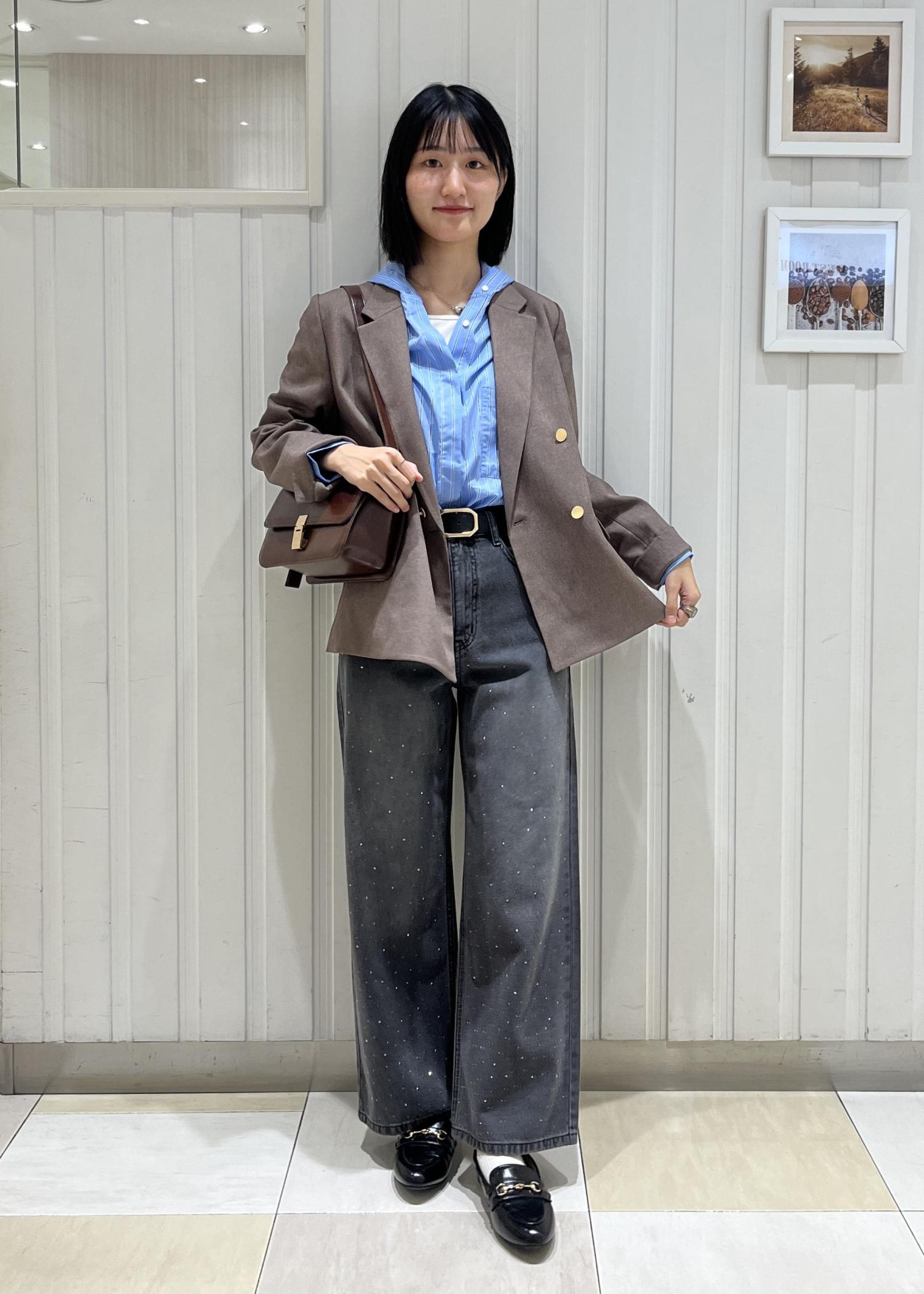 ブラウンとブルーを合わせてトレンド感のあるコーデにしました。
