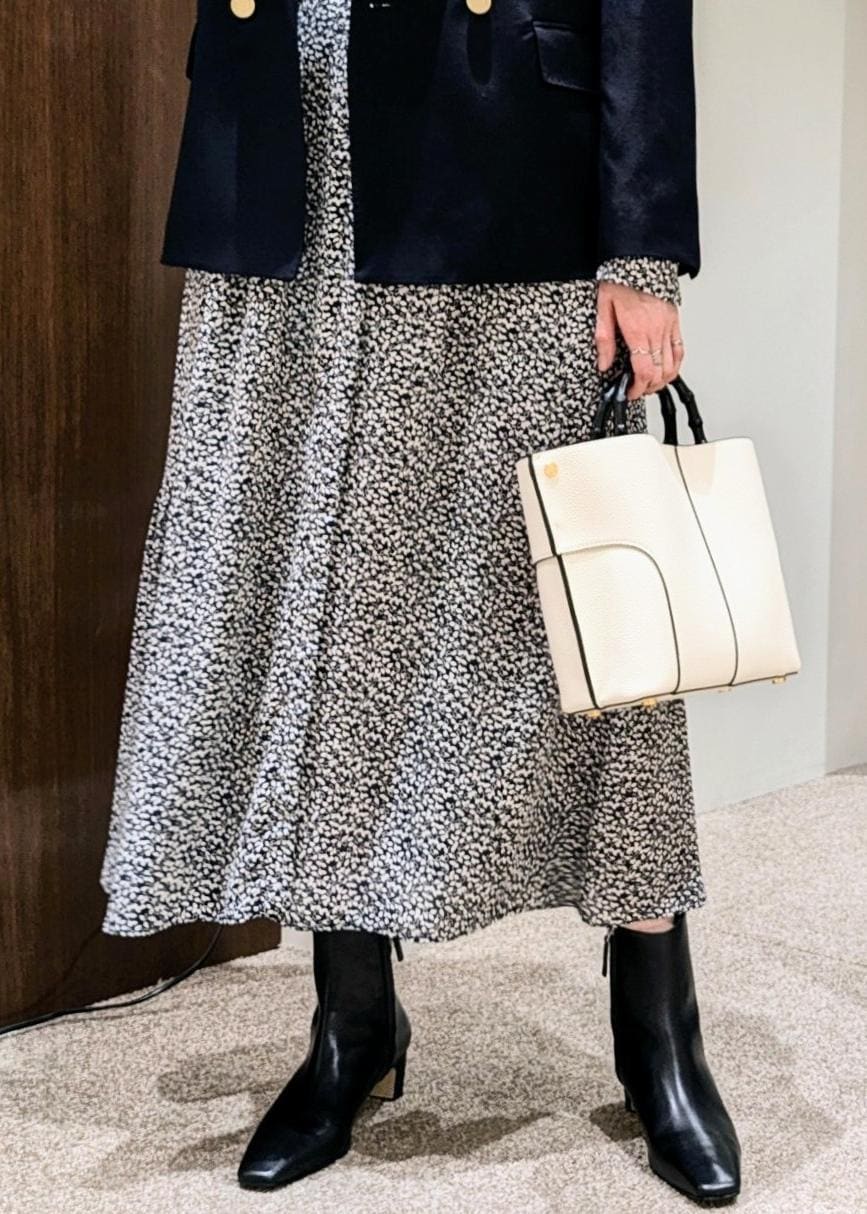 シャリ感のあるジョーゼット素材に、小ぶりなリーフ柄が華やかかつフェミニンな印象です。