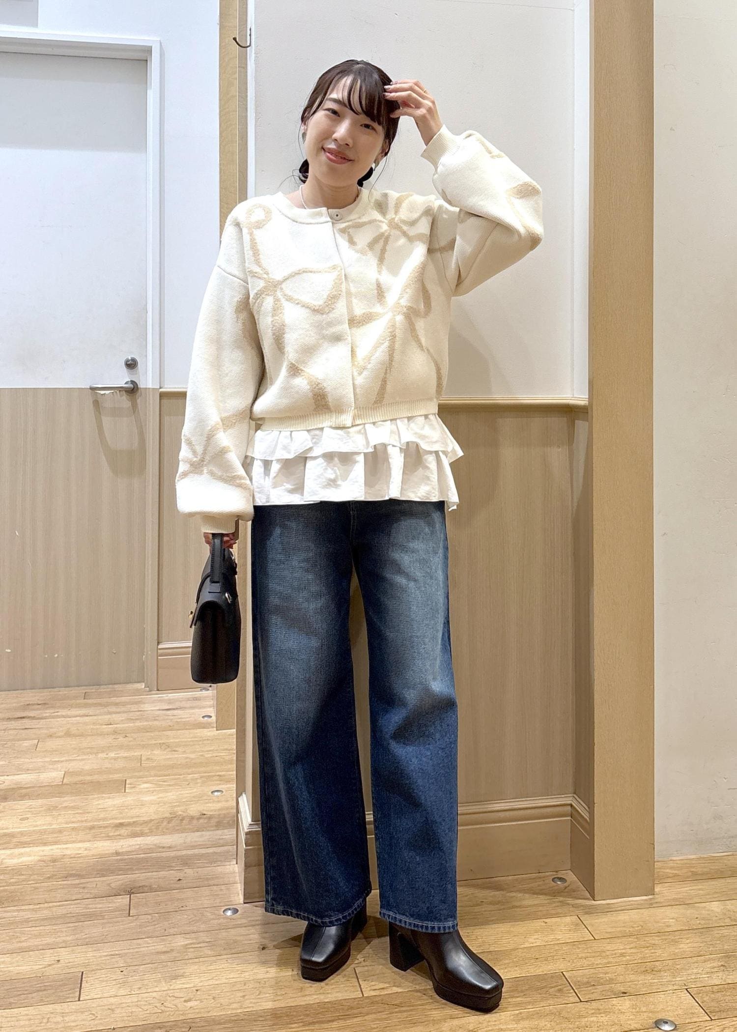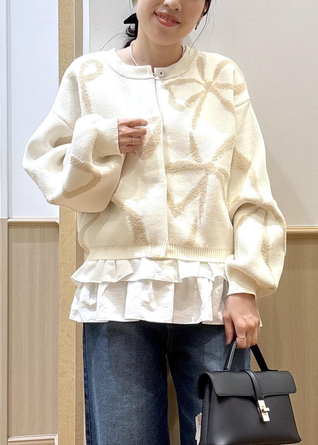 VISリボンモチーフジャガードカーディガン/イージーケアキナリ / F¥6,919レビューシルエットが可愛いカーディガン♡