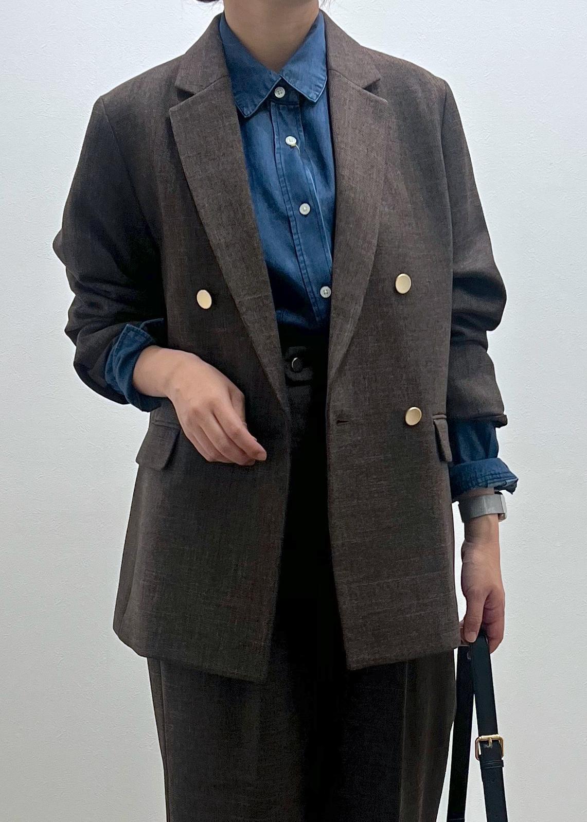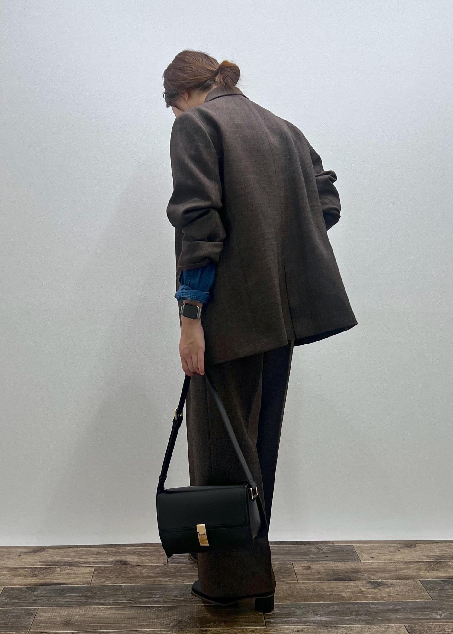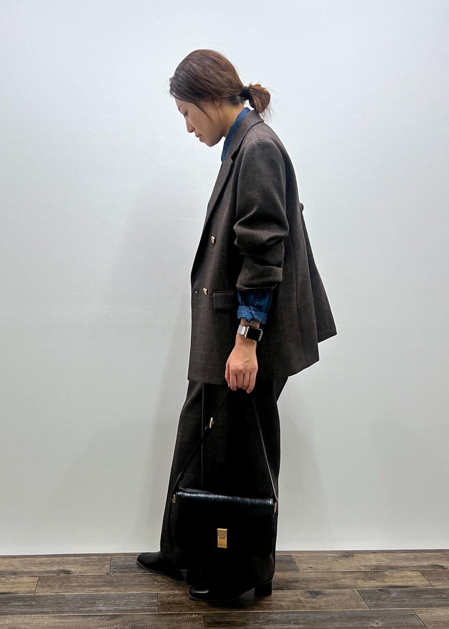今回はツイードのジャケットにデニムのシャツを合わせたメンズライクなスタイリングで組んでみました。