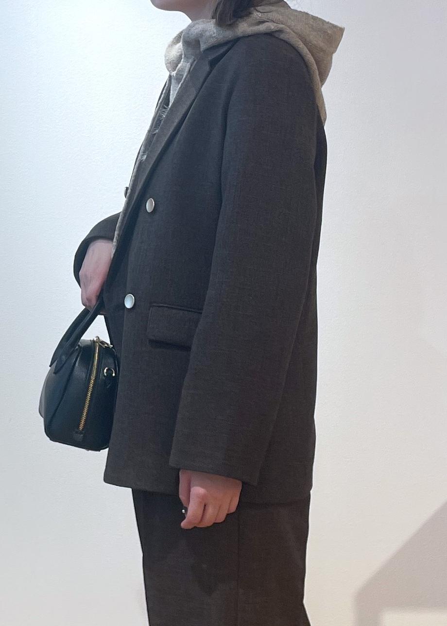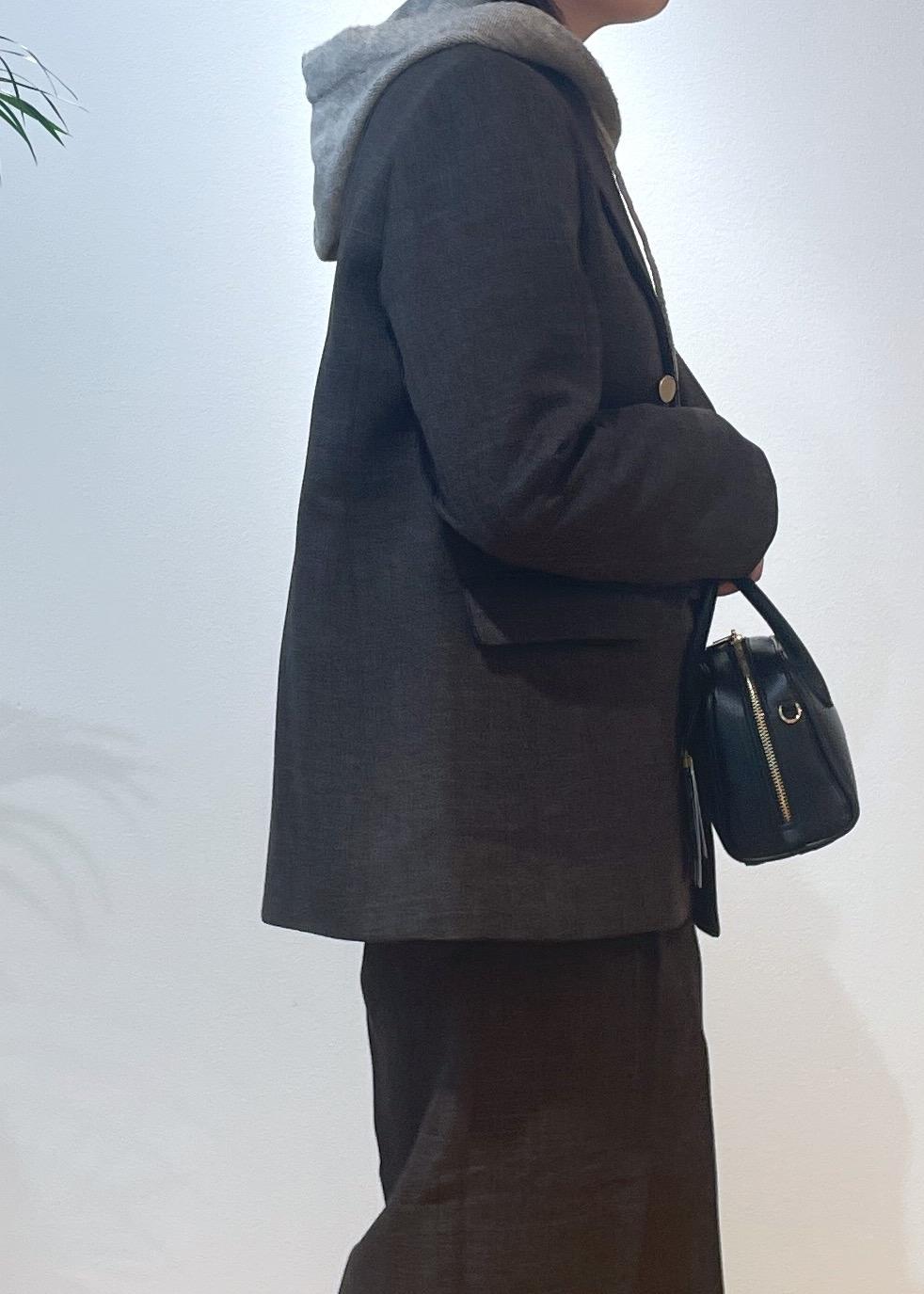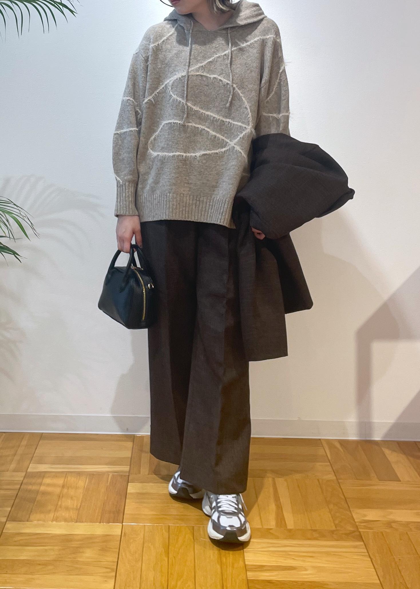 今回は、オンオフで使えるセットアップにフード付きニットを合わせたオフスタイルコーデです♩