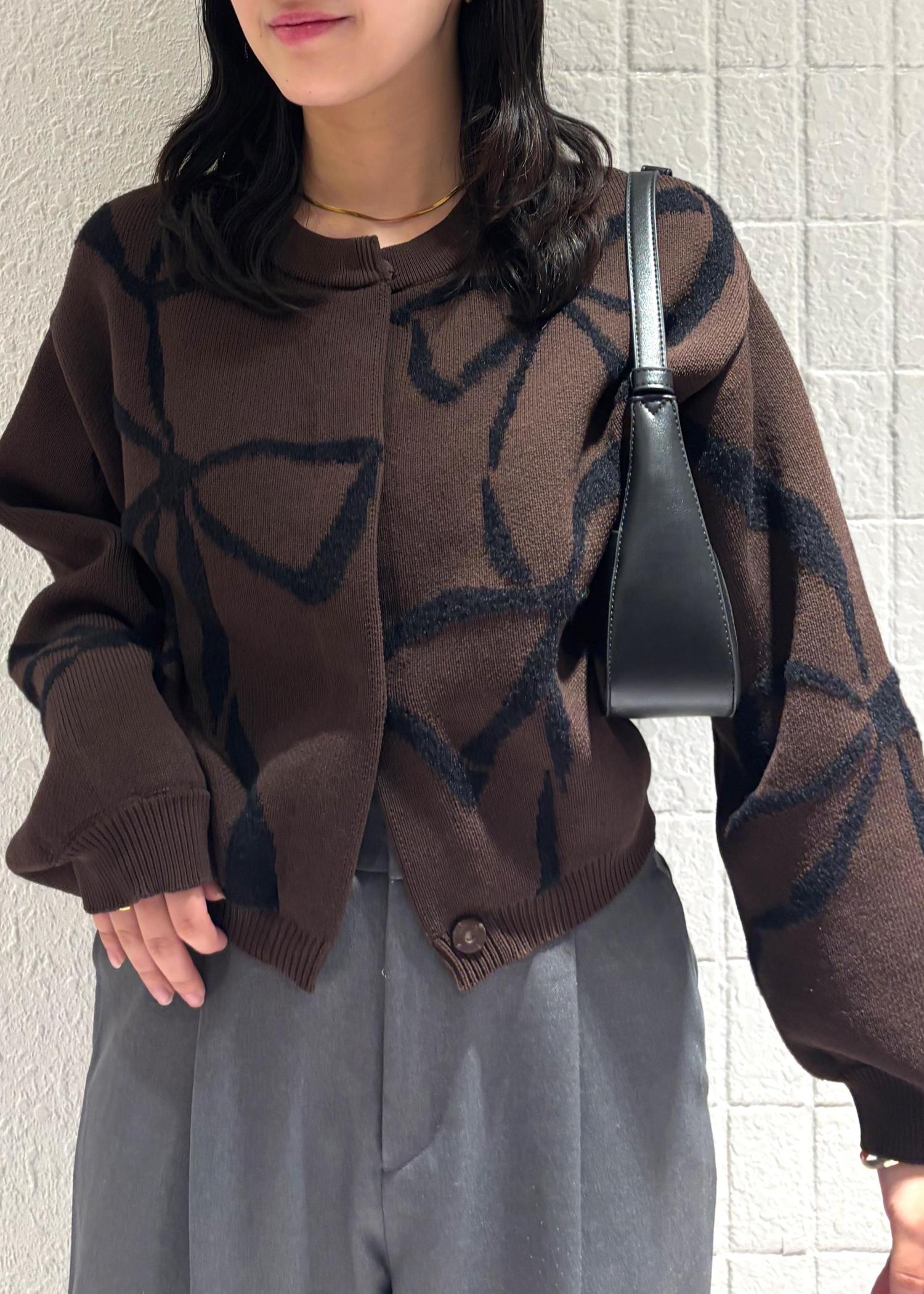 VISリボンモチーフジャガードカーディガン/イージーケアダークブラウン / F¥6,919レビュー165cmで腰にかかる丈感です!