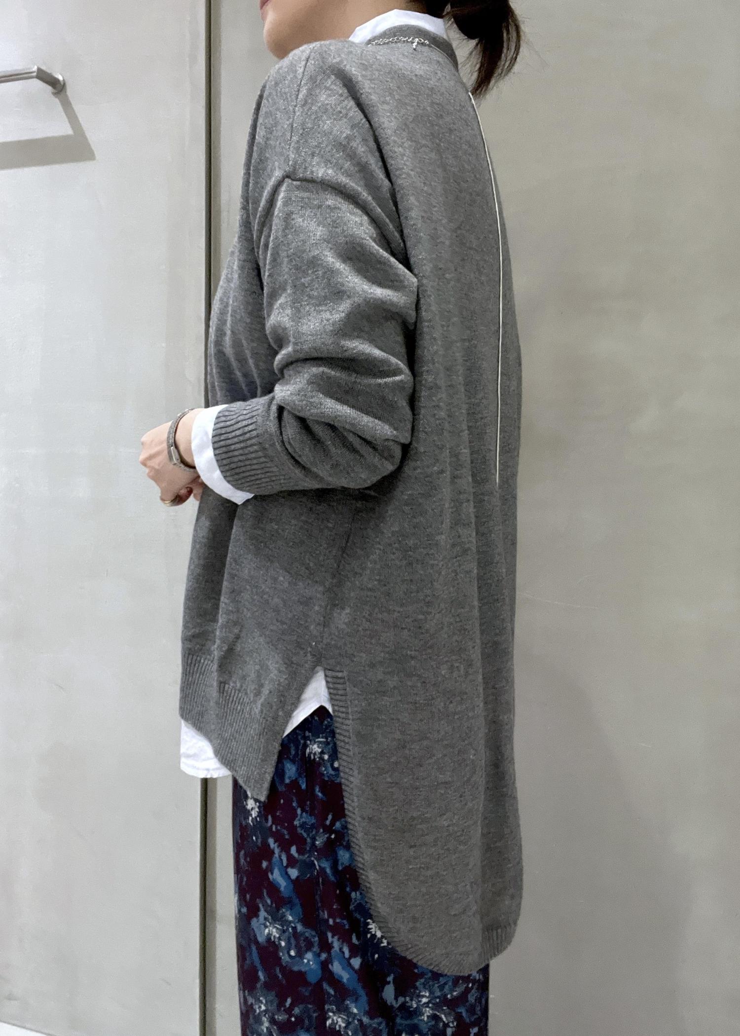 後ろのシームディテールがポイントのシンプルなハイネックニットが入荷しました。