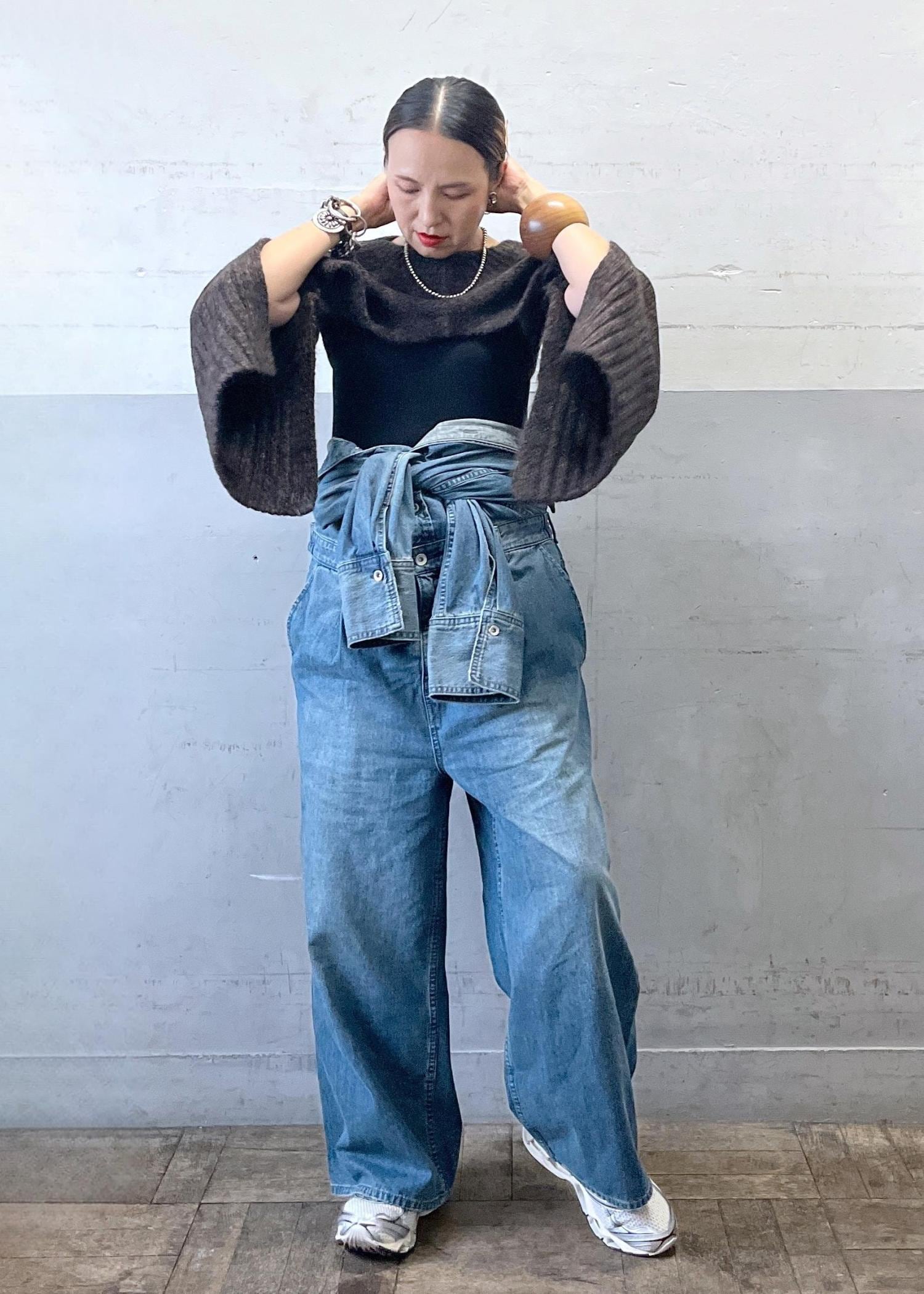 ADAM ET ROPÉ FEMMEデニムジャンプスーツブルー系 / 38¥29,700レビュー身長166cmで38サイズ着用。やや薄手の素材なのでレイヤードやトップ部分を着ずにウエストで巻くスタイリングもしやすいです。上からも羽織りやすいサイズ感なので着回しが効きますよ!