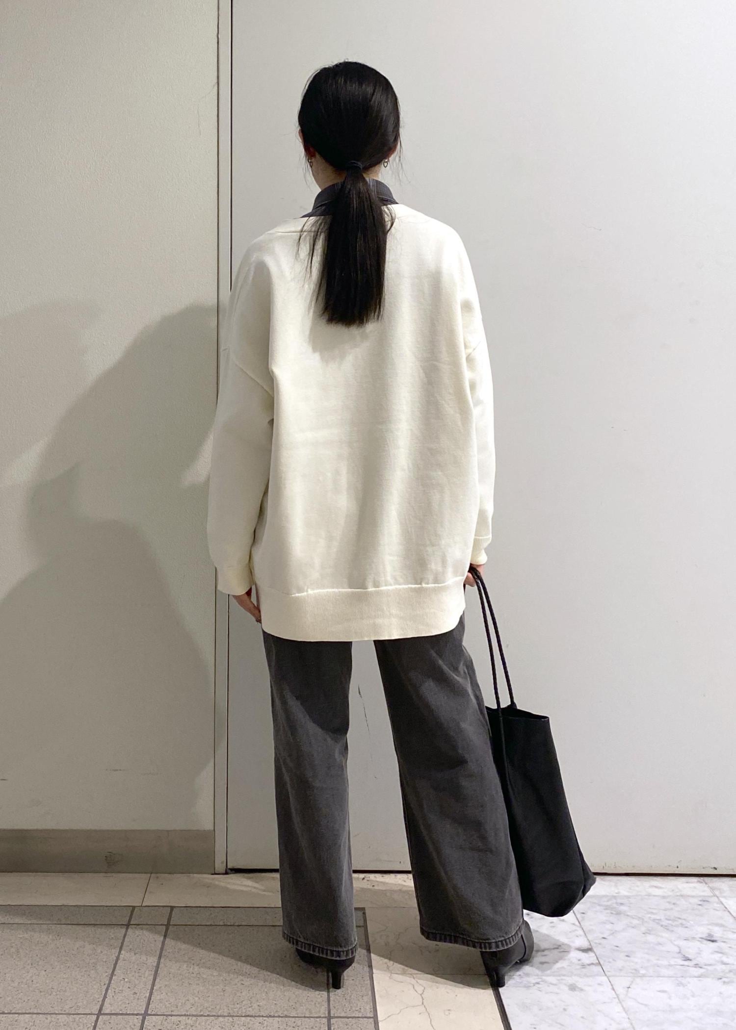 ワイドめのシルエットなので、トップスはスッキリまとめるのがおすすめです。 -
