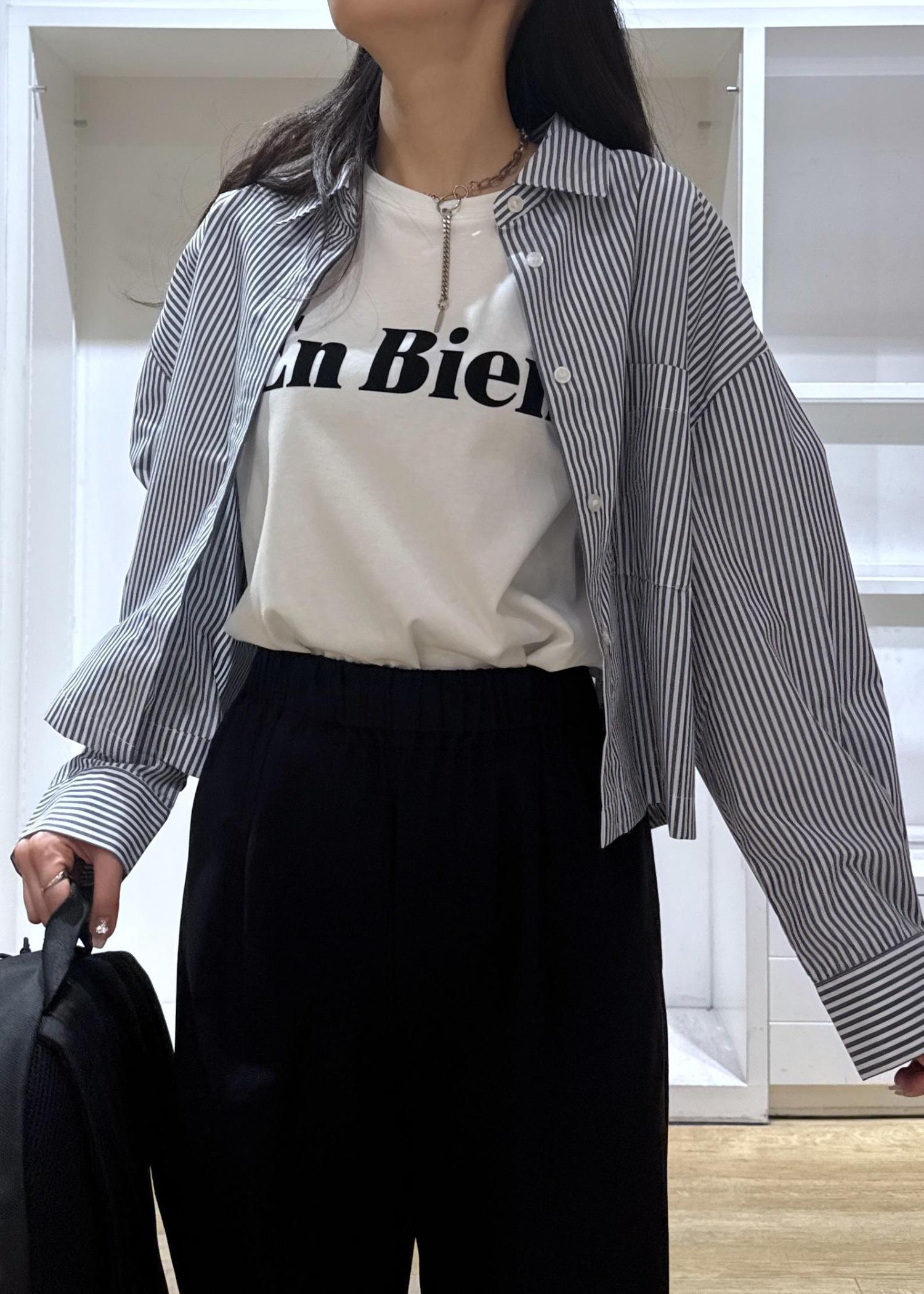 ROPÉ PICNICベーシッククロップドシャツ/イージーケアネイビー / F¥5,489レビュー丈が短いので、どんなボトムスでも合わせやすいです!