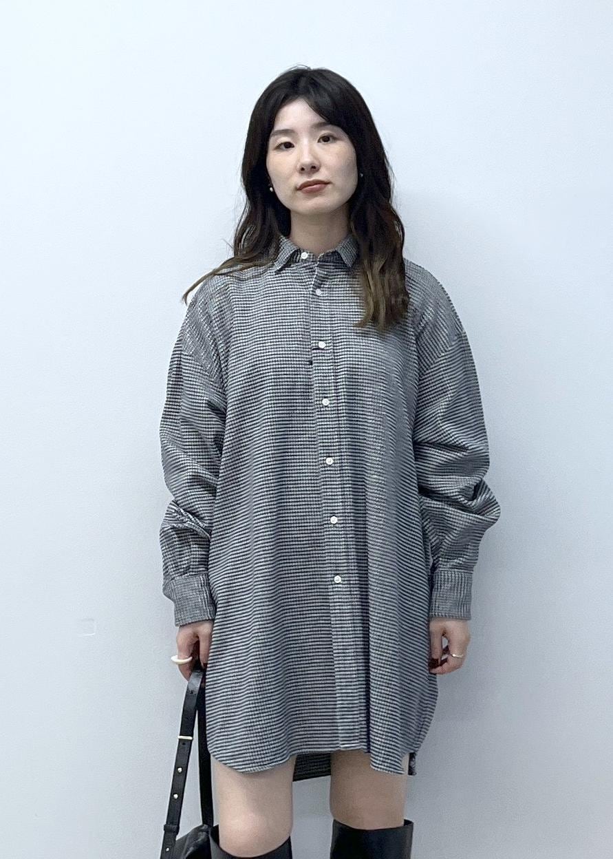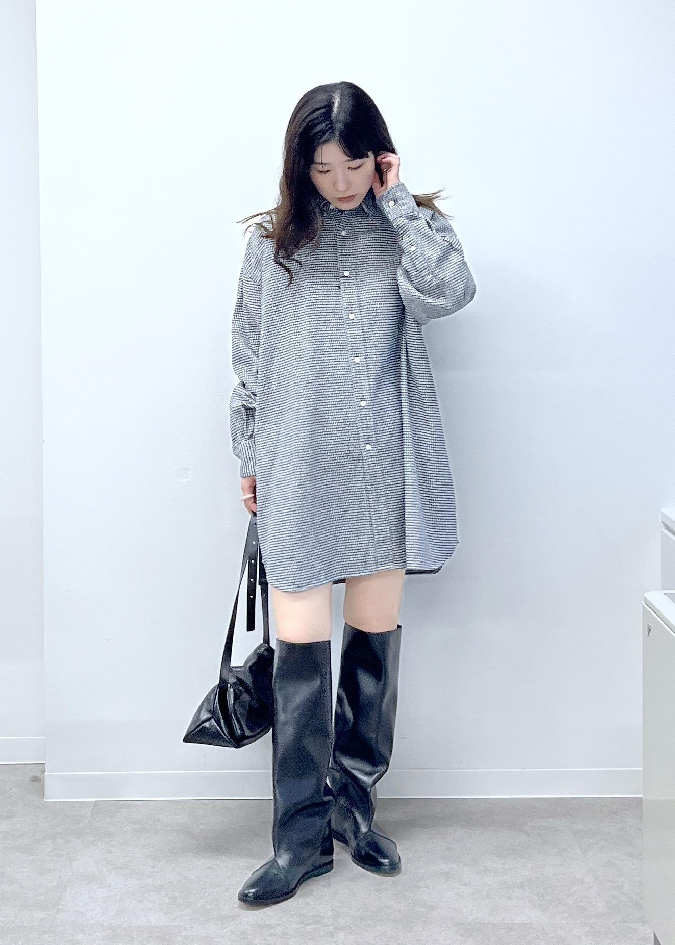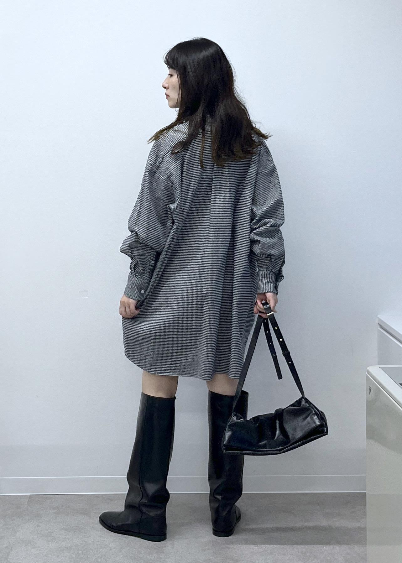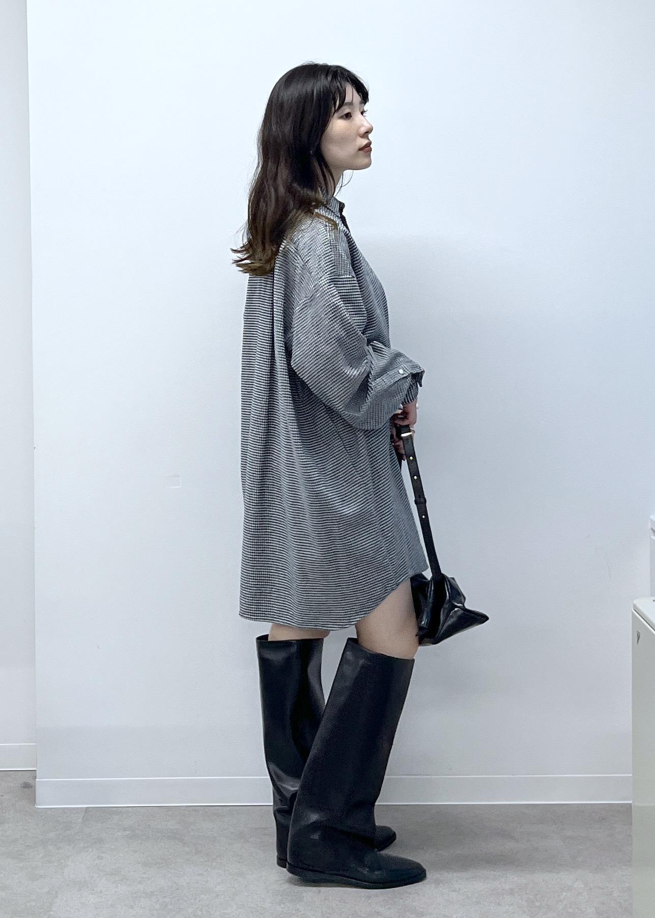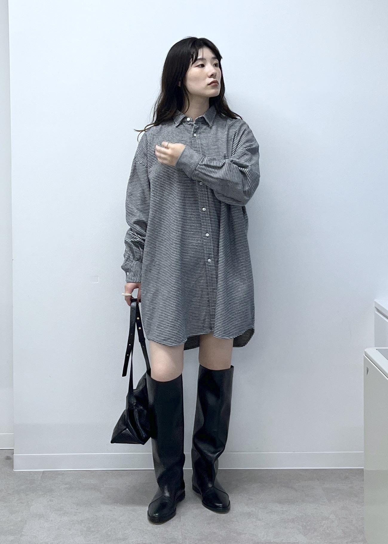 オーバーサイズ。自身の身長だとシャツワンピースとしても着用できる着丈の長さです。