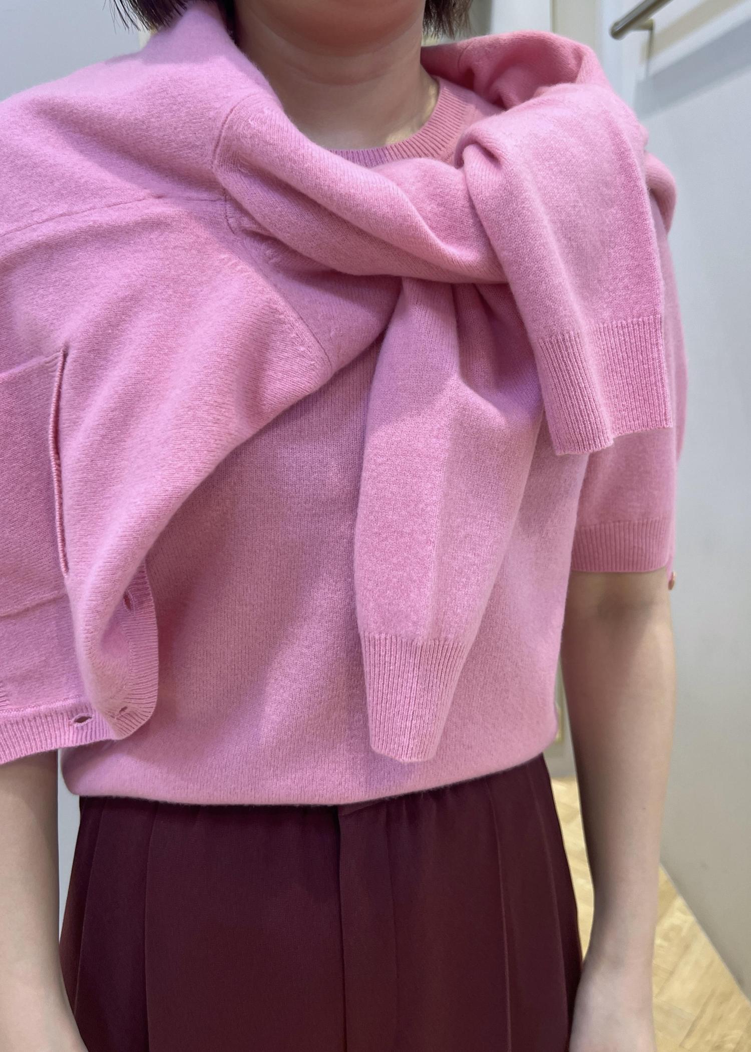 ROPÉウールカシミヤブレンド 5分袖ニットプルオーバー/イージーケアピンク系 / F¥19,800レビュー程よくゆとりがあり着丈はやや短めです。
