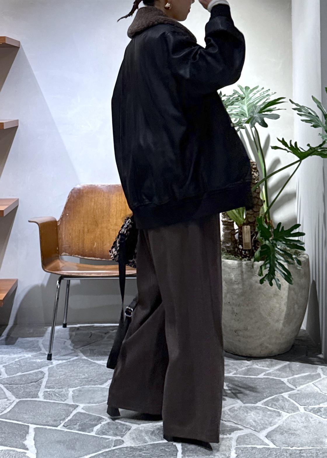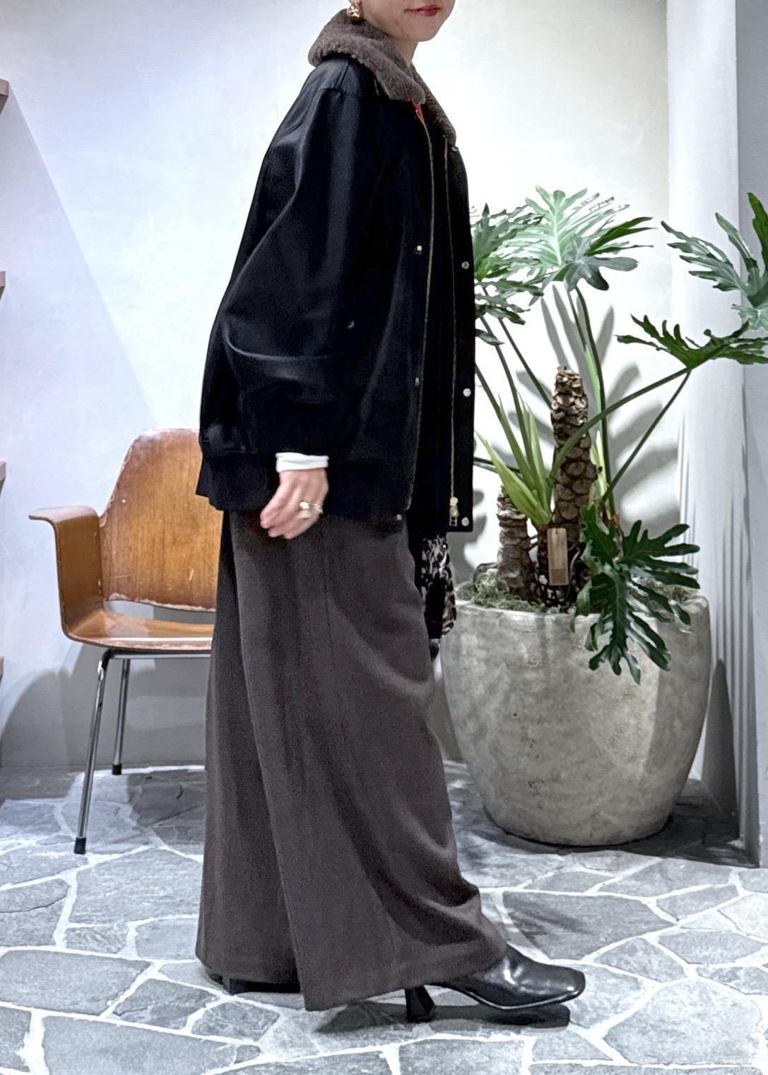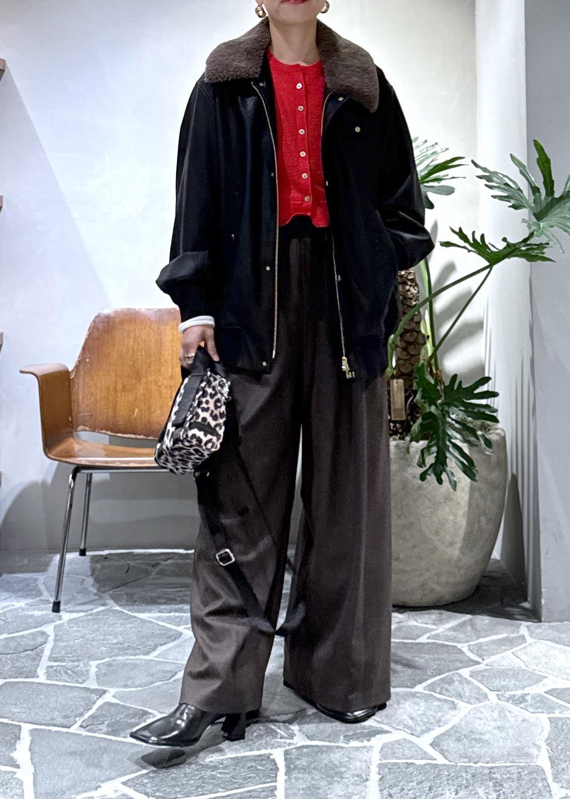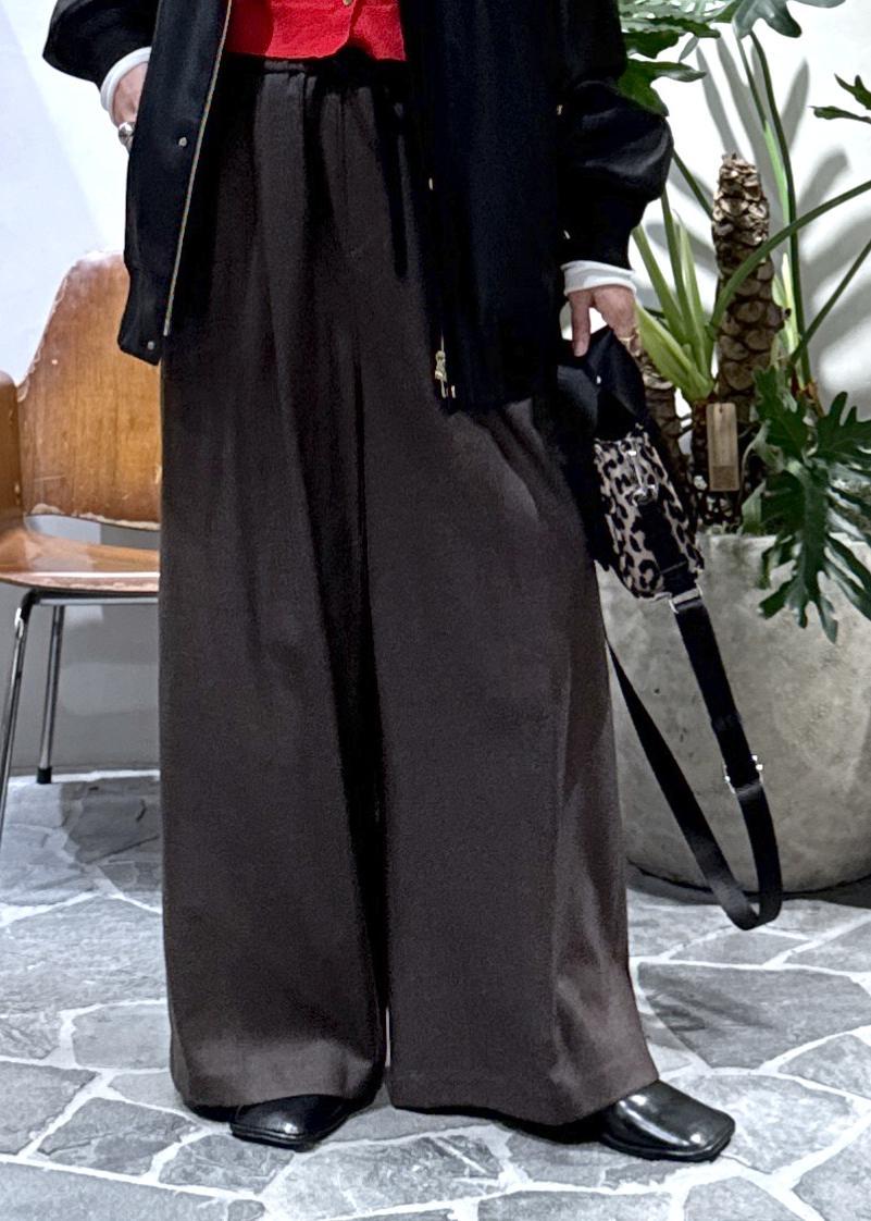 今日はリアルバイした、ウールのワイドパンツと合わせました。