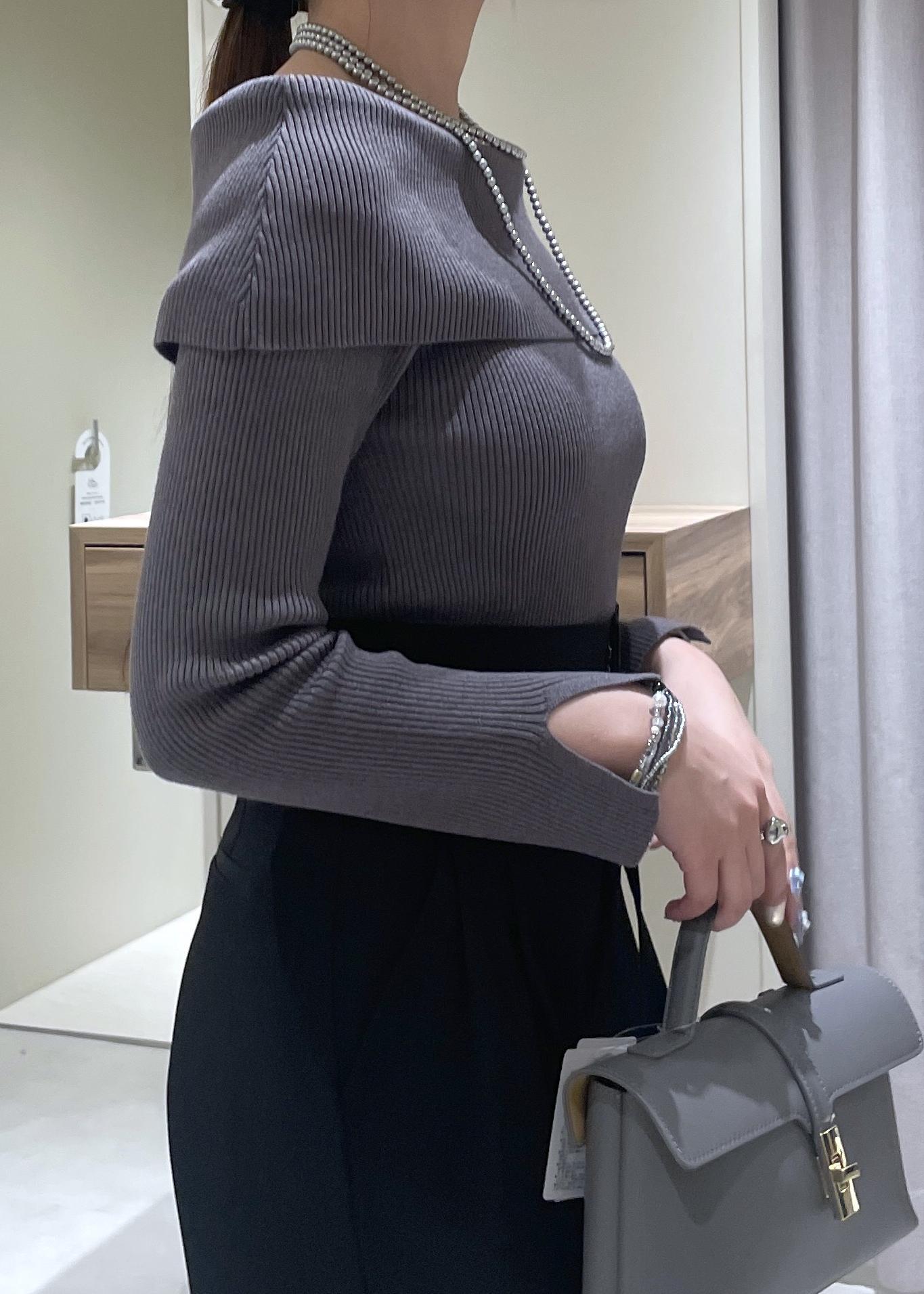 VISオフショルダーモチモチリブニットグレー / F¥5,489レビューモチモチな生地感が、着心地抜群なオフショルニットです。
