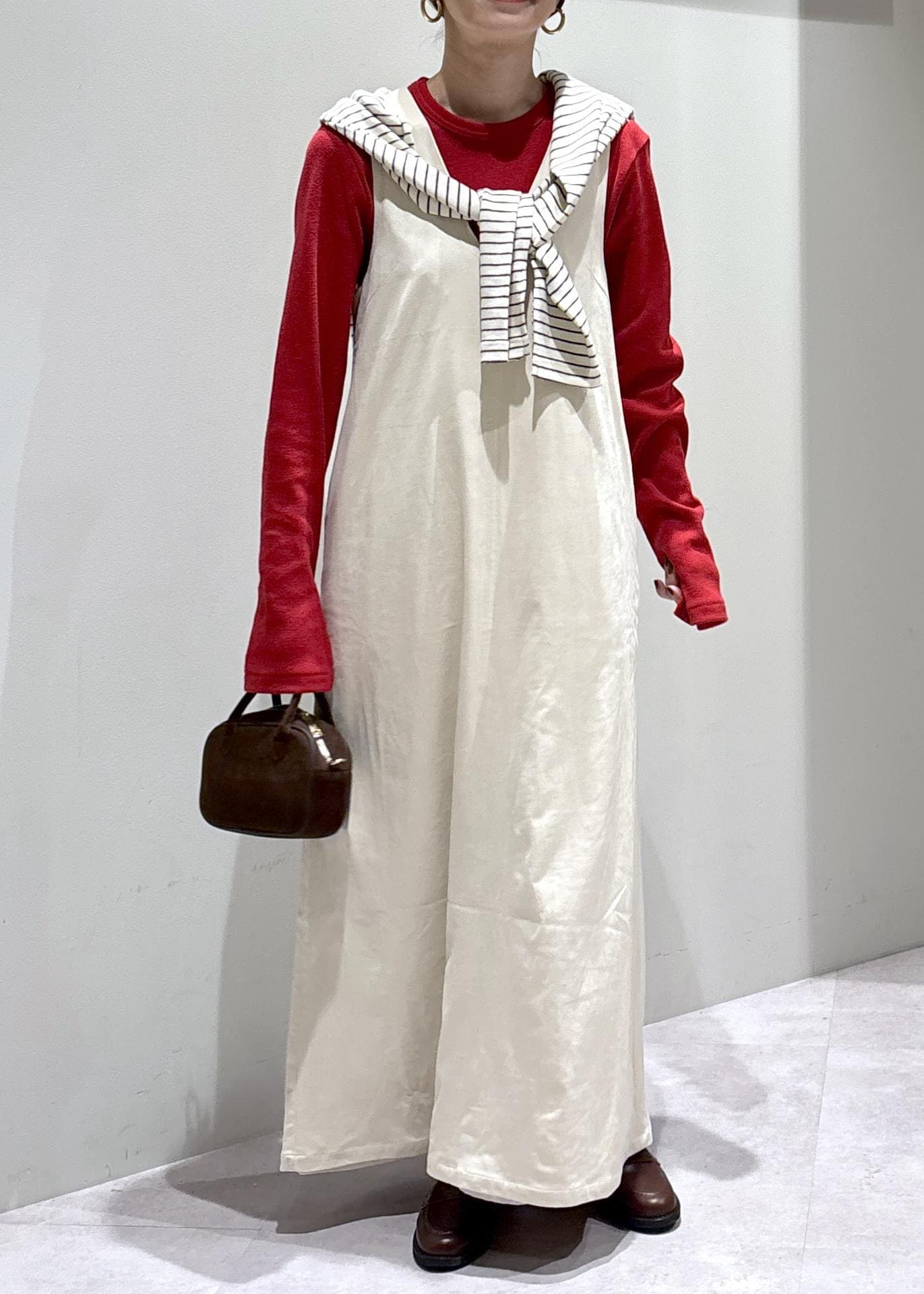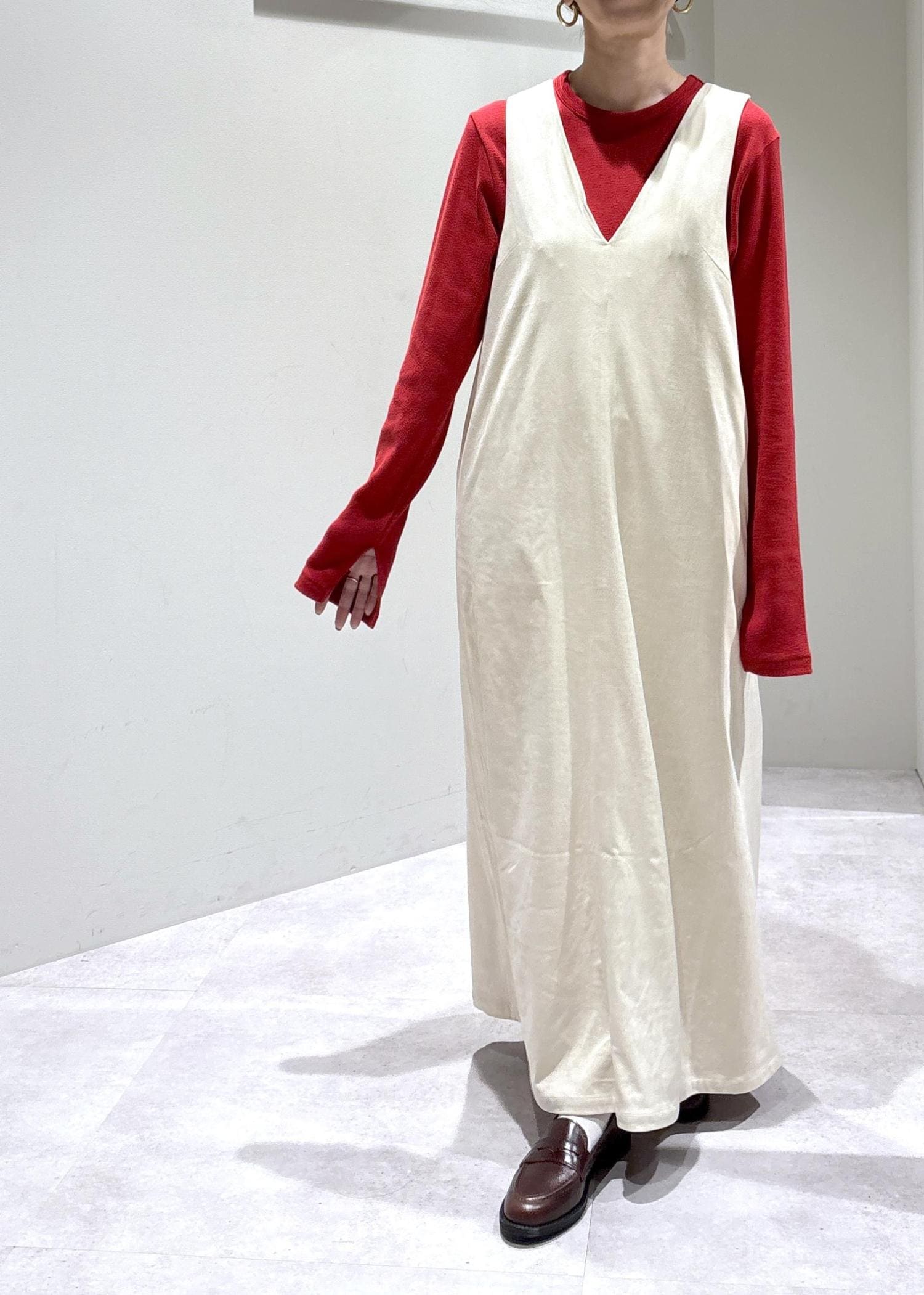 LE CERCLE par ropéフェイクスウェードライクジャンパースカートオフホワイト / F¥4,356レビュー自身の身長でも床を擦らない長さです。