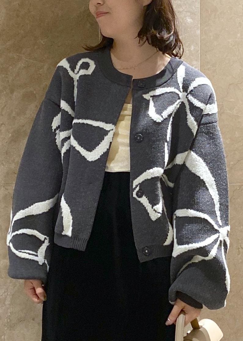 VISリボンモチーフジャガードカーディガン/イージーケアグレー / F¥6,919レビュー身長150cmでFサイズを着用し、腰にかかる丈感でした!