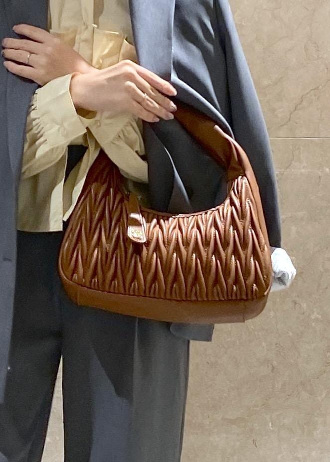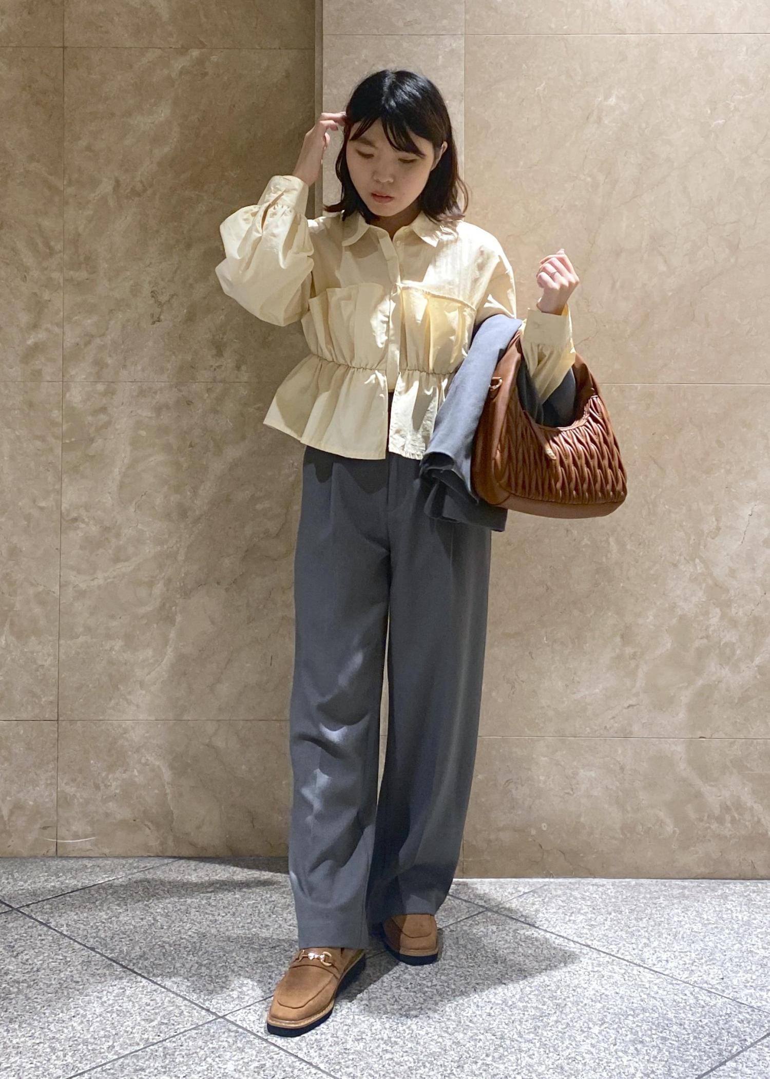 大きすぎず小さすぎずなので、スカートやパンツにも合わせられるので、オンオフで使い回しが出来るアイテムです◎