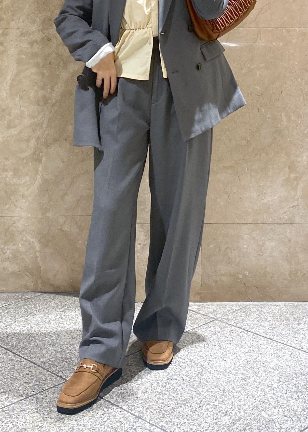 ウエストのサイドの所にボタンが付いており、サイズ調節ができるアイテムです!タックが入っており脚長効果抜群です◎ -