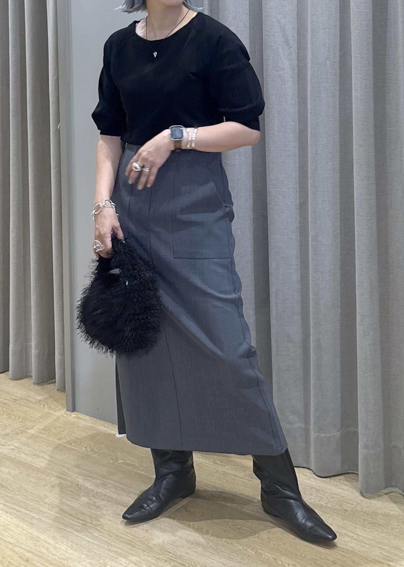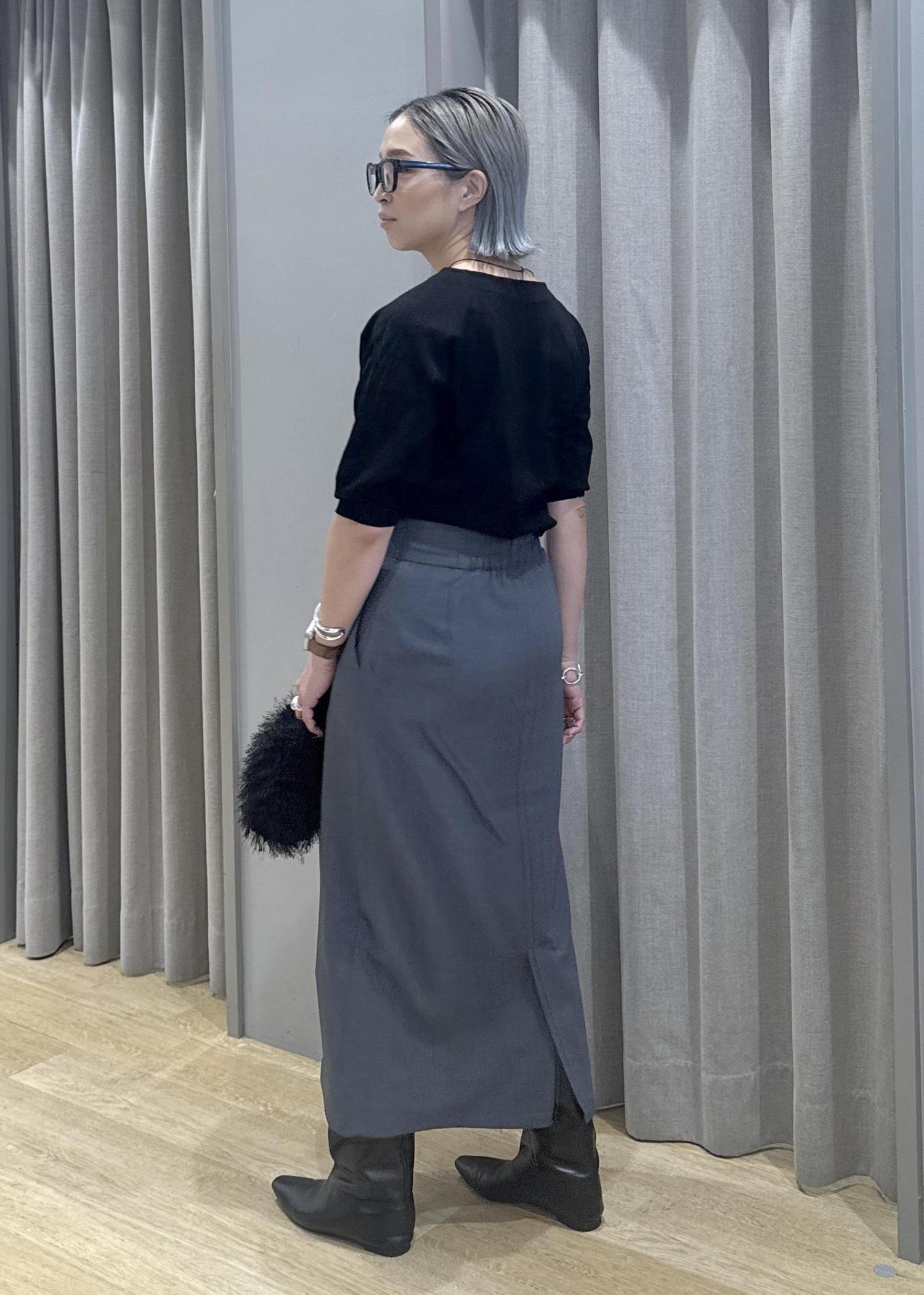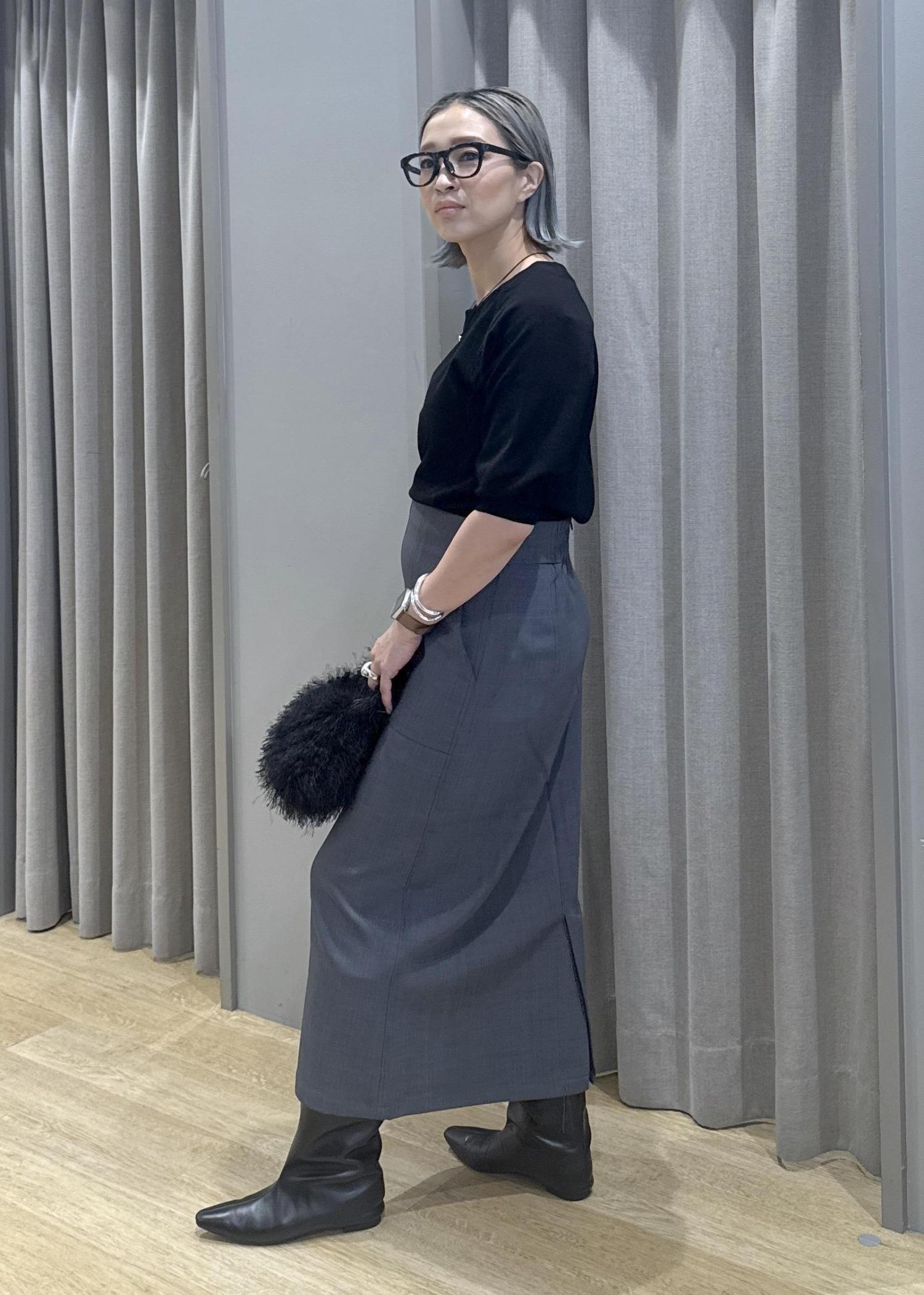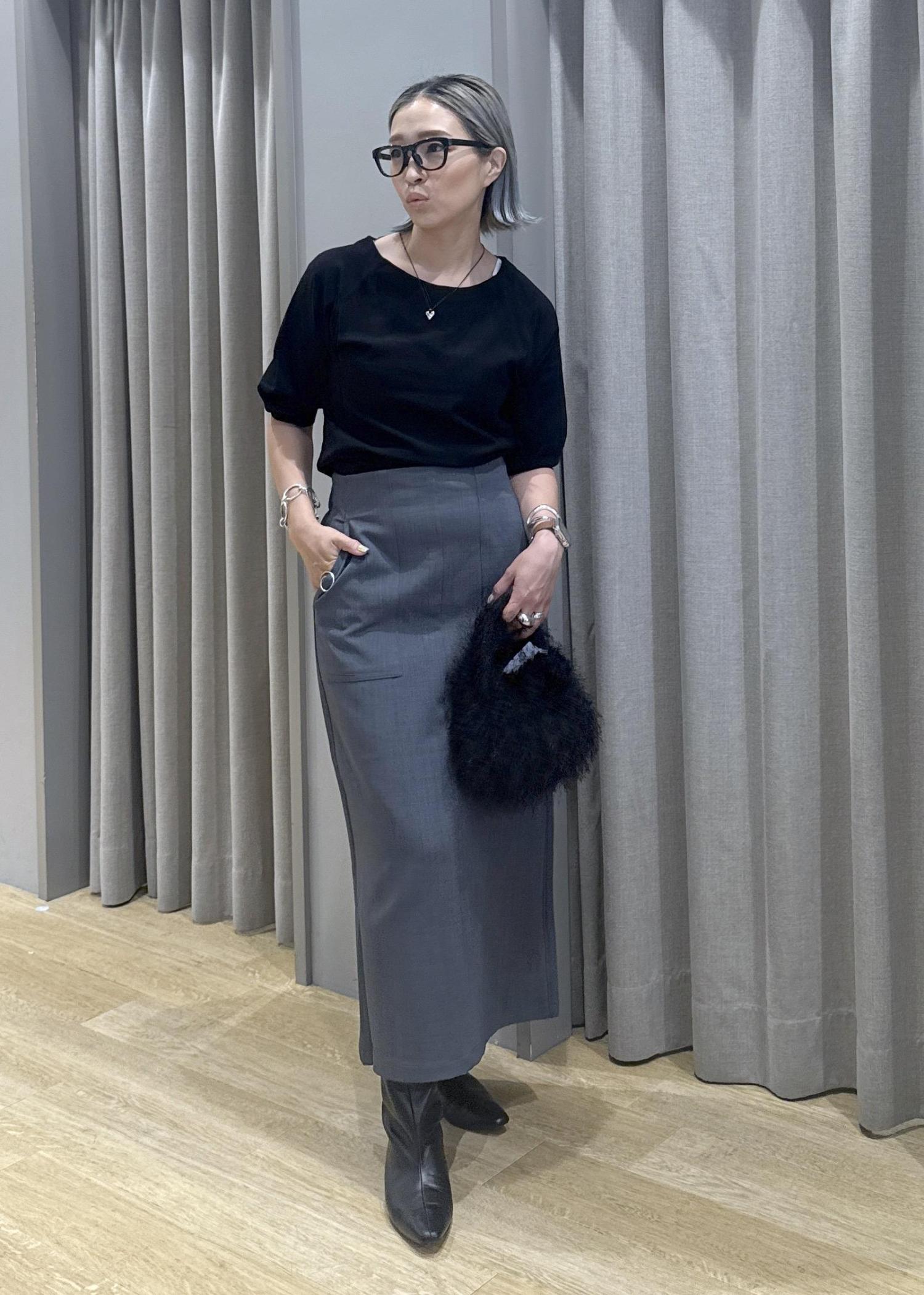 タイトスカートはヒップラインが出ないようにワンサイズ上げて履きました。