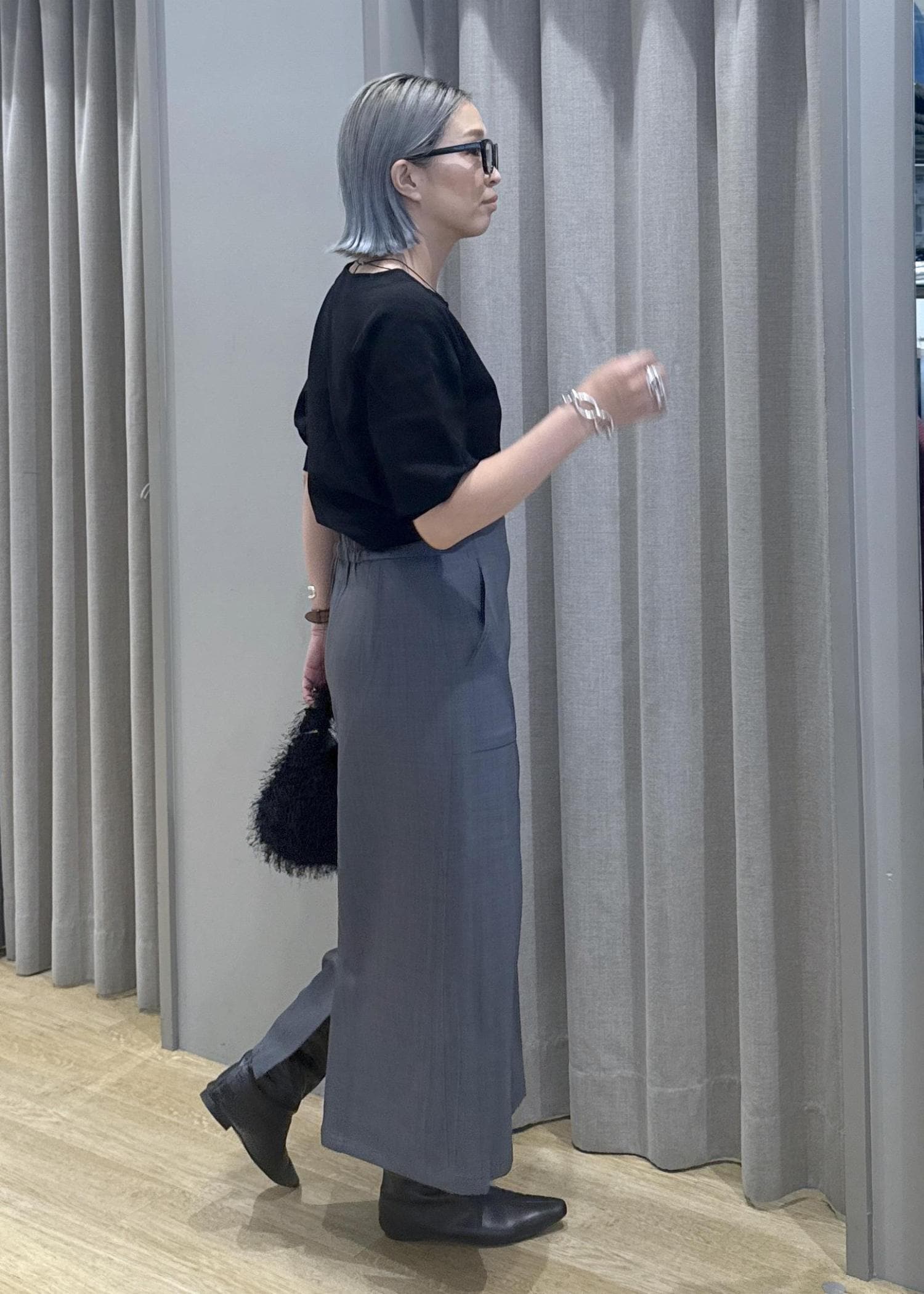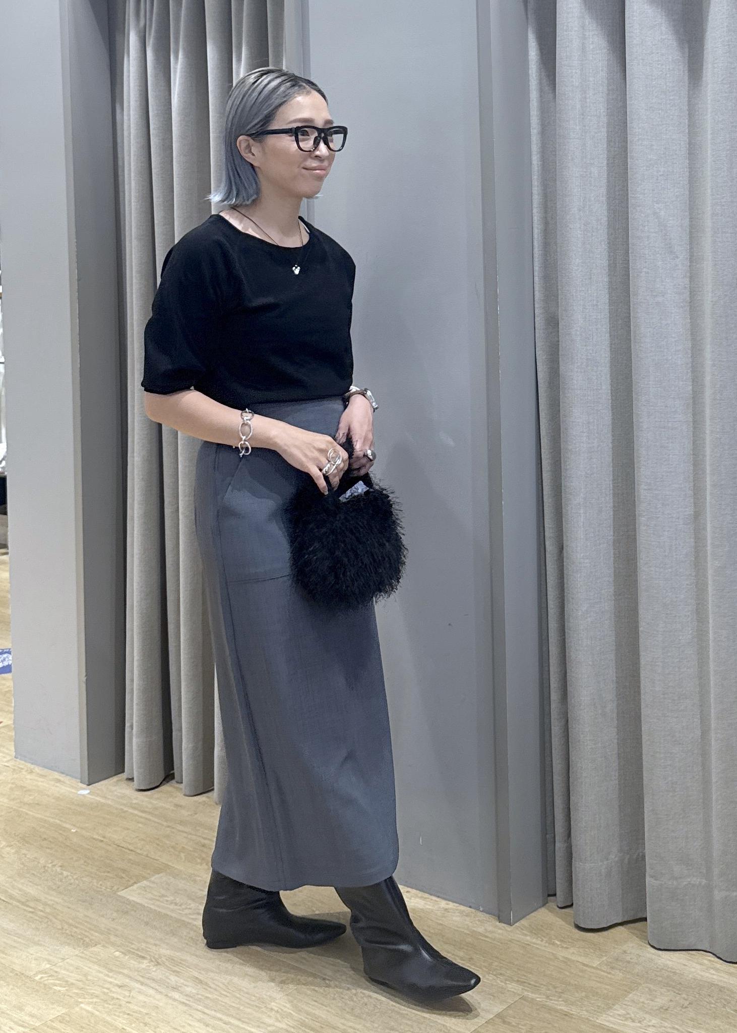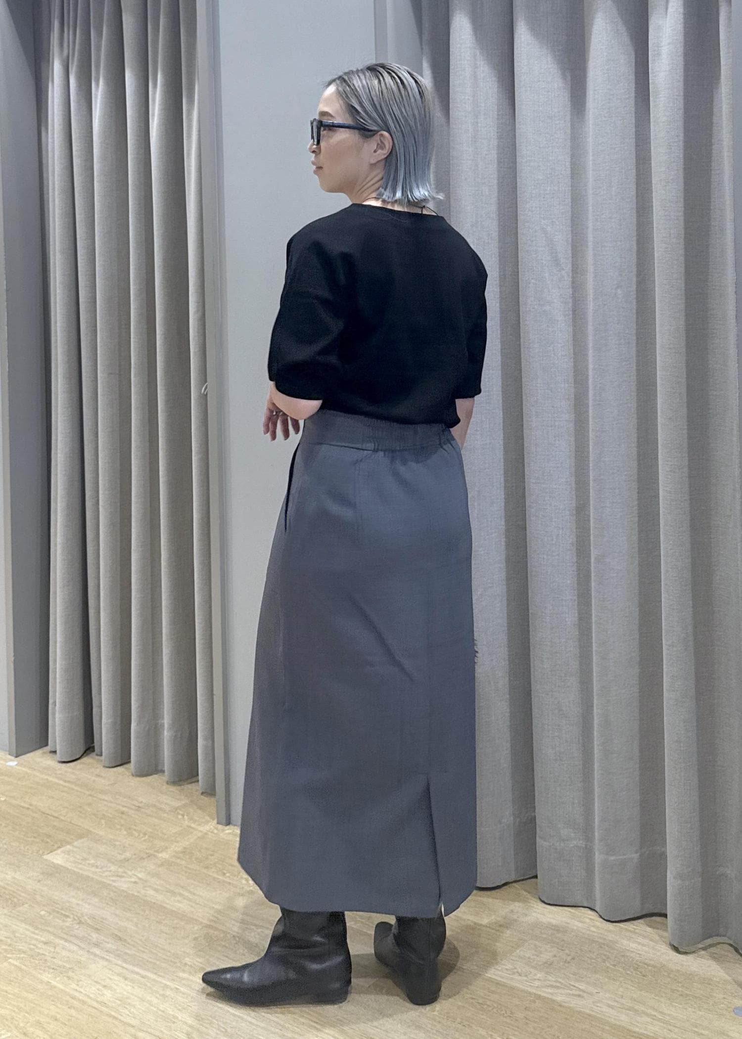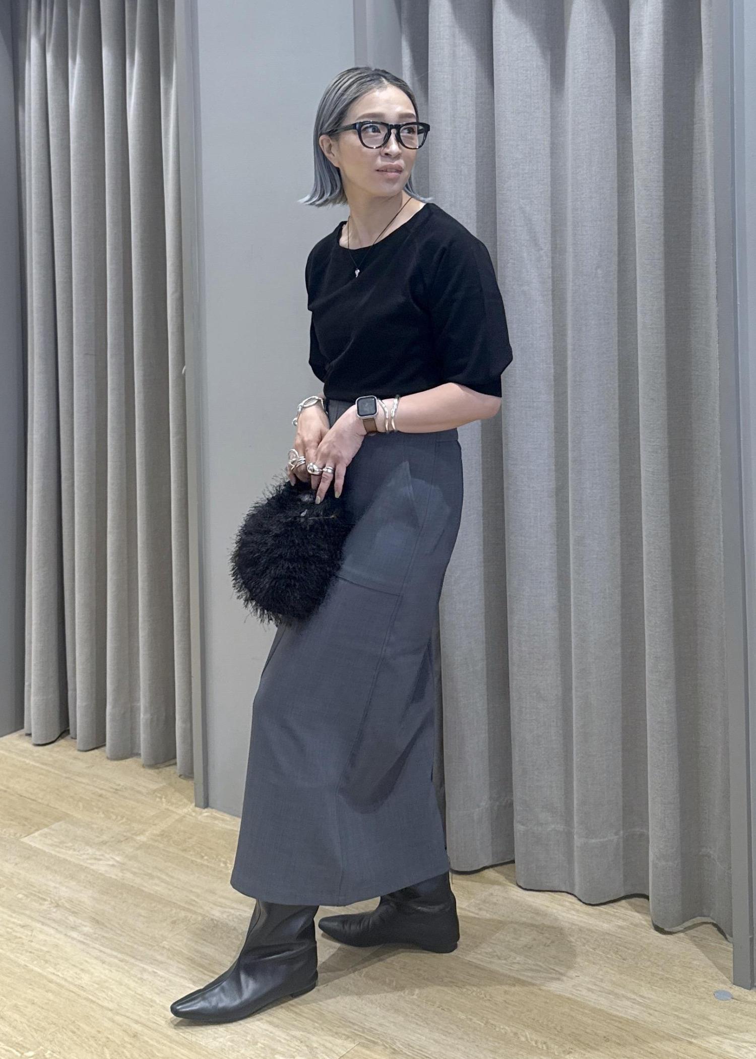 タイトスカートはヒップラインが出ないようにワンサイズ上げて履きました。