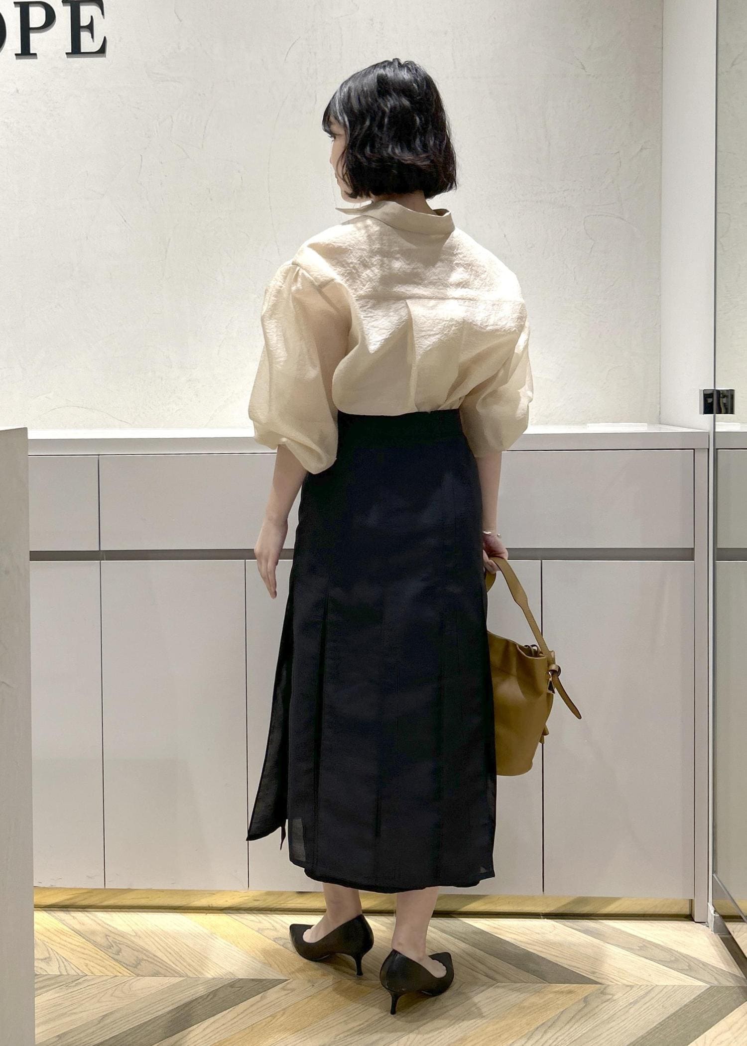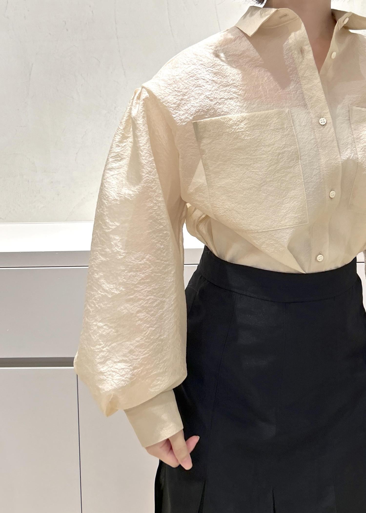 ROPÉ SELECT【一部店舗限定】【REALM(レルム)】SLEEVE VOLUME SHEER SHIRTS|シャツベージュ / 38¥31,900レビューハリがありボリュームが出る素材です。丈はヒップ隠れるくらいまでの長さがあります。ベージュはクリームのような薄い色味で、肌が明るく見えます。生地には凹凸感と光沢があり上品な雰囲気です。