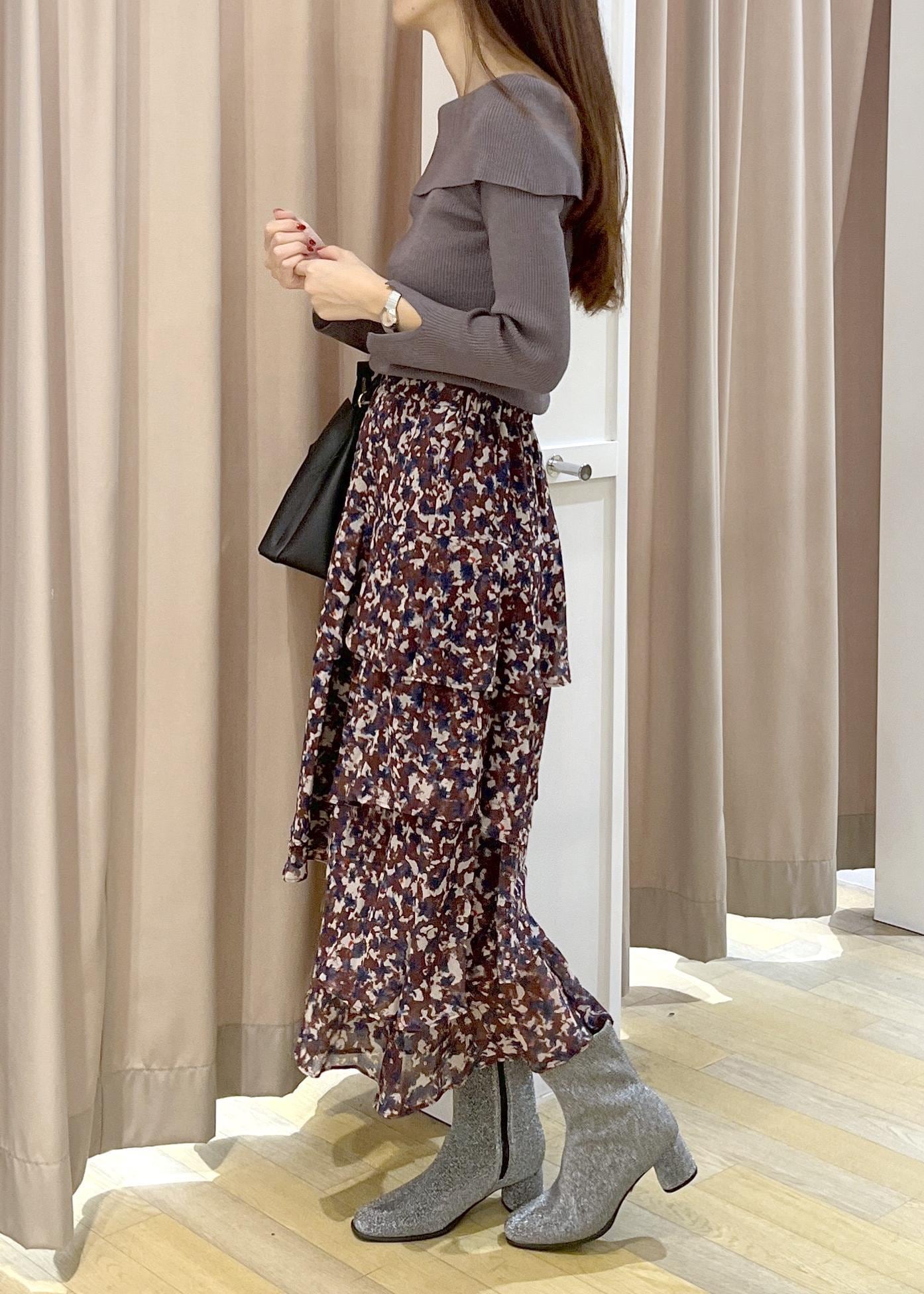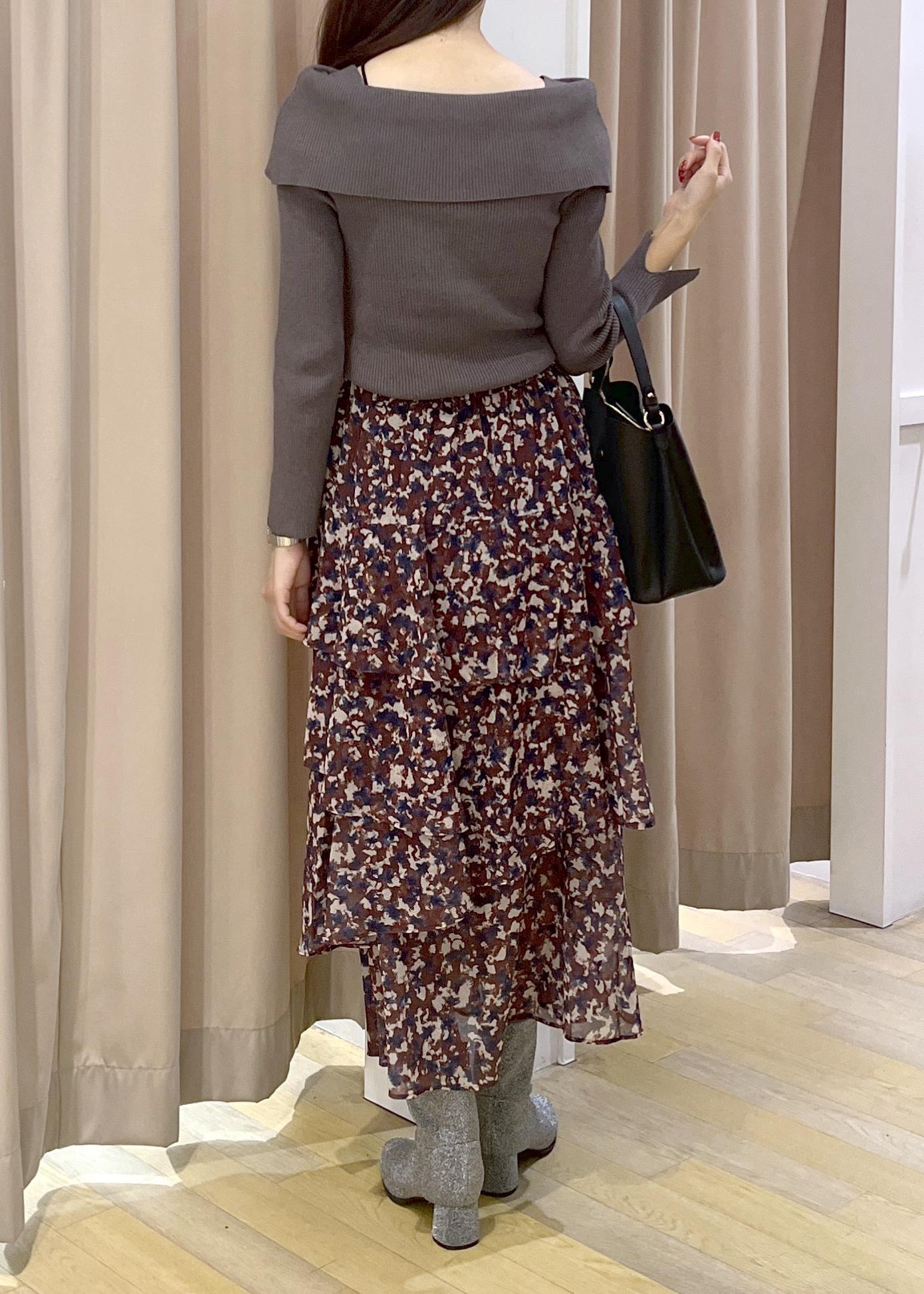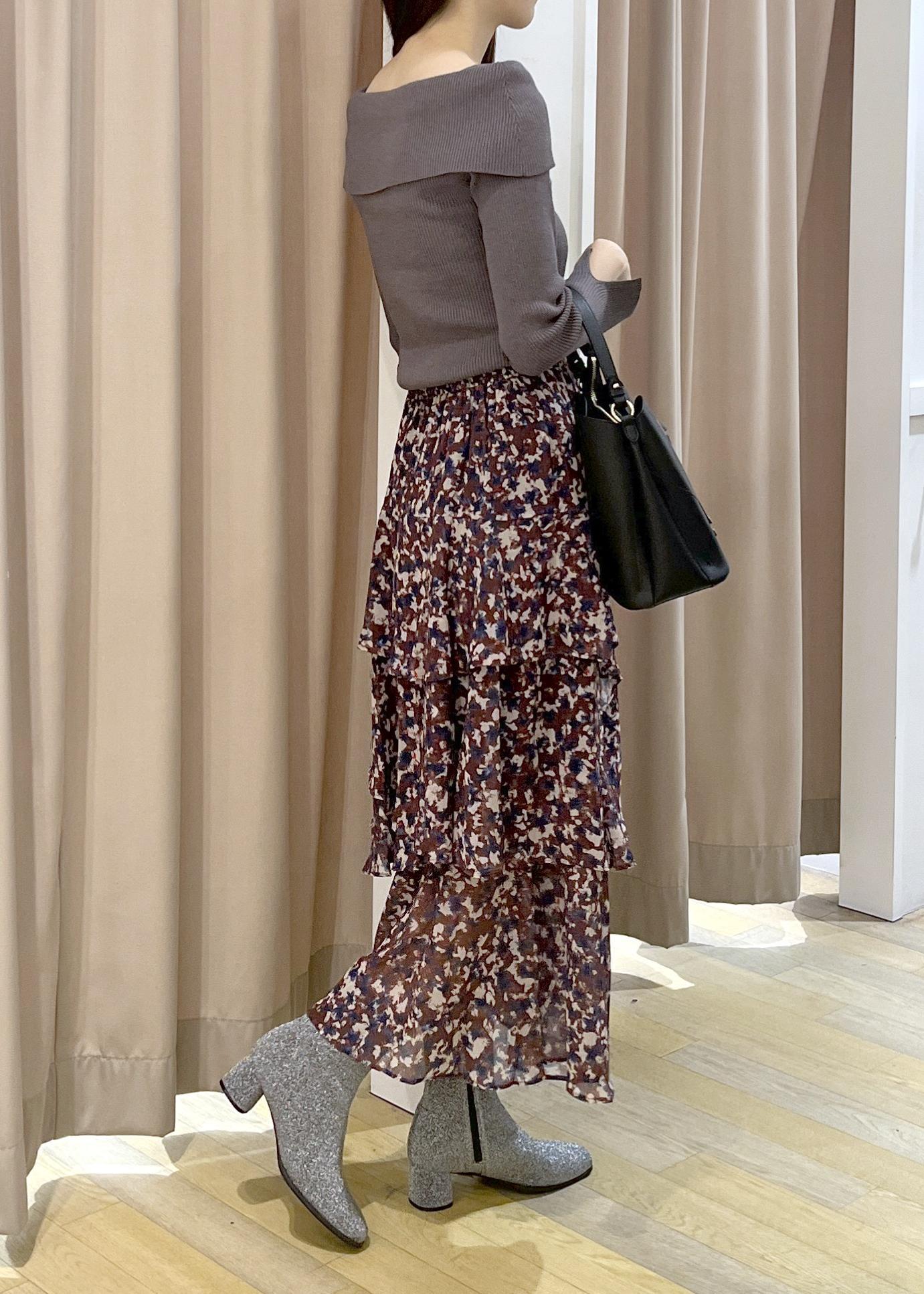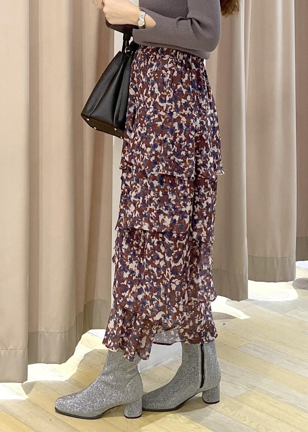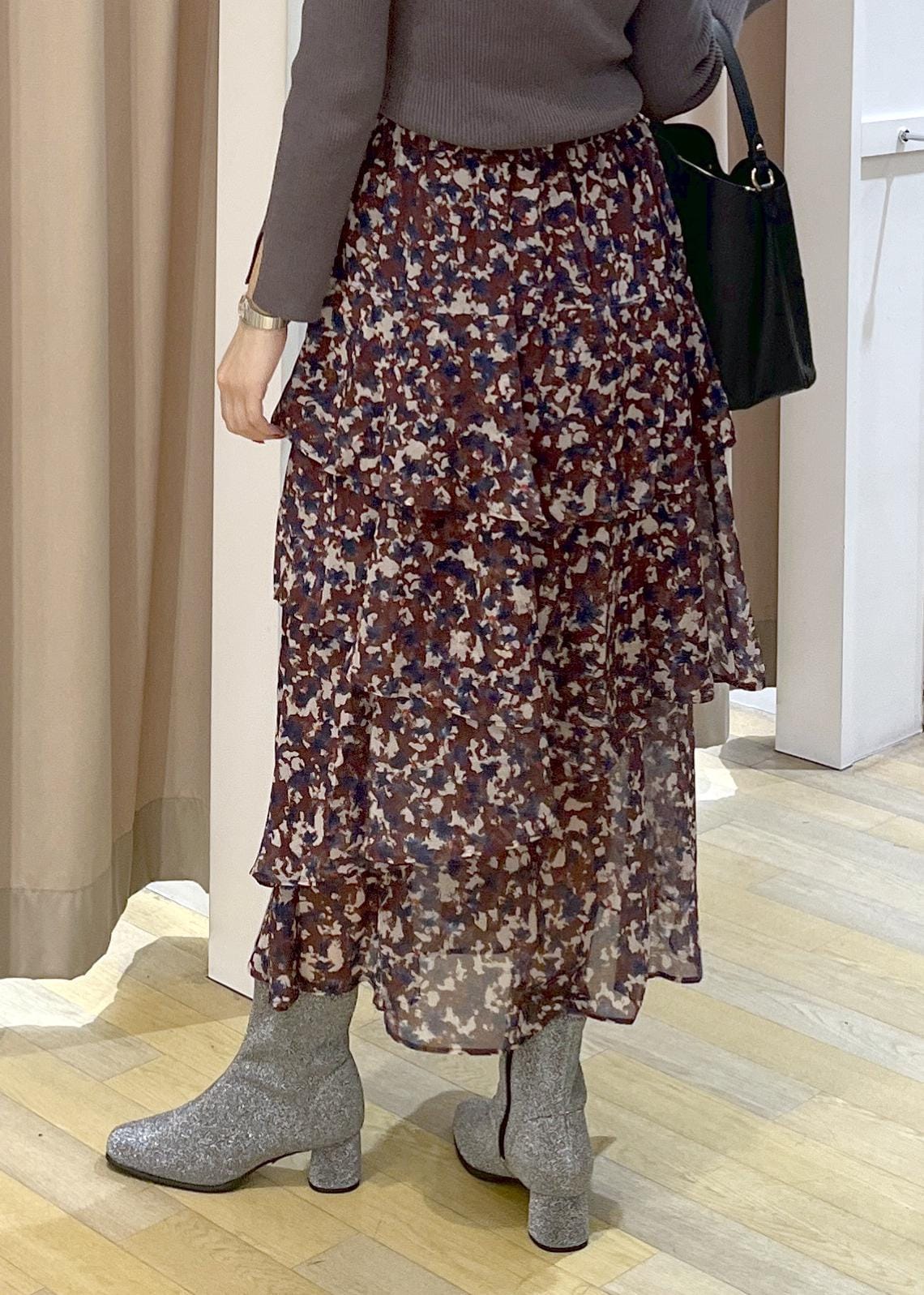 VIS花柄アソート楊柳ティアードスカートブラウン系 / F¥3,845レビュー4段階のランダムなティアードデザインがポイントです。存在感があるので、シンプルなトップスと合わせてもオシャレになります。