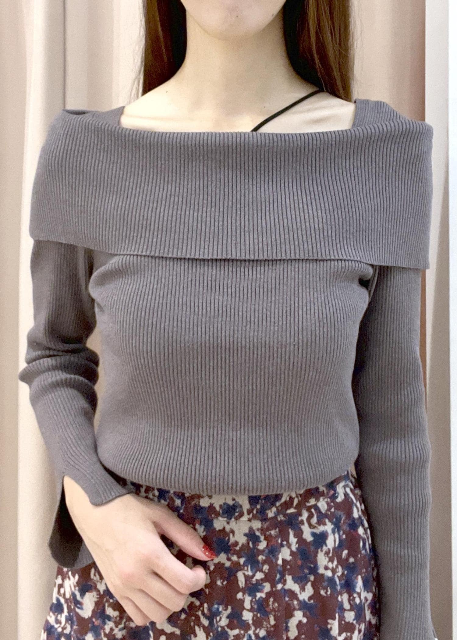 VISオフショルダーモチモチリブニット/好評につき再入荷グレー / F¥5,489レビューもちもちとした柔らかい肌触りです。