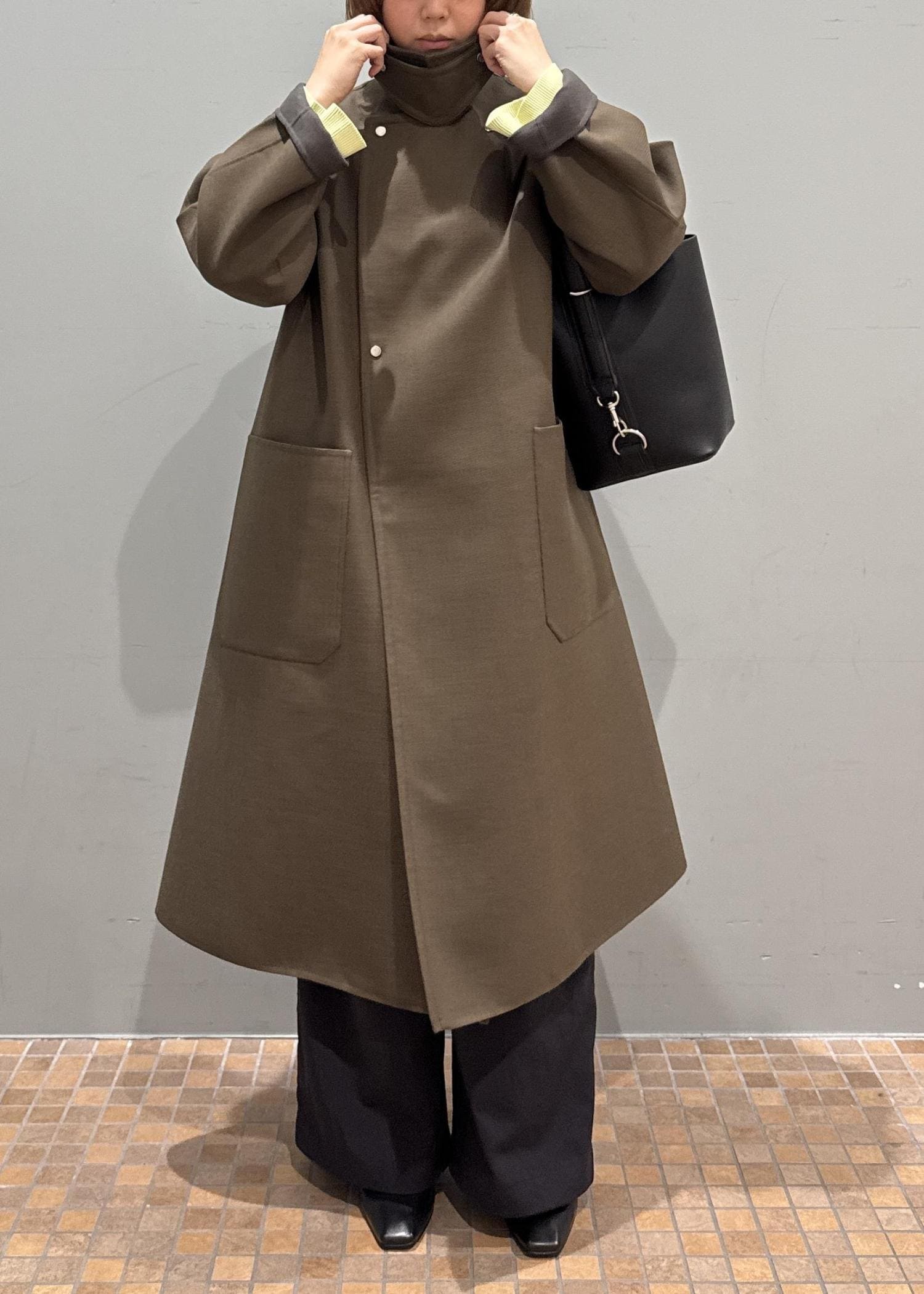 ADAM ET ROPÉ FEMMEソモウリバーロングコートカーキ系 / F¥88,000レビュー161㎝で裾がふくらはぎにかかるくらいの丈です。とにかく軽くてシルエットが綺麗です。薄手ですがウール100%で見た目以上にあたたかく、身幅もゆったりしているので中に着込めば真冬も使えます