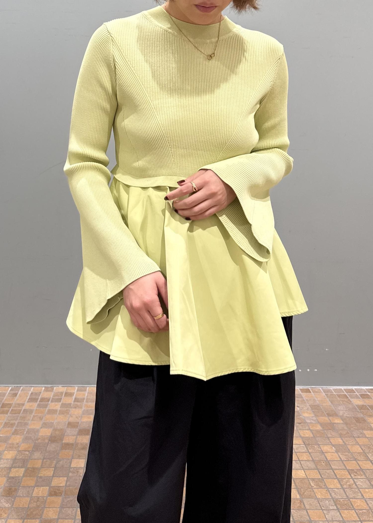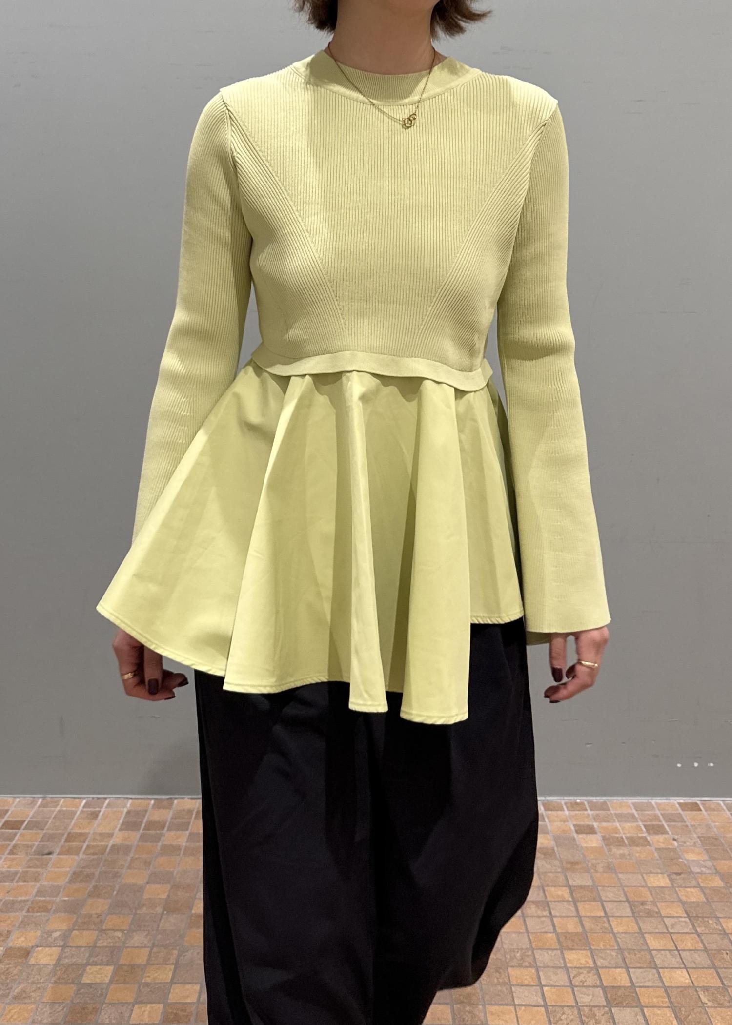 ADAM ET ROPÉ FEMME【サステナブル】・【定番人気】ペプラムコンビニットプルオーバーライトグリーン / F¥16,940レビューストレッチが効いているので着脱がスムーズ。二の腕や腰まわりをさりげなくカバーしながら、ほどよく身体にフィットしてくれるデザイントップスです。1枚でコーデが映える華やかさがあり、おうちで洗えるのでお手入れも簡単。