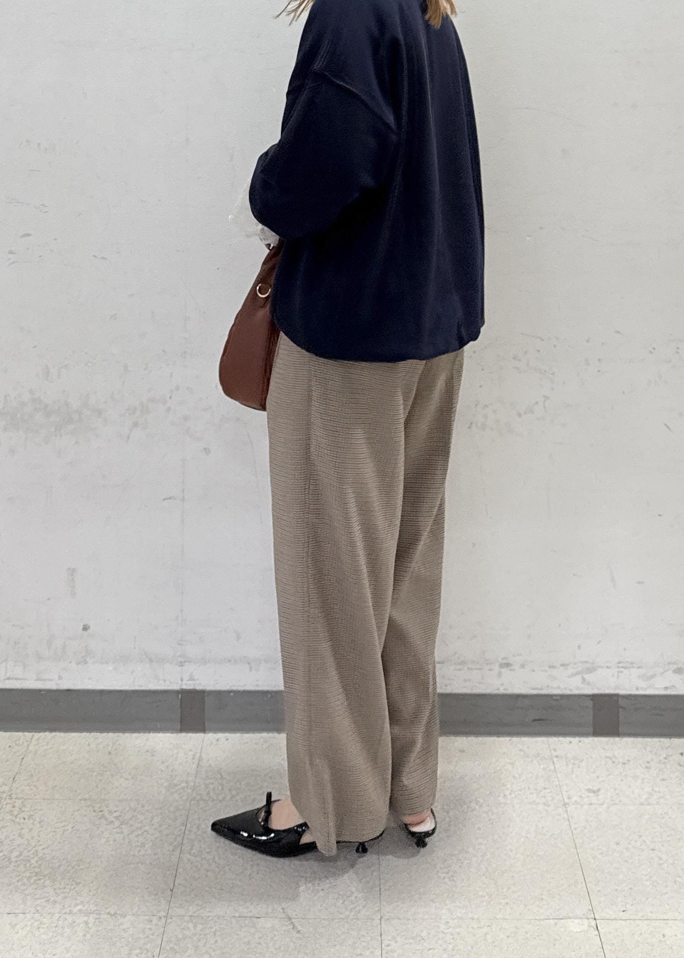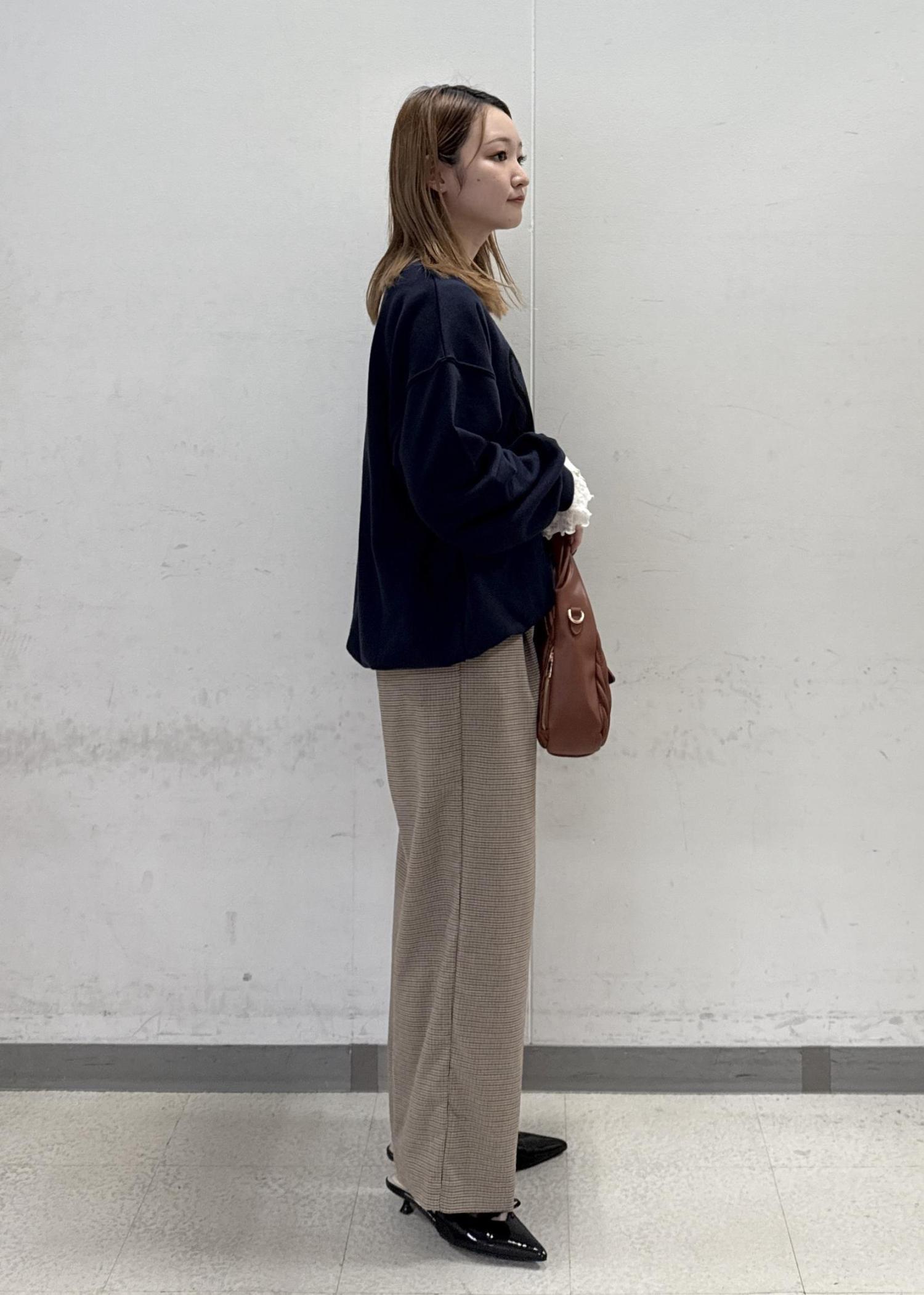 袖は長めのつくりで、身体のラインを拾わないデザインです。 -