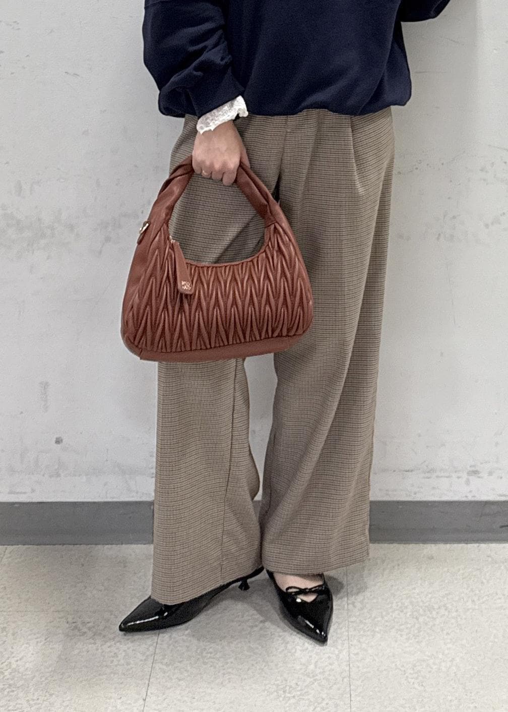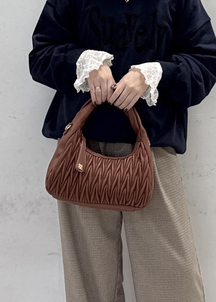 VIS【2WAY】ねじりハンドルキルティングバッグブラウン / F¥7,909レビュー側面サイドにポケットがついているので、出し入れが多い携帯などを入れられます!