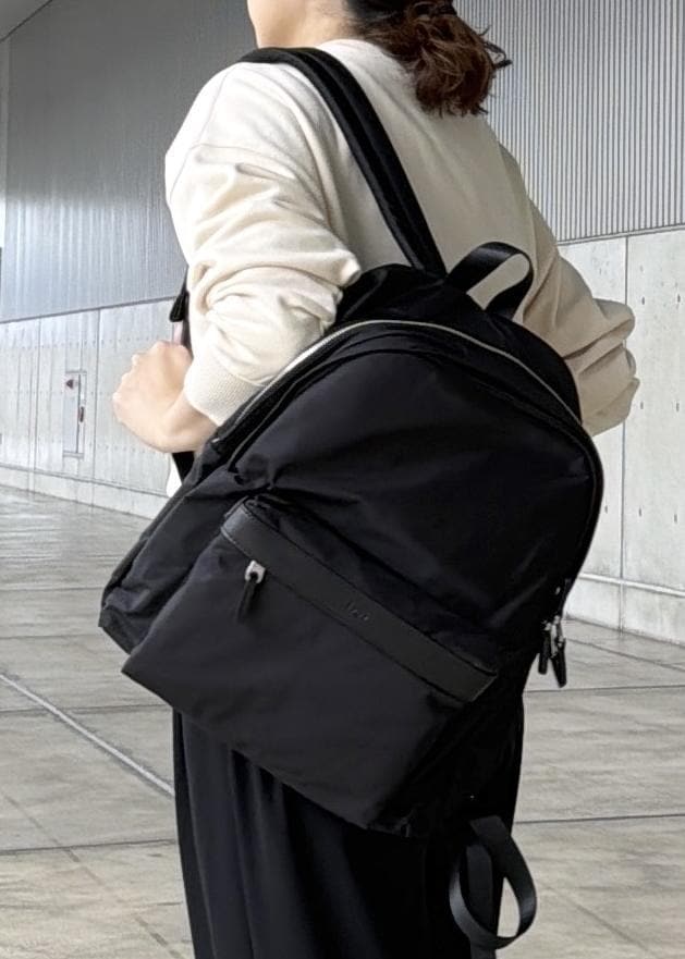 ROPÉ【E'POR】【A4/PC対応・撥水・軽量】Pac Sac(パックサック)ブラック / F¥24,200レビュー中にポケットがたくさん付いているので小分けに収納しやすいです。パソコンも収納可能。カジュアルなイメージのリュックですが少し光沢がありスーツでも合わせやすいきちんと感のあるリュックです。